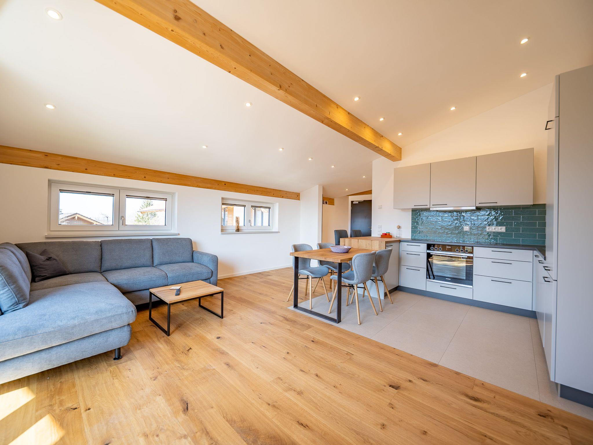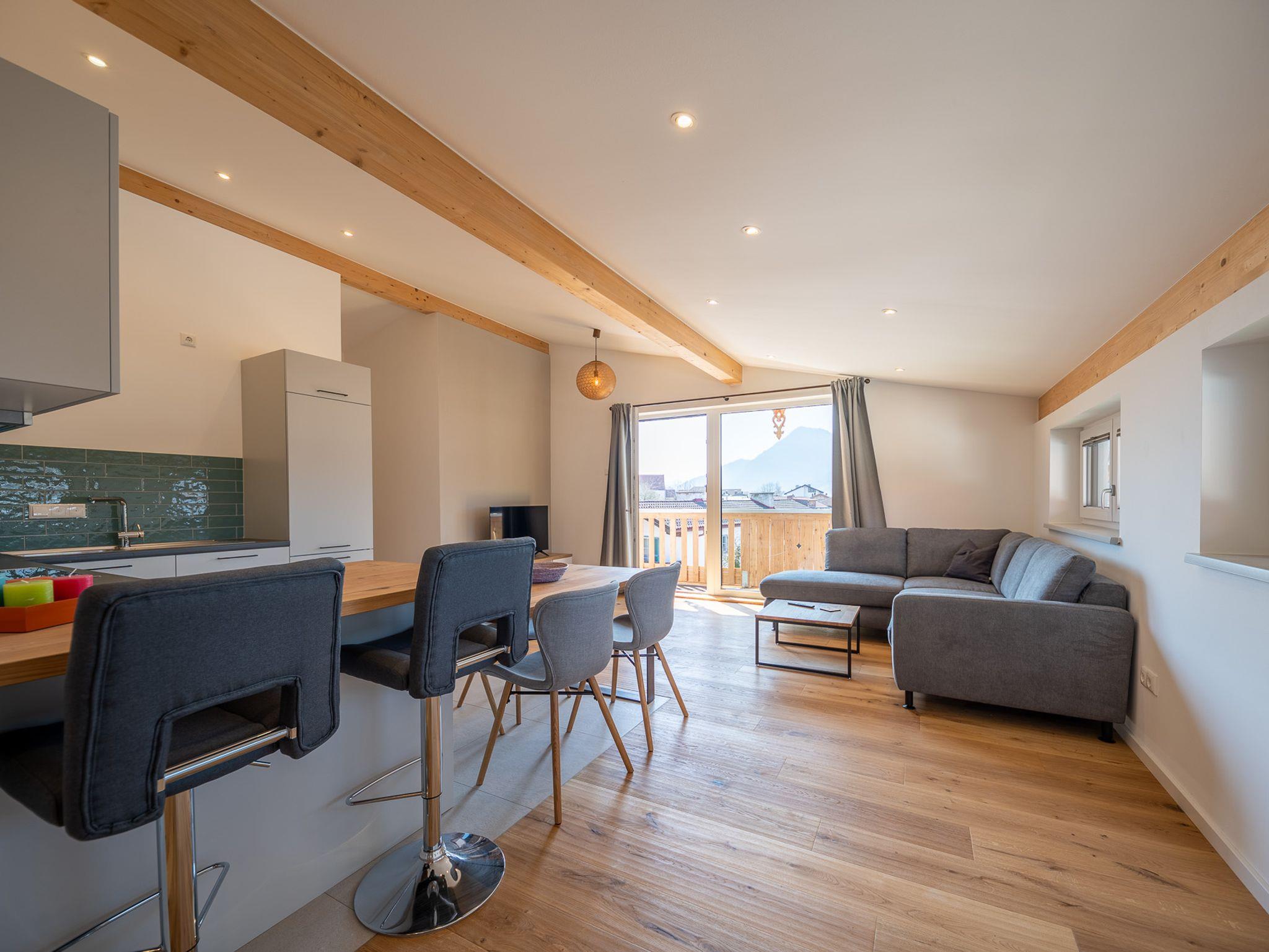 Fewo Wendelstein: 78 qm. Hier finden Sie Platz für bis zu 6 Personen (Kosten bei Belegung von 2 Personen: € 150,— pro Tag, jede weitere Person bis 16 Jahren: € 10,—, ab 16 Jahren € 20,—). Die Endreinigung ist im Preis inbegriffen. Mindestaufenthalt beträgt 5 Nächte. Kürzere Buchungen nach persönlicher Anfrage. Für Kurzaufenthalte von weniger als 3 Nächten wird ein einmaliger Zuschlag von € 50,— berechnet.- W-Lan (100 Mbit/s)- Fernseher (Flat-TV mit Internetzugang)- Panoramabalkon mit Blick auf Wendelstein- Schreinerküche- Zirbenbetten- Kaffeemaschine- Wasserkocher- Teekanne- Toaster- Geschirrspüler- Schlafcouch ausziehbar und somit Schlafmöglichkeit bis zu 6 Personen- Homeofficemöglichkeit mit separatem Schreibtisch ebenfalls mit Blick auf Wendelstein- zweites Schlafzimmer- barrierefrei- AufzugBesonders hervorzuheben: Im Haus befindet sich ein/e Cafe/Bäckerei, mit einer kleinen Terrasse, die man bequem über den Fahrstuhl erreicht um zu Frühstücken oder fürs Frühstück einzukaufen.