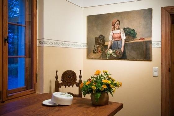 Diese 66 qm große Wohnung wurde zum Film „Ein russischer Sommer" fertig gestellt und der kanadische Hauptdarsteller Christoffer Plummer wohnte hier. Sie verfügt über ein Schlafzimmer mit original freigelegter Wandmalerei, einem Gäste WC, einer Landhausküche und einem Wohnzimmer mit zwei gemütlichen Sofas und einem Sekretär. Im Schlafzimmer steht ein Doppelbett (1,6mx2,0m). Darüber hinaus steht im Bad ein eigener Whirlpool.