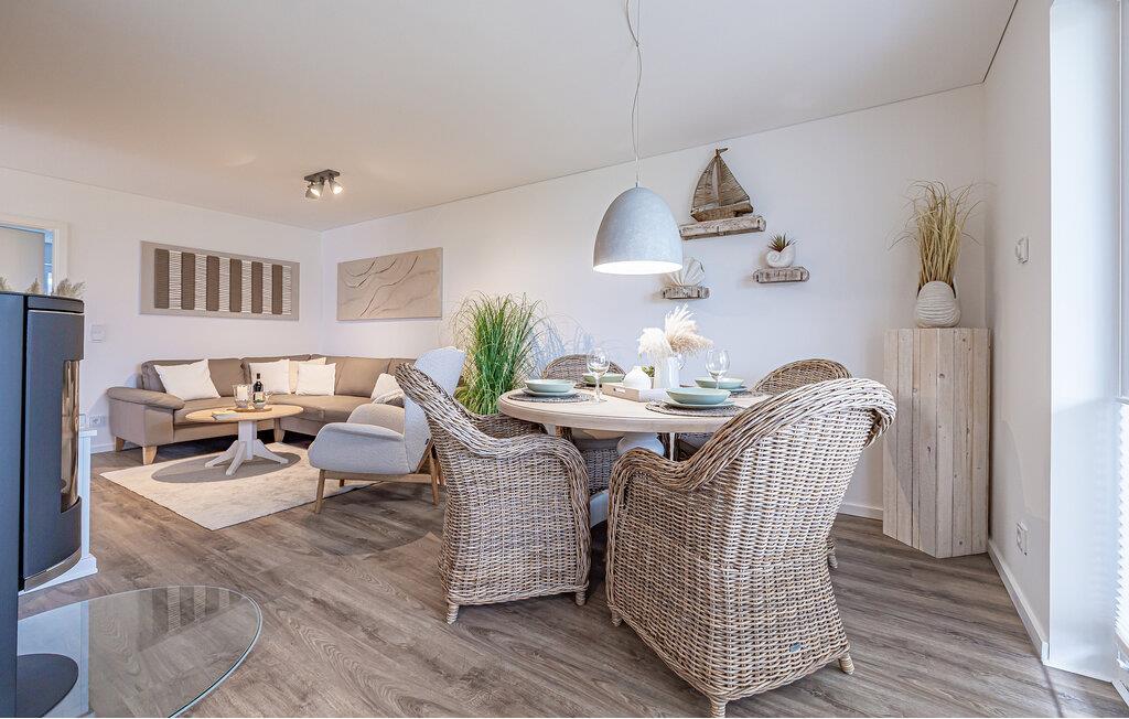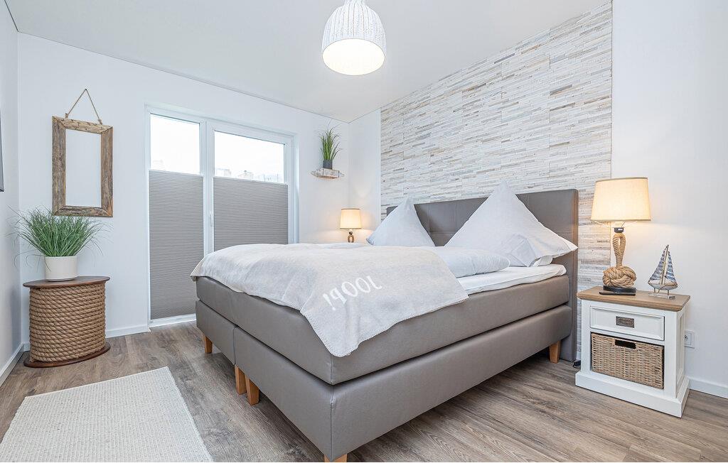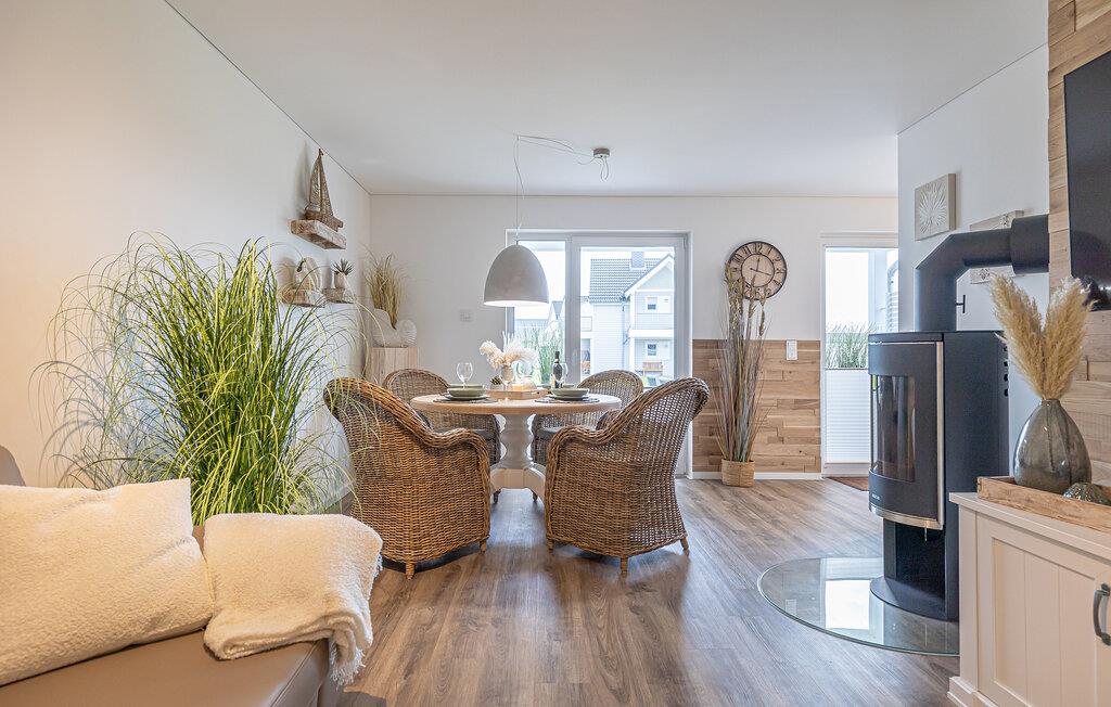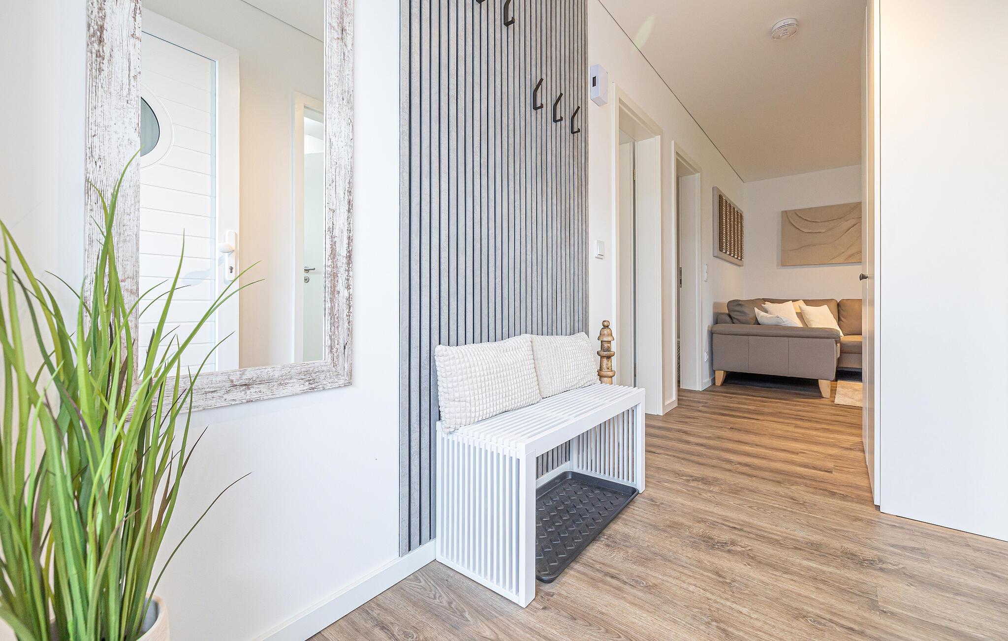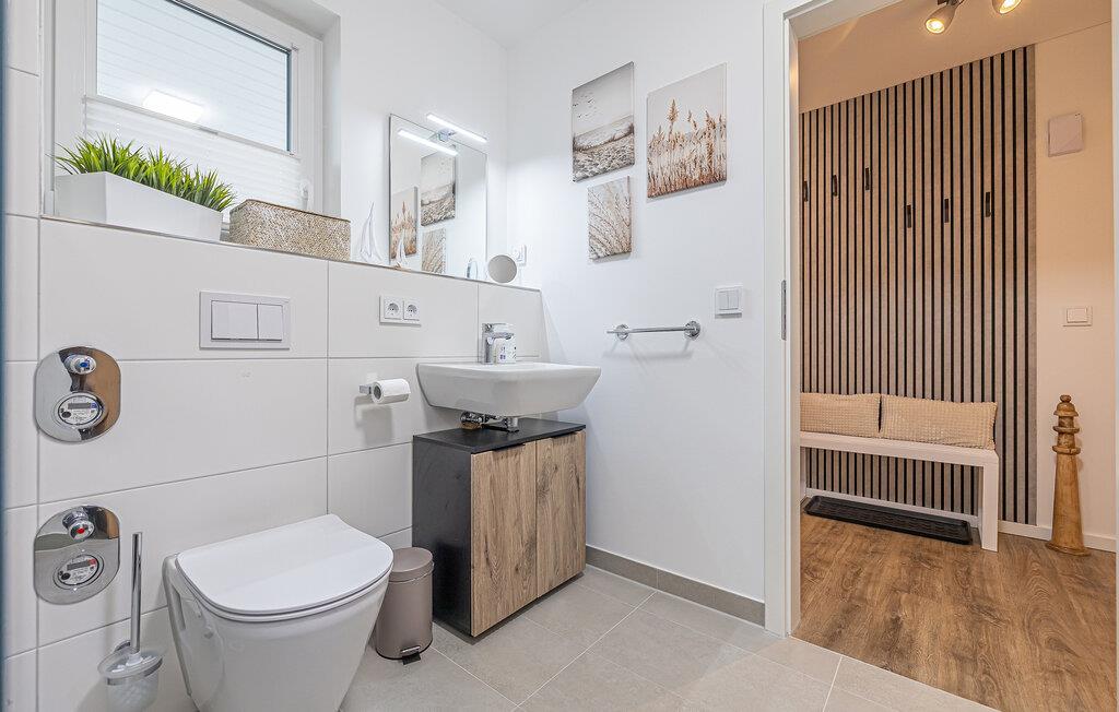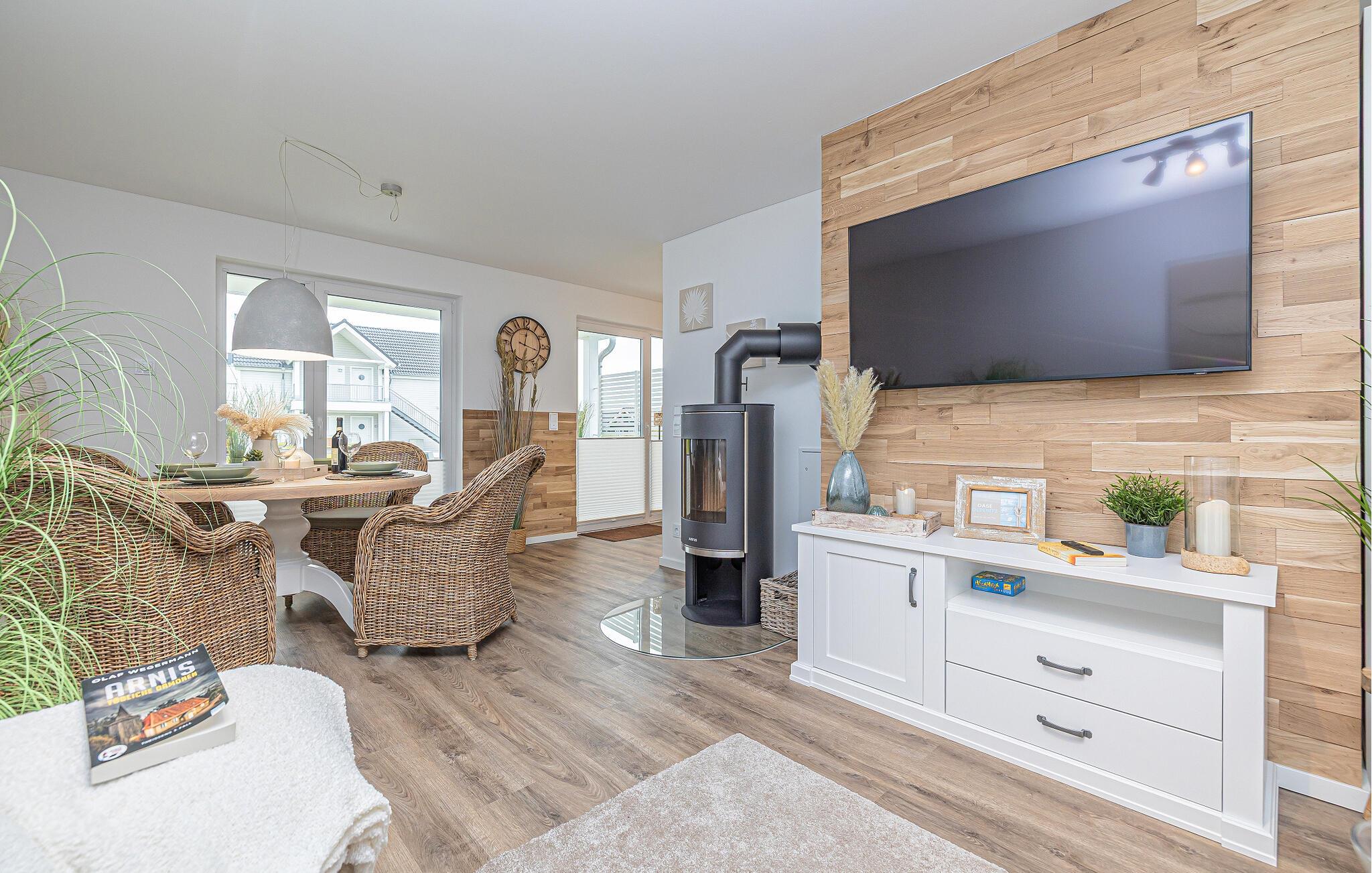 Fordyb jer i Olpenitz-oasen, hvor Østersøluften og lyden af bølgerne bliver jeres daglige følgesvend. Denne magiske ferielejlighed ligger i gåafstand fra den indbydende Weidefelder-strand og den livlige havnepromenade. Et sted, hvor skønheden i Schlei-regionen kan mærkes i enhver brise. Gå ind i denne ferielejlighed i stueetagen via en overdækket terrasse. Gangen åbner ud i en rummelig, åben stue/alrum, som indbyder til at blive hængende med en behagelig opholdsstue, et smart-tv og en knitrende pejs. Her skabes minder om ubekymrede familieaftener ved det store spisebord, som også inviterer til spil sammen med de spil, der findes. Det åbne køkken, udstyret med elegance og funktionalitet, støtter jer i kulinariske opdagelser. Fra køkkenet og spisepladsen fører stien til den overdækkede hovedterrasse, hvor et terrassebord og en grill inviterer til fælles måltider i havluften. Omgivet af en græsplæne mellem husene, bliver dette sted et legeparadis for børn. Drømme om højeste niveau venter på jer i de to hyggelige soveværelser. Dobbeltsengen i det ene værelse og de to enkeltsenge i det andet lover en afslappende søvn. Smart-tv'er i begge værelser giver individuel underholdning. Wellness-badet tager jer med ind i en verden af afslapning. Den infrarøde sauna (varmekabinen) og bruseren på gulvniveau forkæler jeres krop og sjæl i en oase af afslapning. Olpenitz-oasen er ikke kun et sted for fred, men også et lykkeligt familieliv, da hunde og børn er meget velkomne her. jeres bil finder sin plads lige foran døren, og der er et separat skur til cykler. Det betyder, at der er alle muligheder for at udforske området og opleve skønheden i Schlei-regionen på to hjul. Hele lejligheden er udstyret med gulvvarme og myggenet. Vores favoritsted Den infrarøde sauna efter en begivenhedsrig dag med ferie. Bemærk: Sommerhuset er stadig ved at blive færdiggjort. Billeder af huset, indretning og indretning blev visualiseret med venlig støtte fra Helma Ferienimmobilien. Feriehuset adskiller sig i indretningsstil.Bemærk venligst: OstseeResort Olpenitz er meget populært, og der bygges fortsat i parken. Ikke desto mindre kan I se frem til en 5-stjernet standard og et førsteklasses ophold. Byggeaktiviteterne kommer ikke til at forstyrre jer på ferien, og derfor gives der ikke yderligere afslag i prisen.