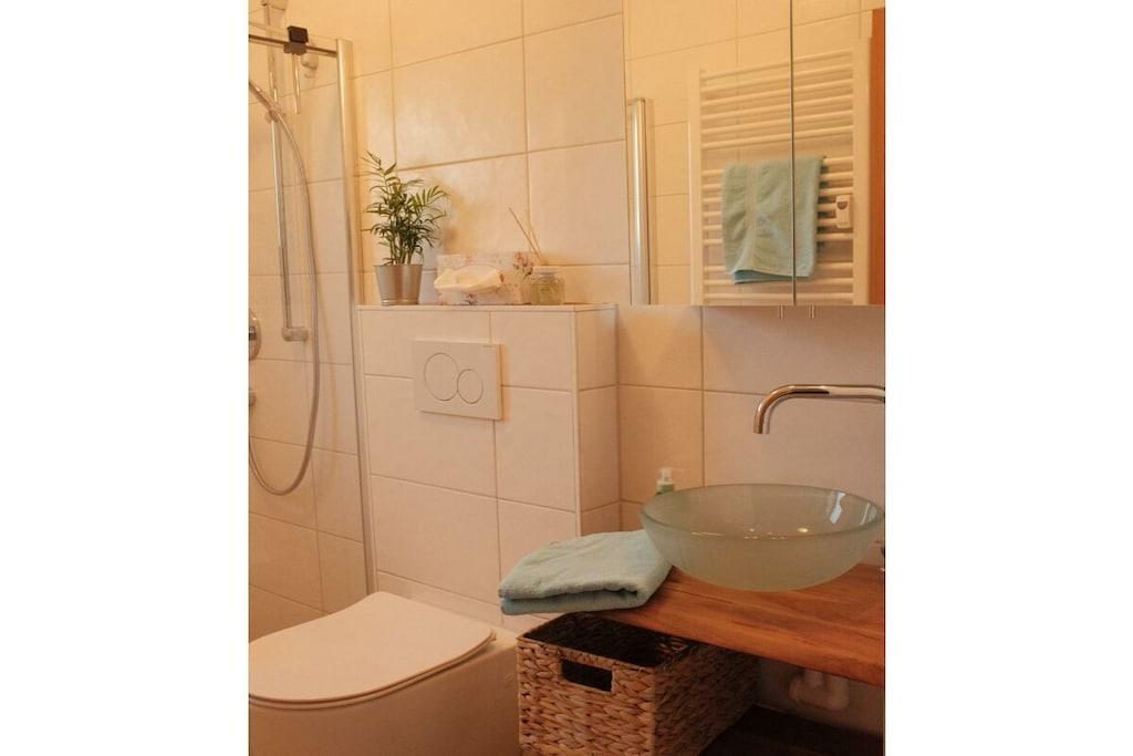 Fuldt møbleret 2-værelses lejlighed med fantastisk udsigt over bjergene, stor vestvendt terrasse, parkeringskælder, stue/spisestue med direkte adgang til terrassen, åbent køkken med bar – alt stilfuldt og nymøbleret, stor sovesofa (220 x 200 cm) i stuen, fuldt udstyret køkken med opvaskemaskine, ovn og køleskab med fryser, komplet med krydderier, olie, balsamicoeddike osv., soveværelse med dobbeltseng og skydedørsgarderobe. 550 m til Oberammergau centrum, vaskemaskine og tørretumbler til rådighed.