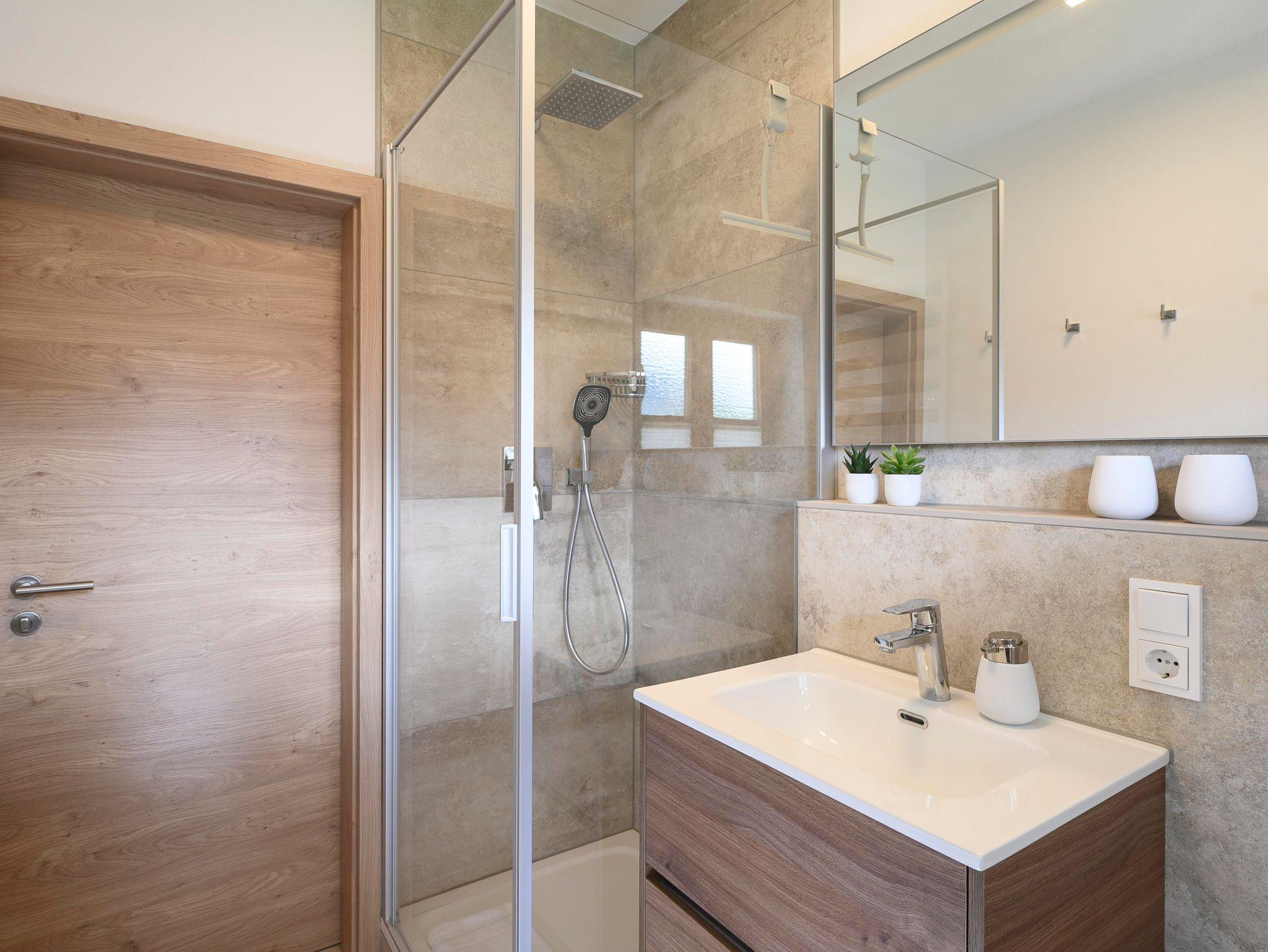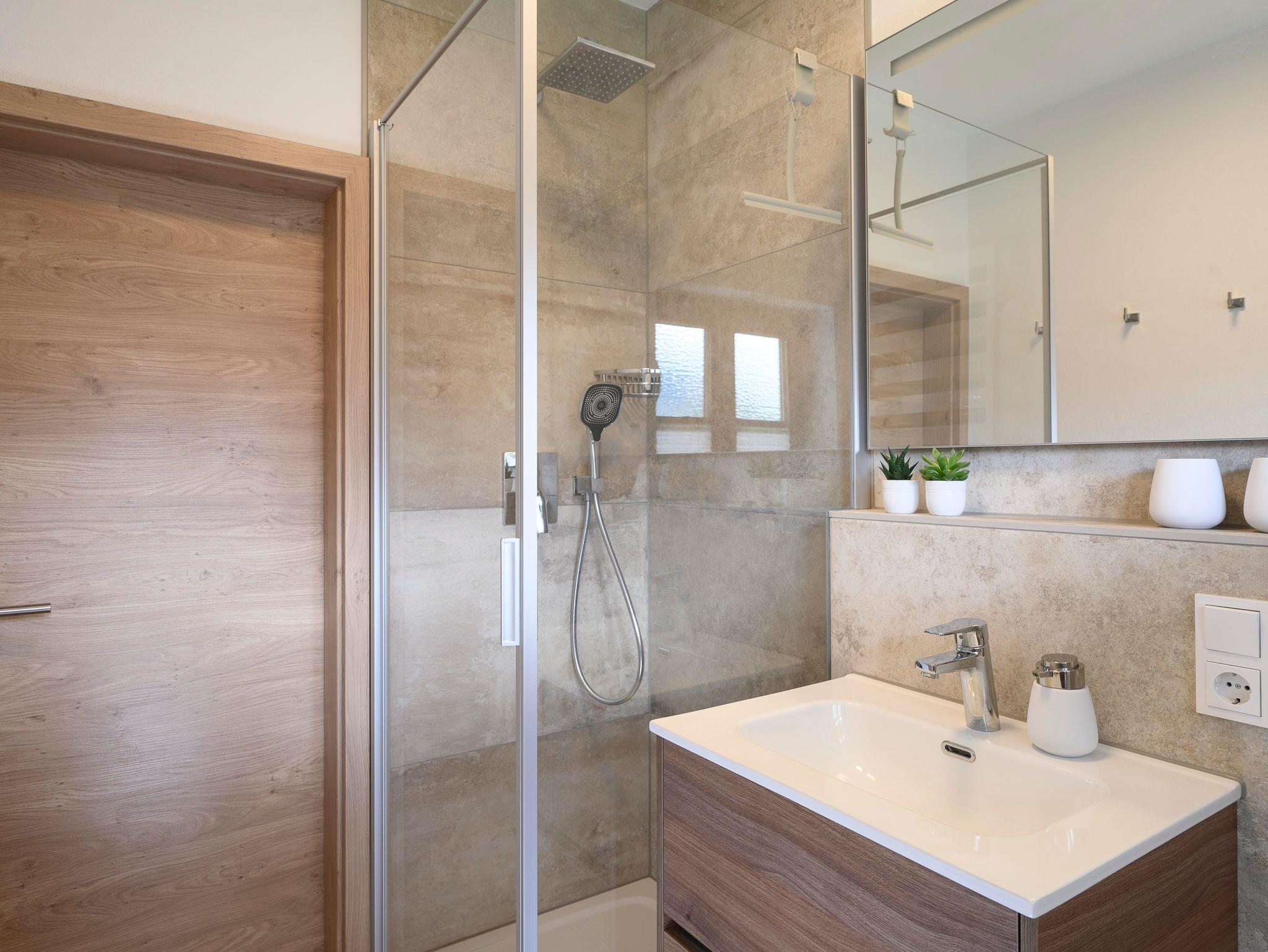 Die moderne Küche ist mit allen nötigen und qualitativ hochwertigen Küchenutensilien und technischen Geräten wie z.B. Spülmaschine, Ofen, Mikrowelle, Filterkaffee- und Nespressomaschine ausgestattet. Im stilvollen Badezimmer können Sie den Tag mit einer erfrischenden Regendusche beginnen.