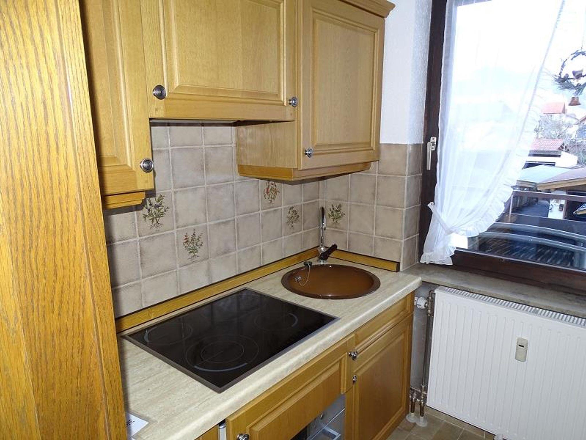 Apartment im 1. OG im Zentrum Oberammergaus. Wohnbereich mit der Möglichkeit der Nutzung einer Schlafcouch 1,80 m x 2,00 m für zusätzlich bis 2 Personen, Schlafzimmer mit Doppelbett, Flur/Garderobe, Küche mit Kühlschrank/Gefrierfach, Mikrowelle mit Backfunktion, Spülmaschine, Kochfelder, Besteck/Geschirr/Gläser/Kochgeschirr/Pfanne.