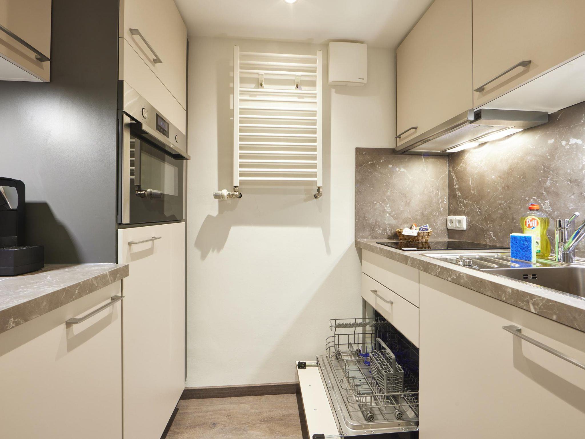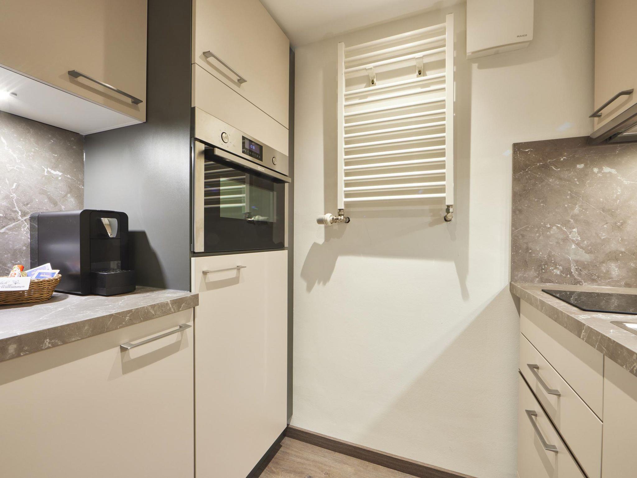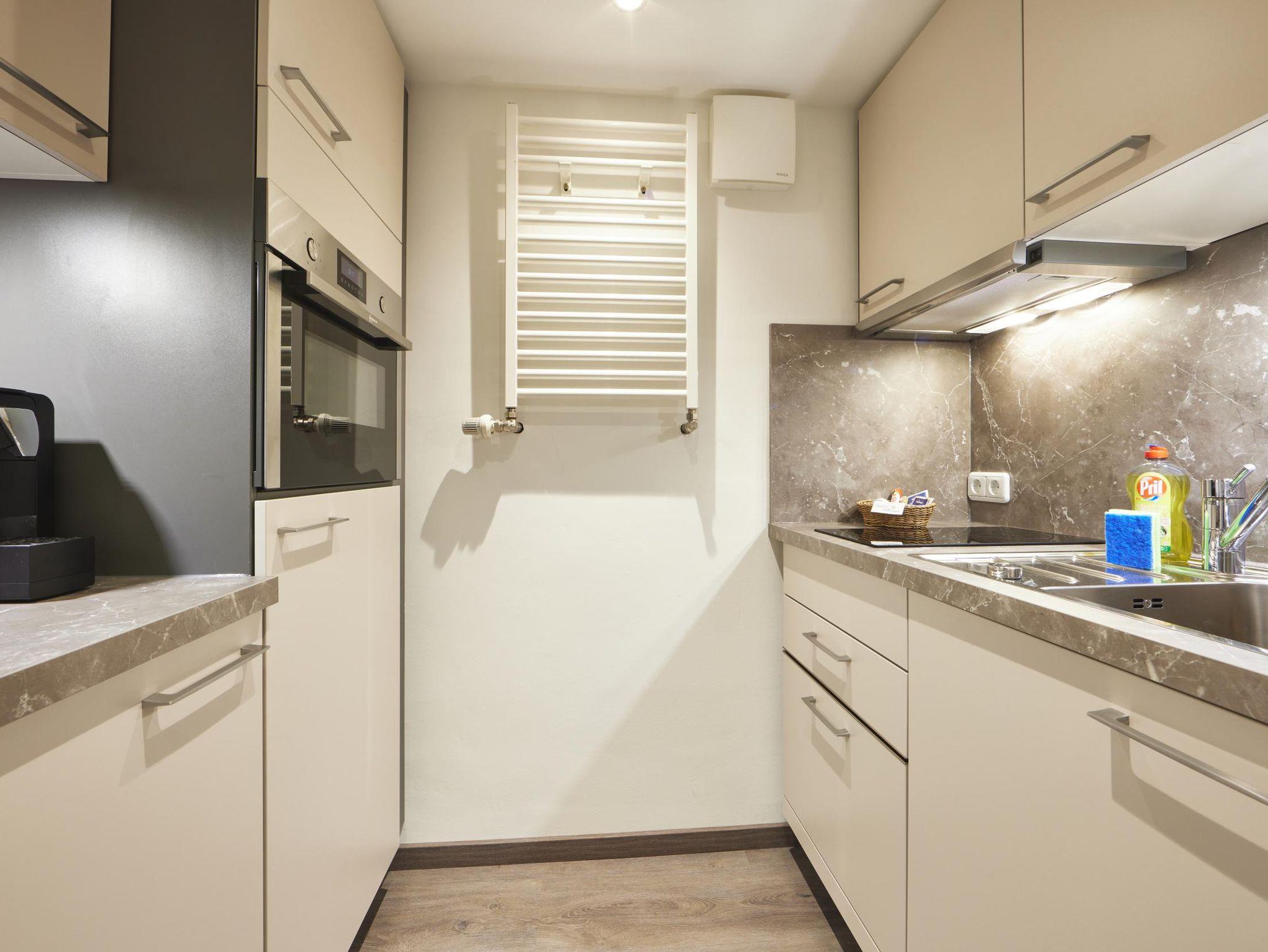 Die Frisch renovierten Ferianapartments sind 52 m² groß, haben ein Schlafzimmer, ein Wohnzimmer mit Essecke, ein Badezimmer mit Dusche, eine Küche mit Herd/Mikrowellen-Kombi, Spühlmaschine, Wasserkocher etc. und einen schönen Balkon zur Hofseite des Gebäudes mit Blick auf den Kofel und die Ammergauer Alpen. Im Keller befindet sich die Gästewäscherei mit Münzeinwurf und die Recycling Station.