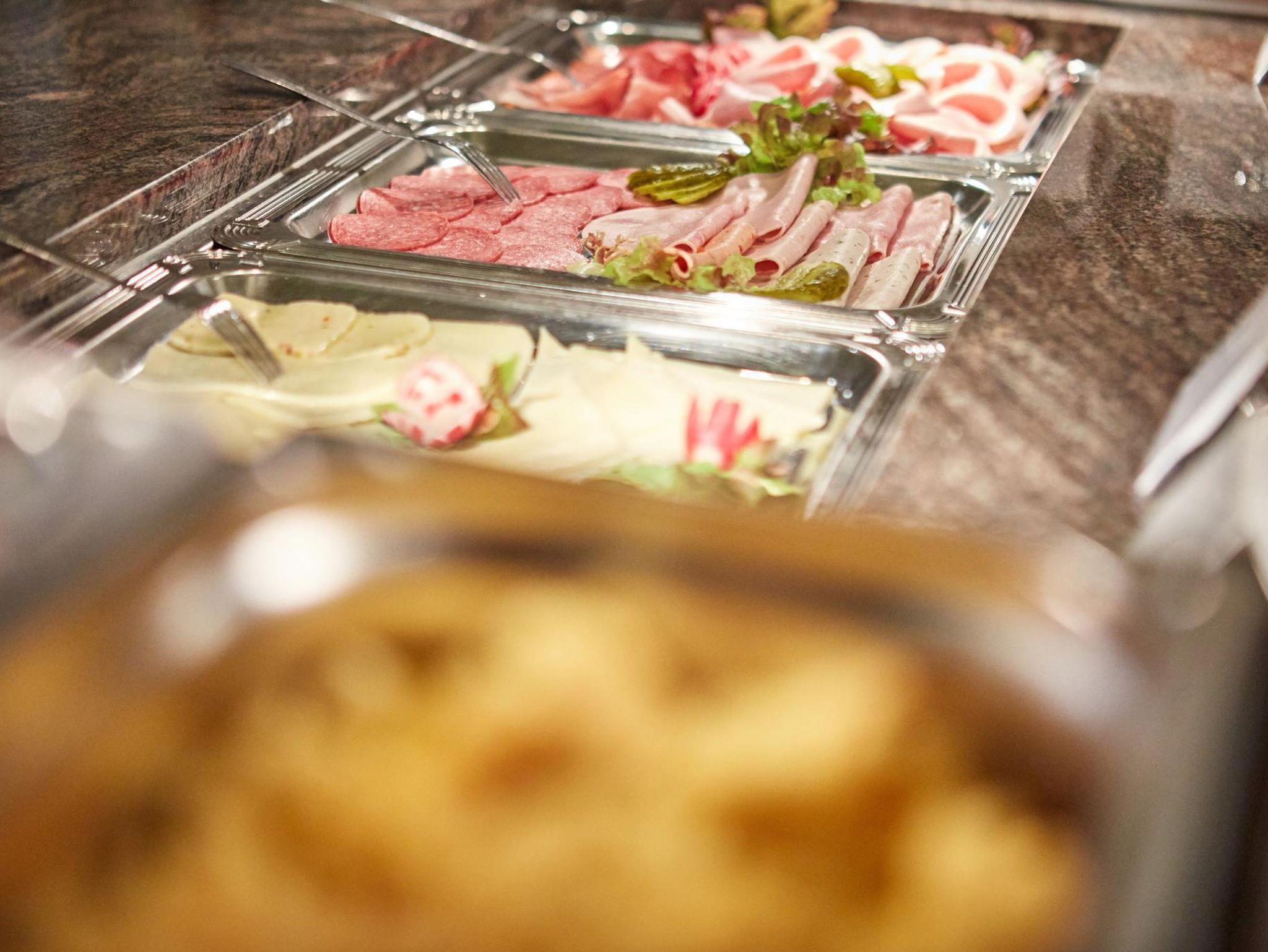 Wir bieten ein kontinentales Frühstücksbuffet an, das vor Ort hinzu gebucht werden kann. Erwachsene zahlen 15,00 Euro und Kinder bis 14 Jahren 7,00 Euro.