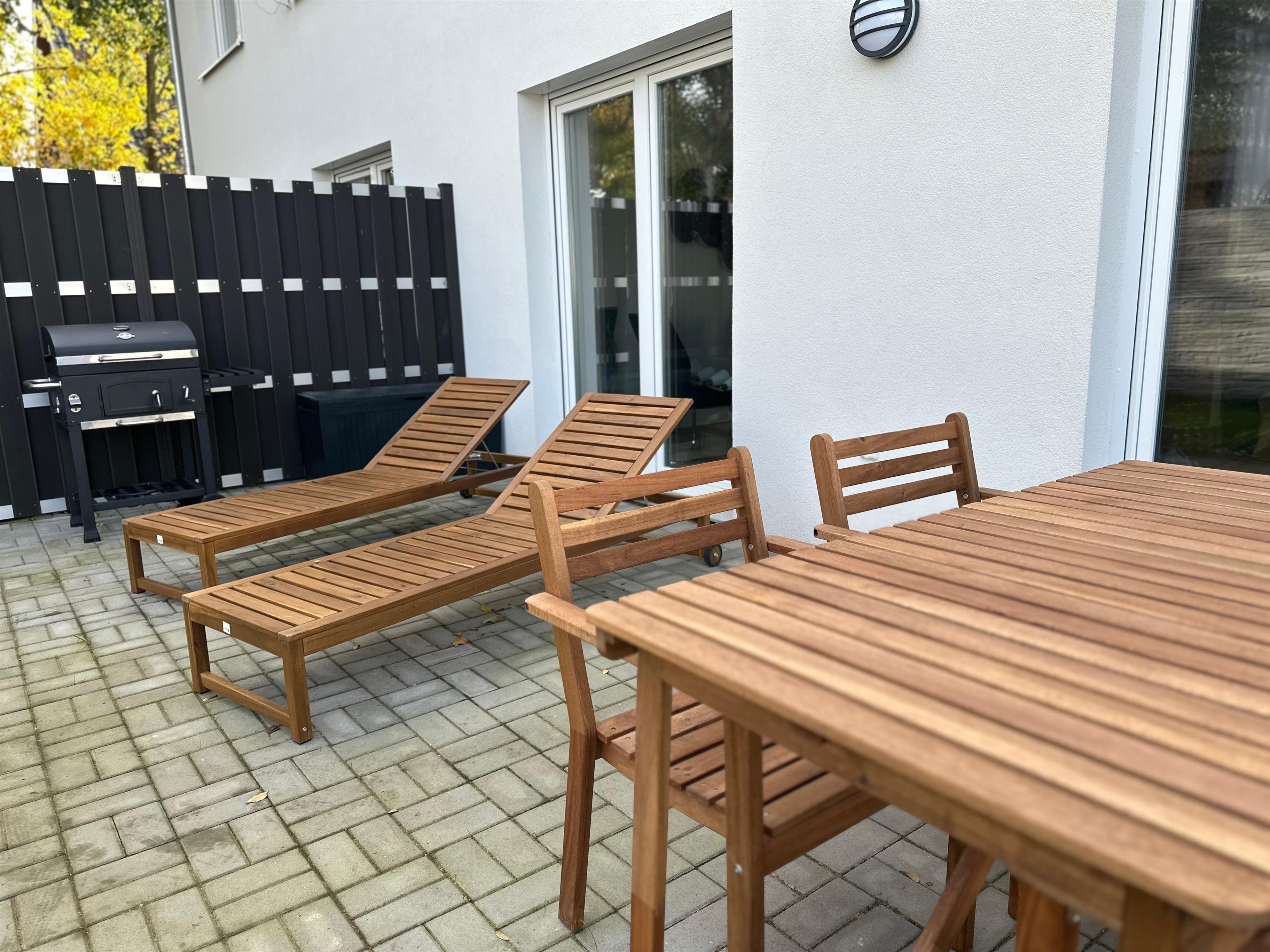 - kleiner aber feiner Garten mit gemütlichen Gartenmöbel und Holzkohlegrill – perfekt für entspannte Grillabende