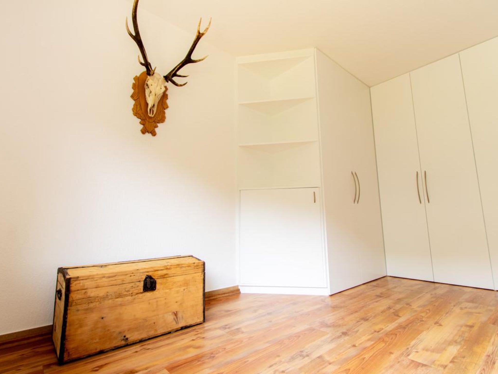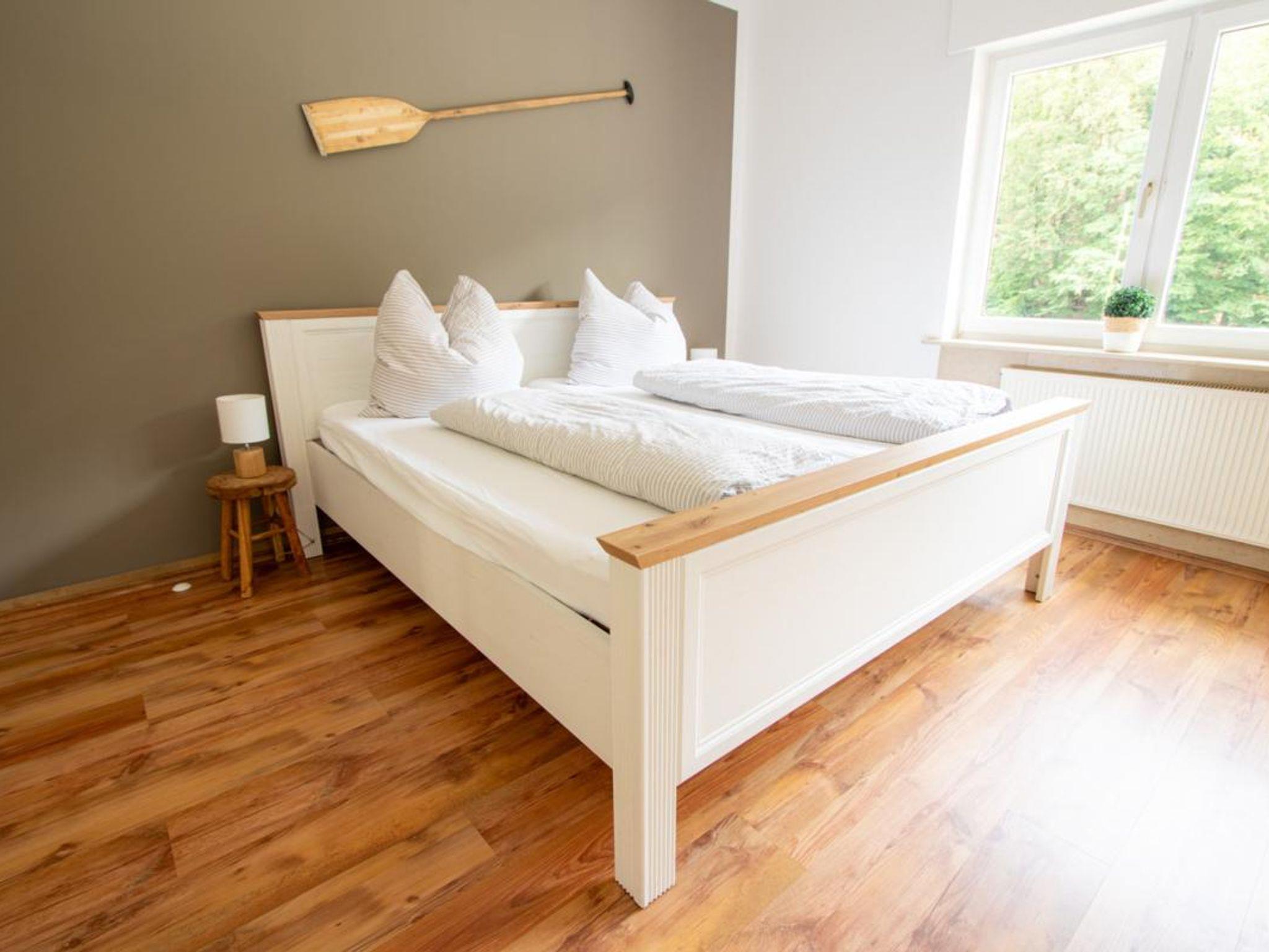Schlafzimmer mit Doppelbett (2 Matratzen, Liegefläche 180x200 cm), auf Wunsch kann ein Kinderbett gestellt werden, großer Einbaukleiderschrank.