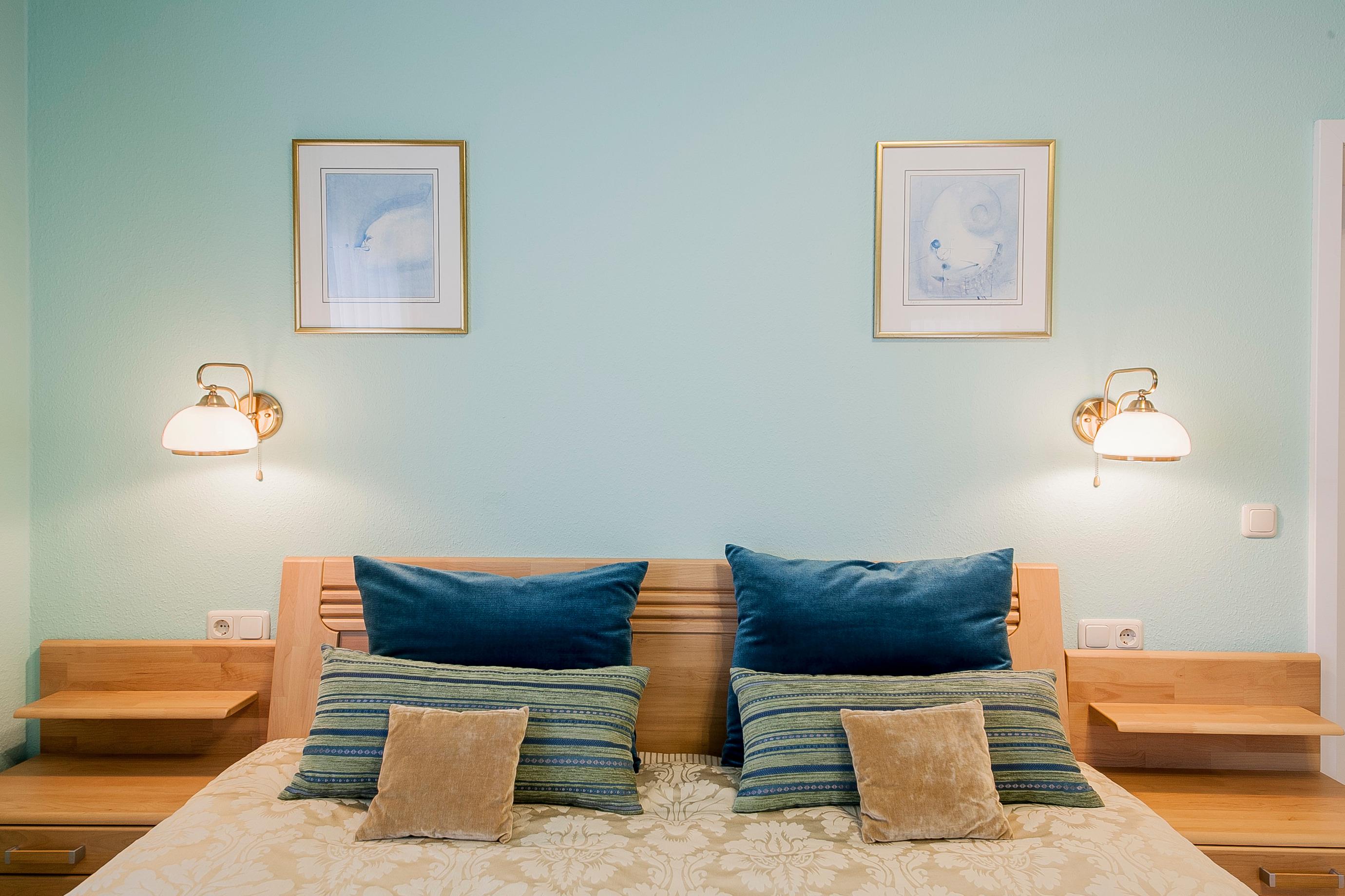 Für einen erholsamen Schlaf finden Sie bei uns ein gemütliches Doppelbett (200x180) mit neuen Kaltschaummatratzen. Das komfortable Schlafzimmer bietet zudem einen geräumigen 5-türigen Kleiderschrank (drei davon mit Spiegel) mit eingebauter Kommode und eine Ankleidebank. Ein Einzelbett, welches auch als Sofa benutzt werden kann, komplettiert den Schlafbereich. Feine Bettwäsche aus Maco-Satin (ist nur eines der Details, welches dazu beiträgt, dass Sie bei uns allen Stress hinter sich lassen können und am Morgen gerne noch einige Minuten länger liegen bleiben), macht selbst den Schlaf zu einem besonderen Erlebnis.