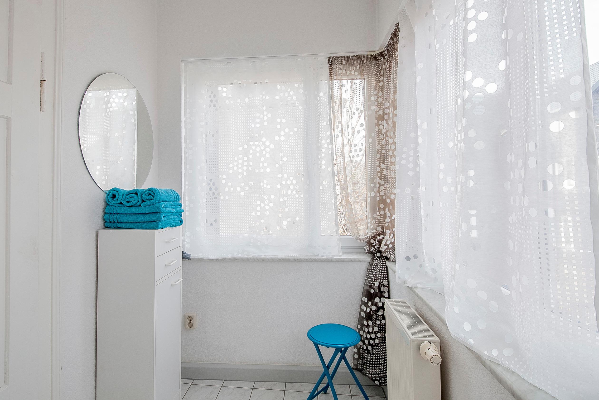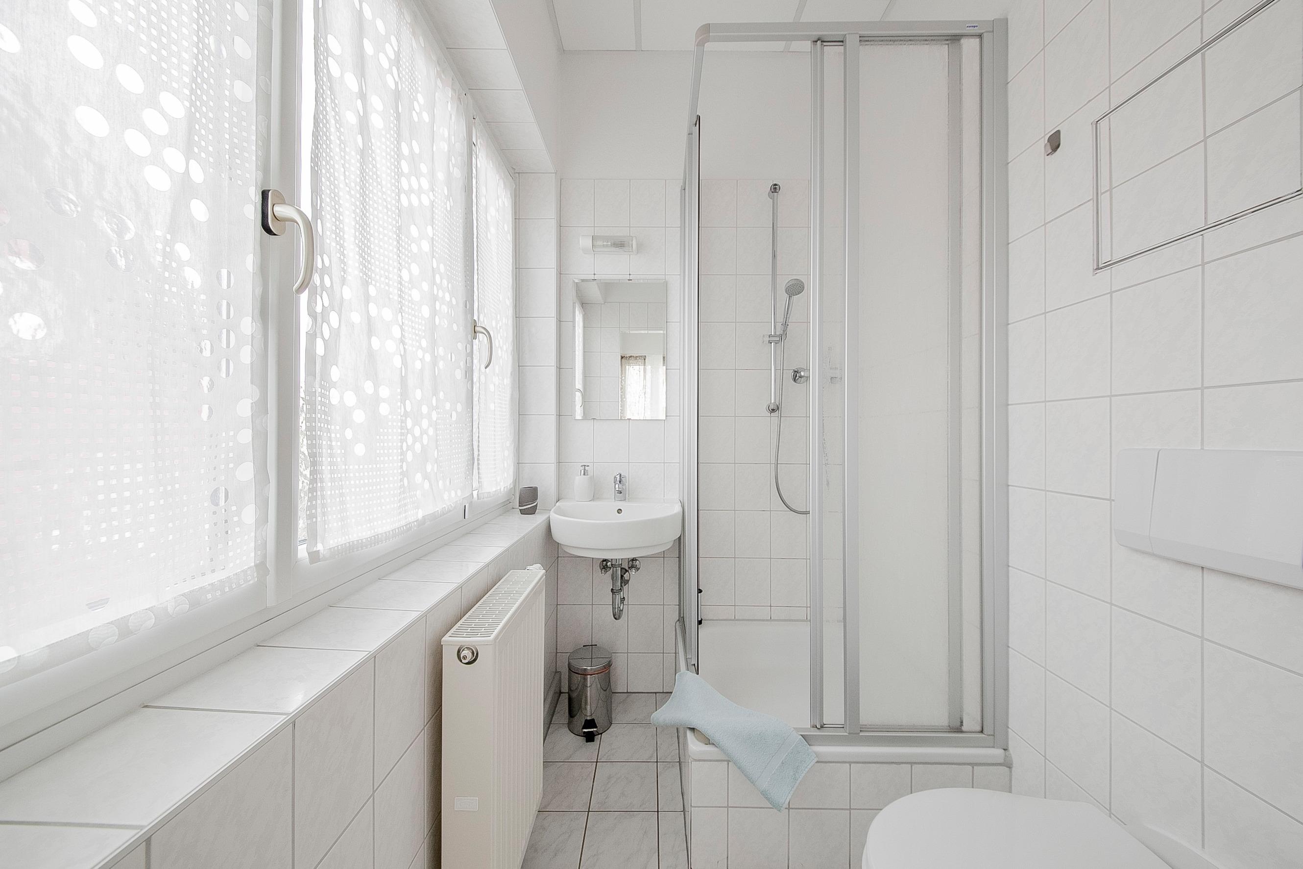 Dusche und WC finden Sie im ansprechenden Badezimmer, das aus zwei Räumen besteht.