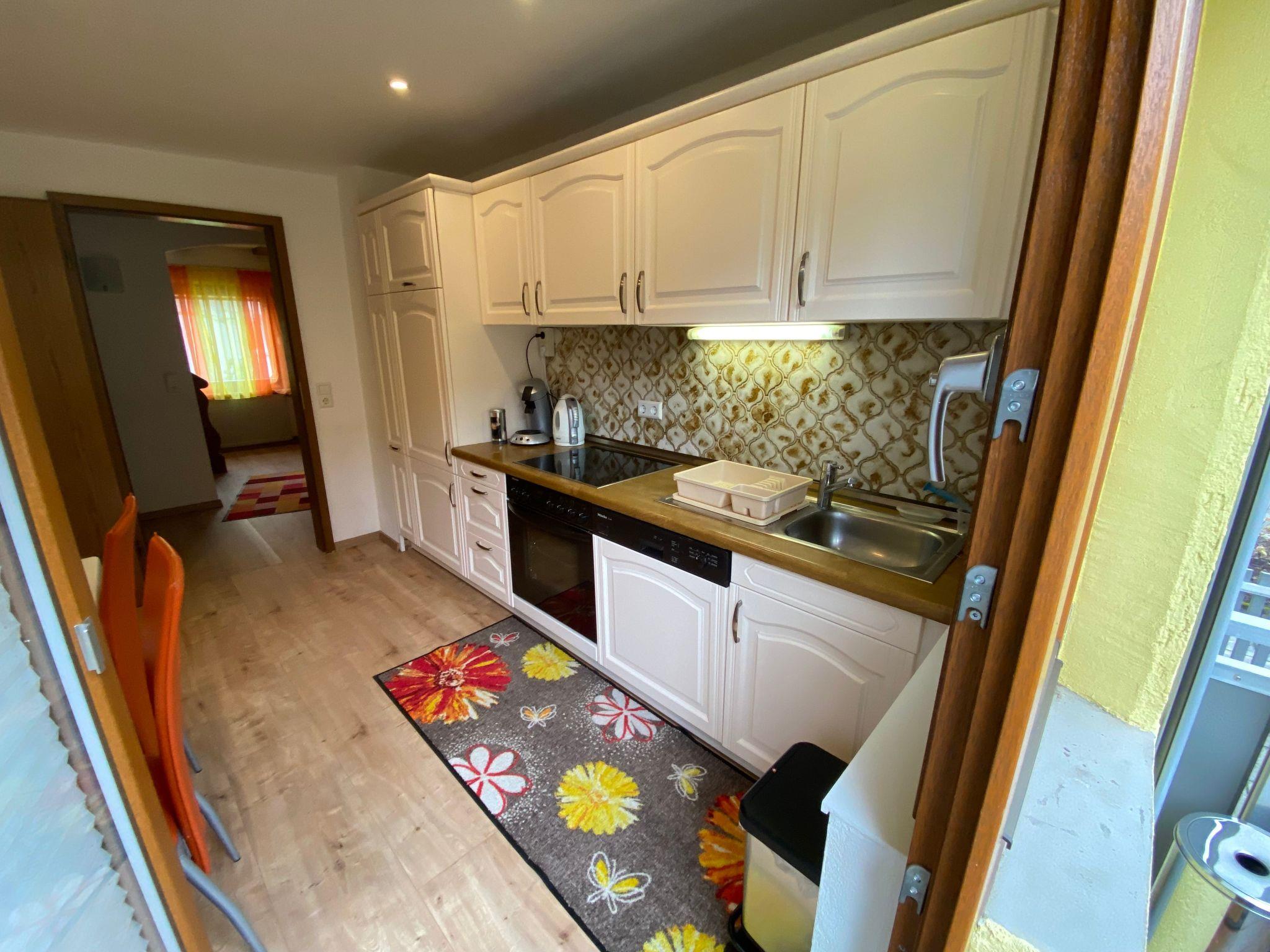The large living room is divided into a dining area and a cosy area. Comfortable elements invite you to relax. An electric fireplace provides a relaxing atmosphere. A children's corner and many games provide variety. Internet connection, satellite TV, DVD, stereo radio with CD player are available. The kitchen is comfortably equipped with a large fridge-freezer, dishwasher, oven, microwave and of course the necessary small appliances such as coffee machine, egg cooker etc. In the dining-living room as well as in the kitchen we have a table for 6 people and a high chair for small children. Pets on request. During your stay you will receive the Oberkirch guest card. This entitles you to free travel by bus and train in the designated KONUS area - includes almost the entire Black Forest and the Rhine Valley from Karlsruhe to Basel. So you can explore our beautiful surroundings free of charge. A visit to our beautiful outdoor swimming pool in Oberkirch is also free of charge, and a walk up the Schauenburg, Oberkirch's landmark, is rewarded with a view as far as neighbouring Alsace. The Ortenau has an ideal climate for growing wine and fruit. Strawberries, cherries, plums, apples and, of course, wine are always a good reason to sample the produce directly from the producers, and the pilgrimage church of Lautenbach is just a few kilometres away. The Allerheiligen waterfalls take you to the Allerheiligen ruins. The "Wiesensteig" hiking trail has become famous thanks to awards in the press. This is a stage of the Renchtalsteig hiking trail. Oberkirch is the ideal starting point for exploring the marvellous landscape and you can reach the Europapark in Rust in just over half an hour. A day trip is definitely worthwhile.