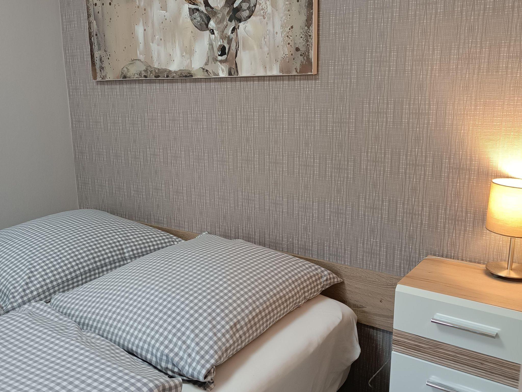Der Raumgröße geschuldet steht das Bett an der Wand, sodass der Ausstieg nur auf einer Seite möglich ist.