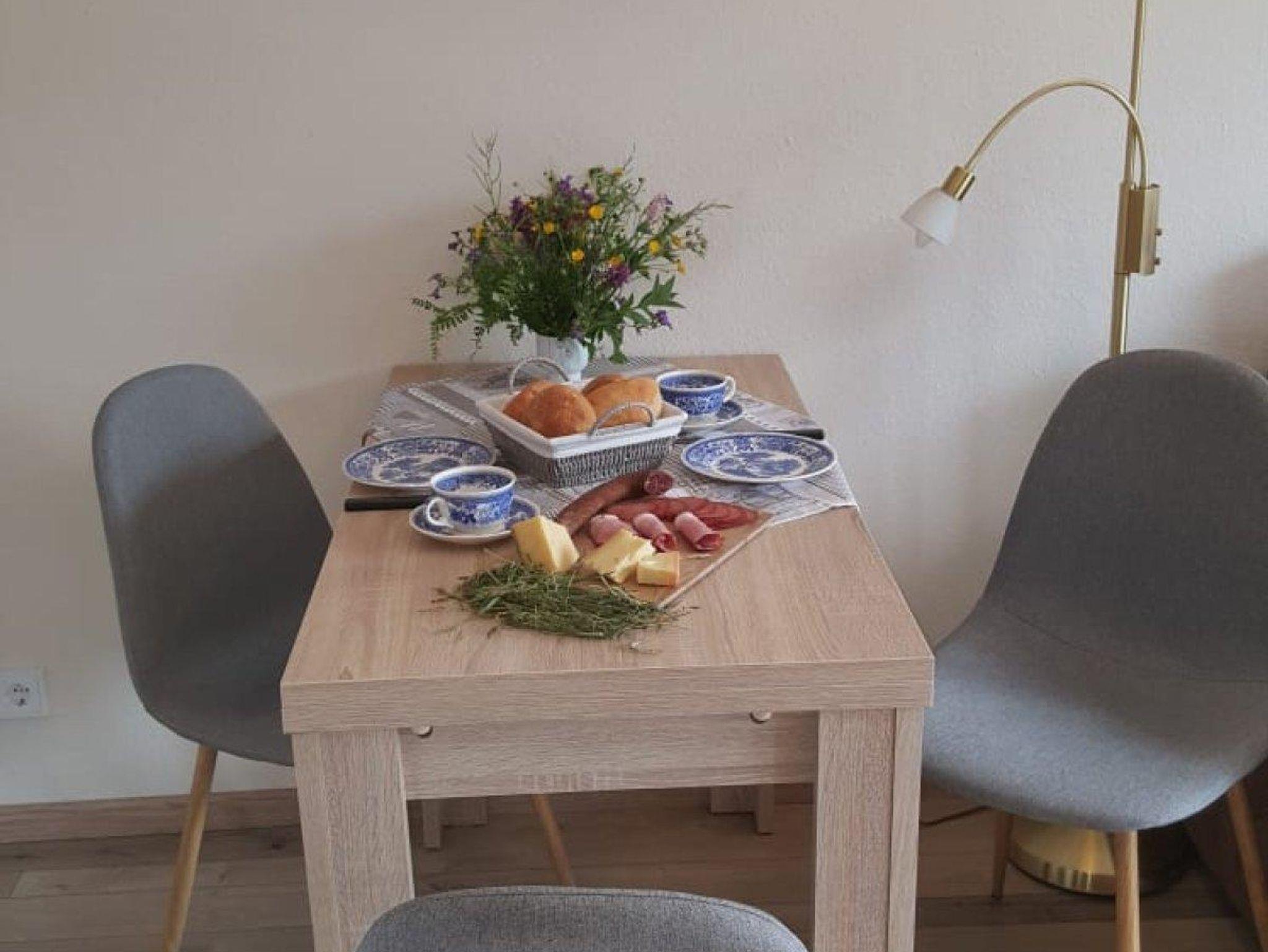 Die geschmackvolle Küchenzeile ist mit Ceranfeld, Kühlschrank, Kaffeemaschine, Minibackofen, uvm ausgestattet.