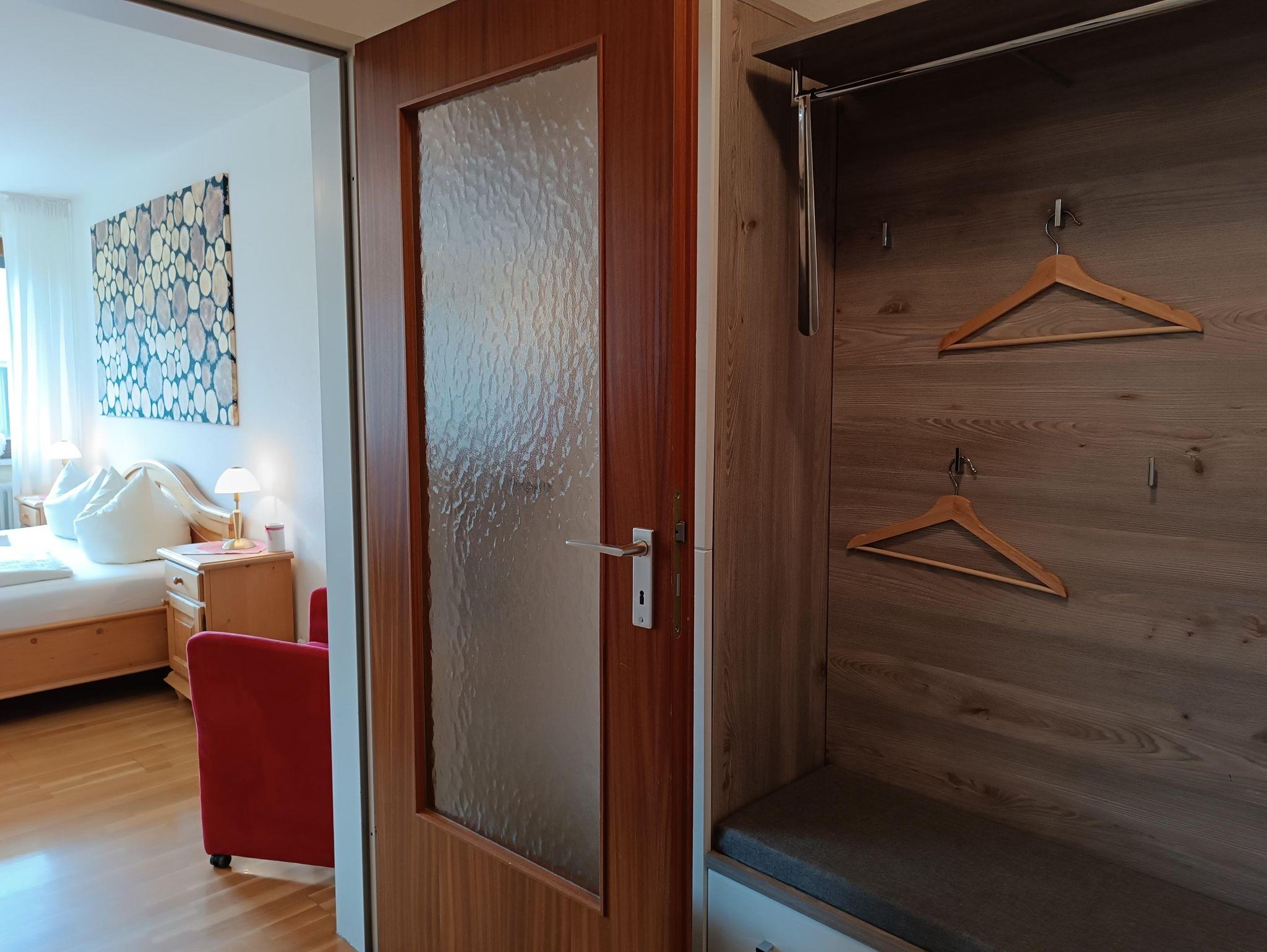 Sonnige 1-Raum Ferienwohnung im 1. OG, 48qm für 1-3 Personen, offene Küche, Bad mit Duschbadewanne, Südbalkon, kostenloser PKW-Stellplatz am Haus, Waschmaschine im Keller, Sauna, kostenloses Hallenbad, WLAN