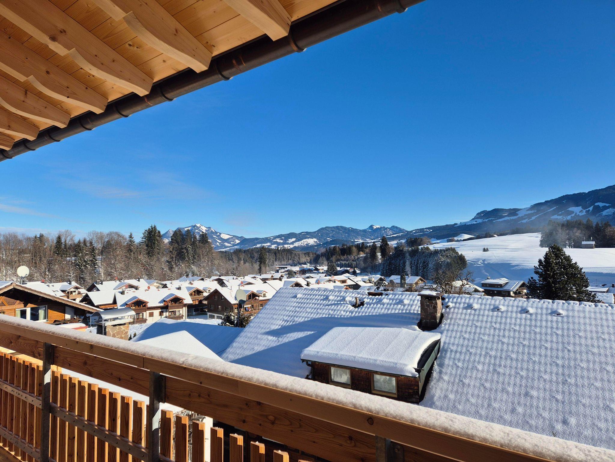 Die Ferienwohnung DREI bietet auf 60 m² Platz für 2 Personen und auf der Ost-Terrasse einen großartigen Ausblick auf die Allgäuer Berge inklusive Morgensonne.