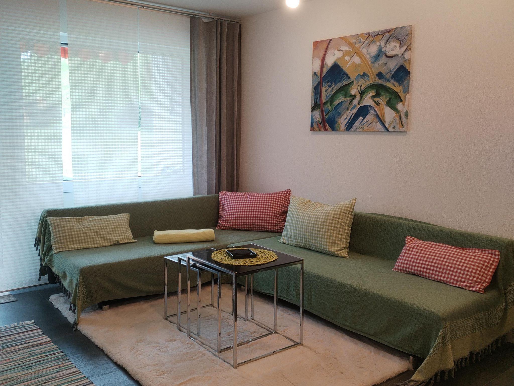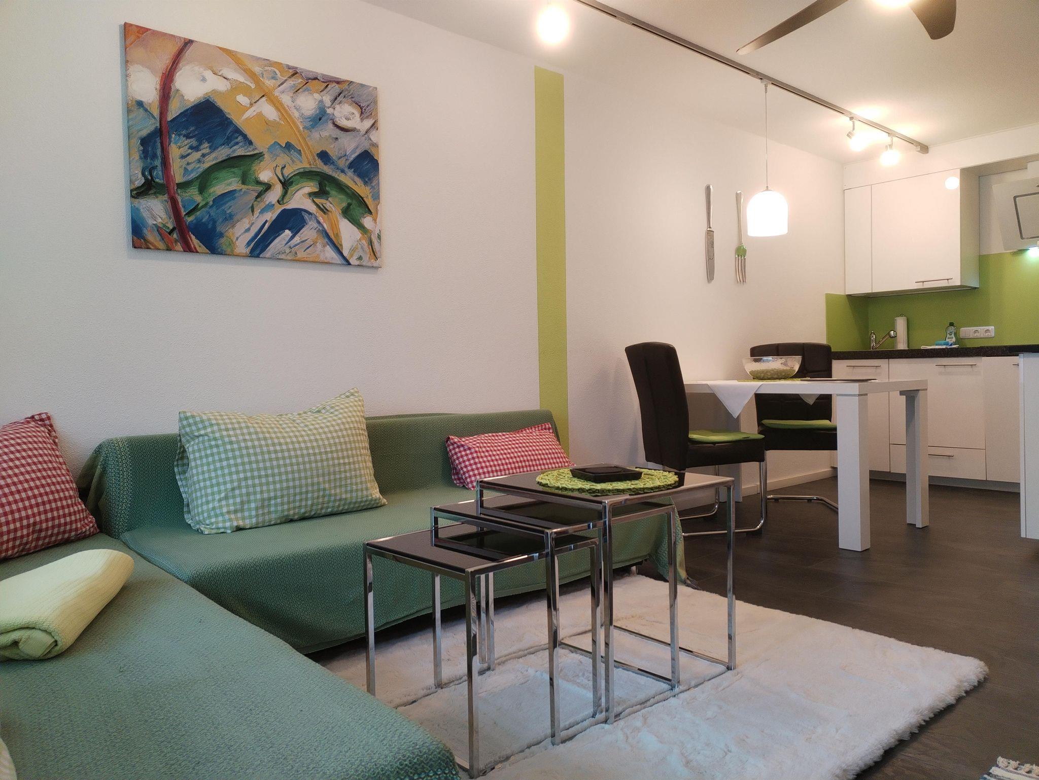 Moderne, neue renovierte Zweizimmerwohnung! Genießen Sie schon beim Frühstück auf der Südterrasse den Blick auf das Rubihorn und Nebelhorn. Das Wohnzimmer bietet eine Sofaecke , einen Esstisch und eine Küchenzeile mit Spülmaschine und Herd mit Ceranfeld. Angrenzend befindet sich das Bad mit begehbarer Dusche/WC und das separate Schlafzimmer mit Doppelbett (140x200cm). Im Flur gibt es einen Einbauschrank für Ihre Kleidung.
