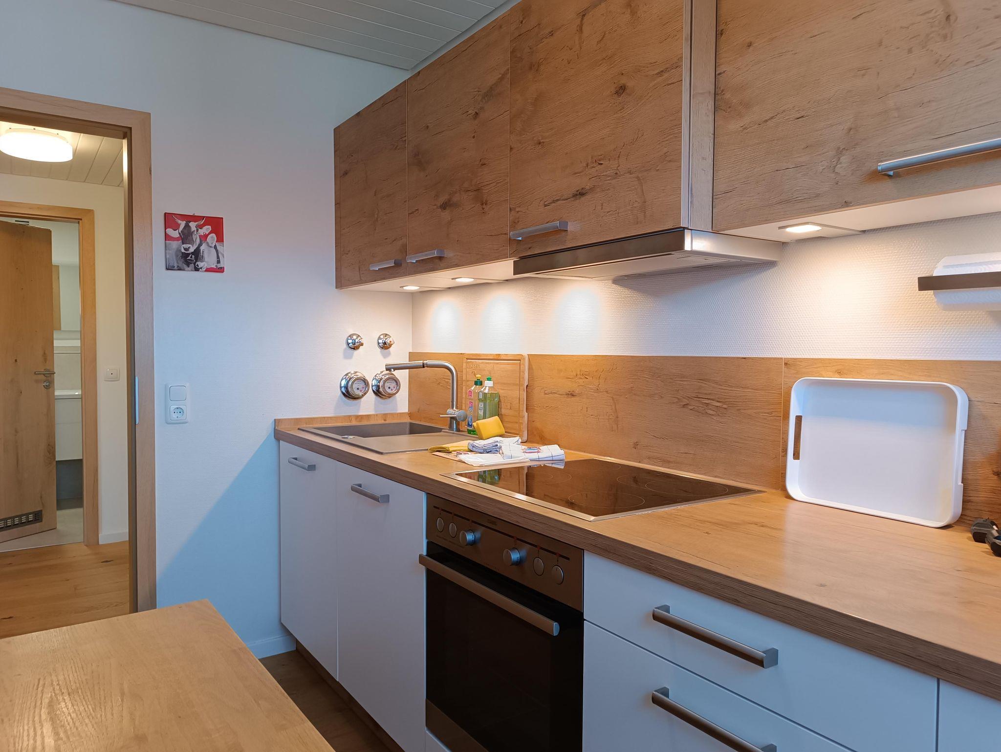 Hochwertige 2-Raum Ferienwohnung im EG, 60qm für 1-3 Personen, voll ausgestattete Küche, Bad mit Dusche, Südterrasse, kostenloser PKW-Stellplatz am Haus, Waschmaschine im Keller, WLAN