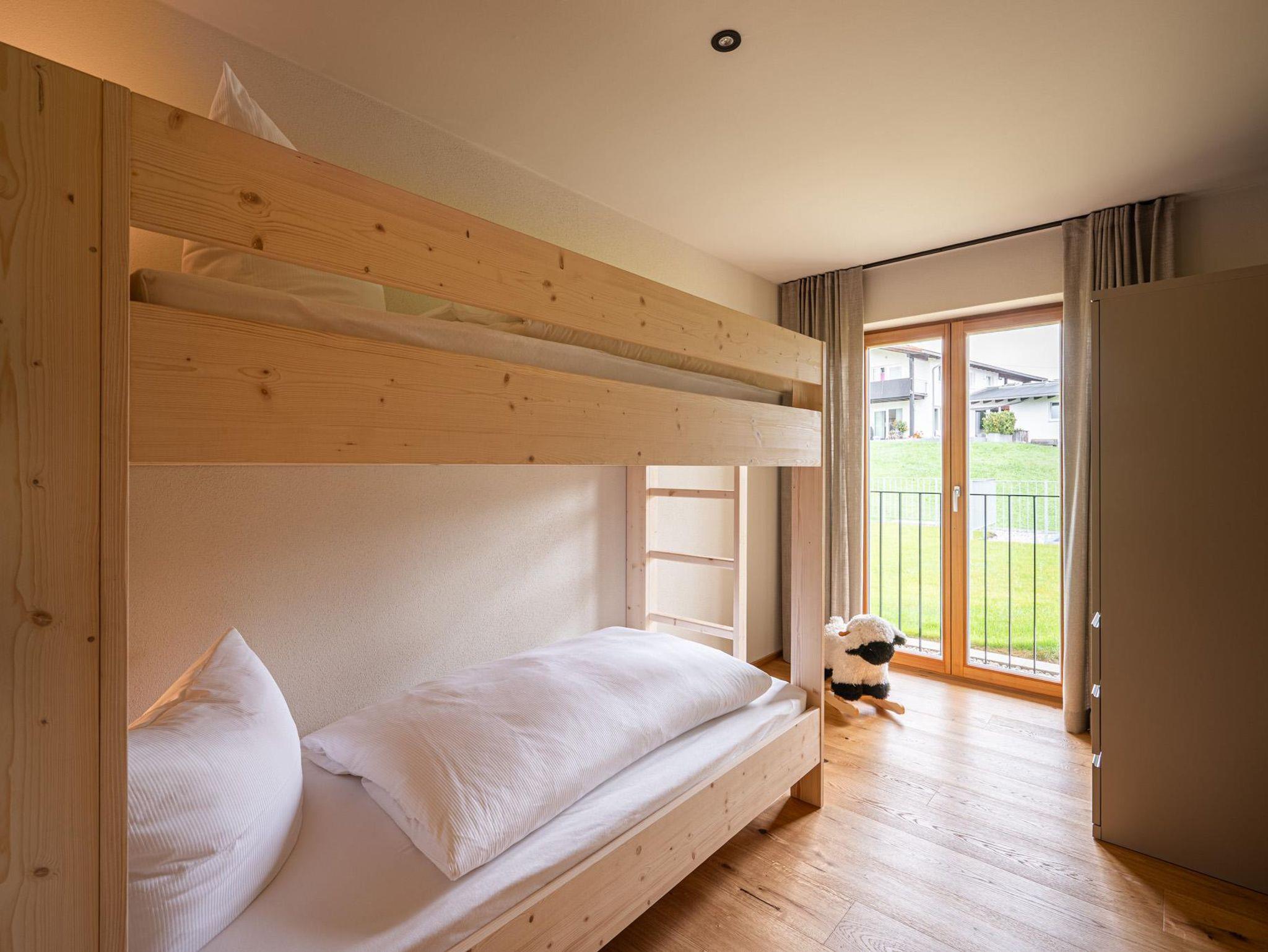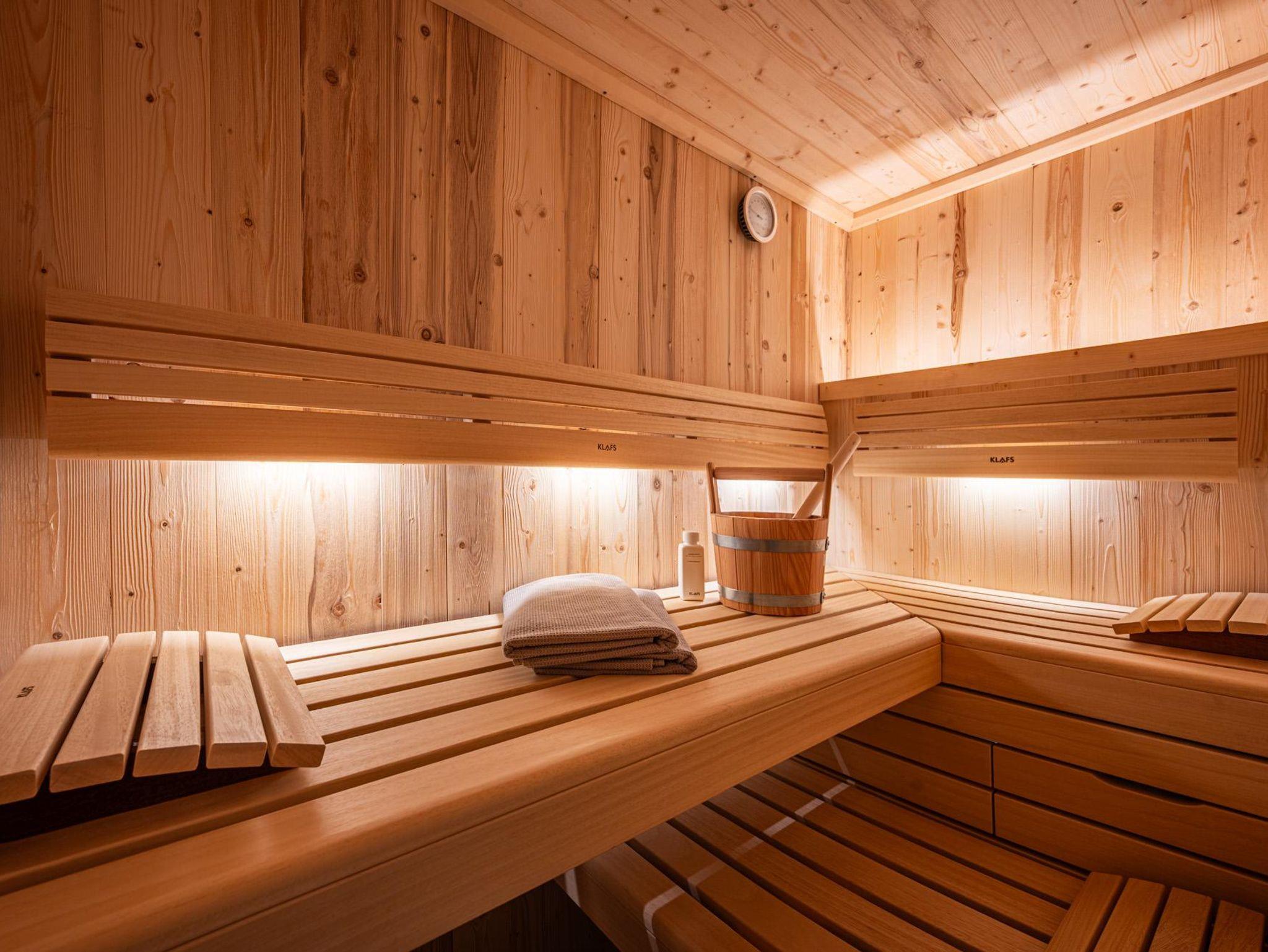Das Highlight? Die private Sauna im Badezimmer. Doppelwaschbecken, Dusche/WC und ein separates WC sorgen für zusätzlichen Wohlfühlfaktor. Die beiden Schlafzimmer sind praktisch aufgeteilt: eines mit Doppelbett, das andere mit einem gemütlichen Etagenbett.