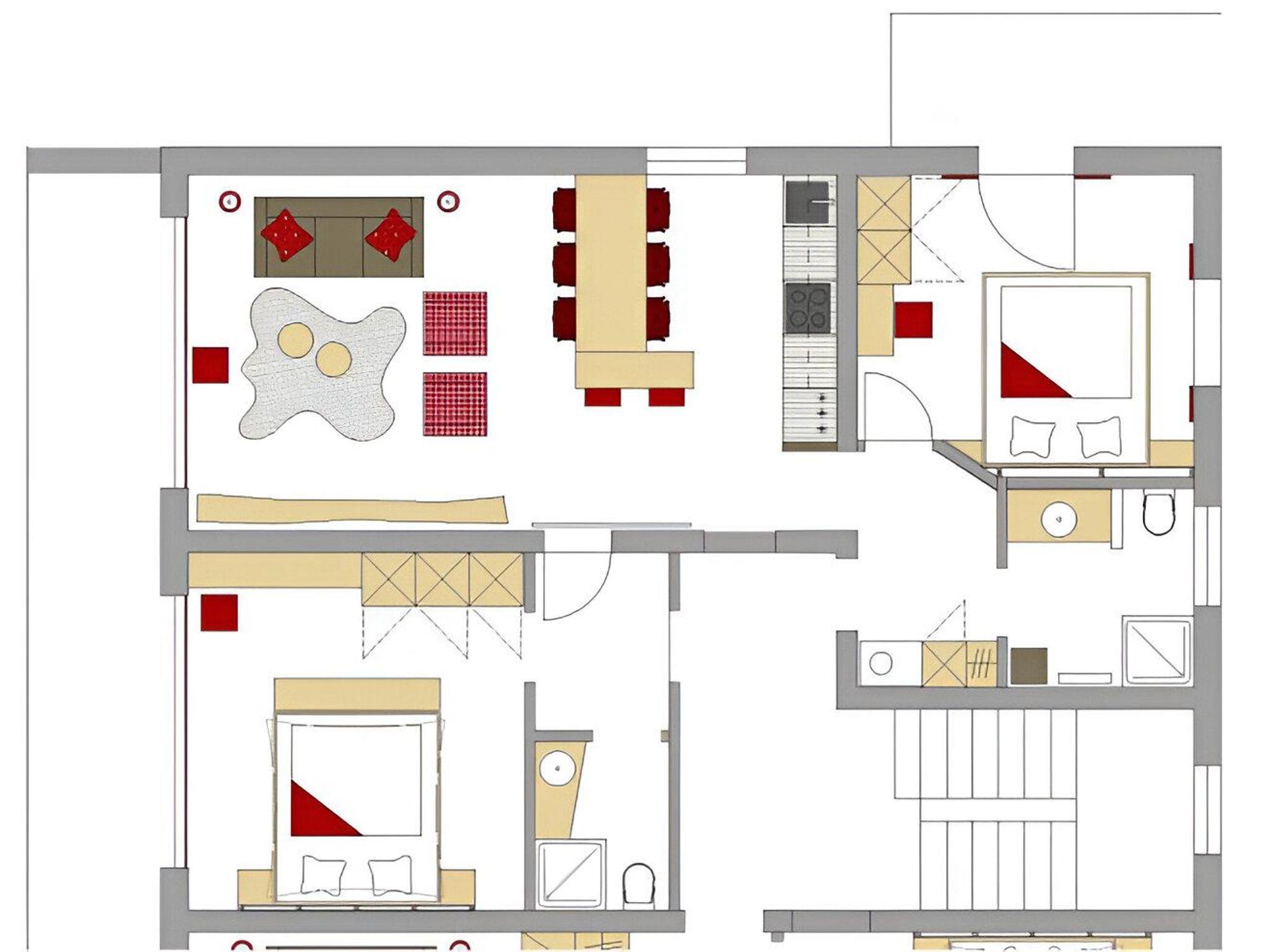 2 separate Schlafzimmer, 2 Bäder mit Dusche, WC, Handtuchwärmer, Fußbodenheizung und Fön, Wohnküche komplett ausgestattet mit Ceranfeld, Backofen und Geschirrspülmaschine, Wasserkocher, Senseo-Kaffeepadmaschine und Toaster, Wohnraum mit Couch, Smart-TV, Stereoanlage mit CD und USB, Safe, kostenloser WLAN-Zugang.