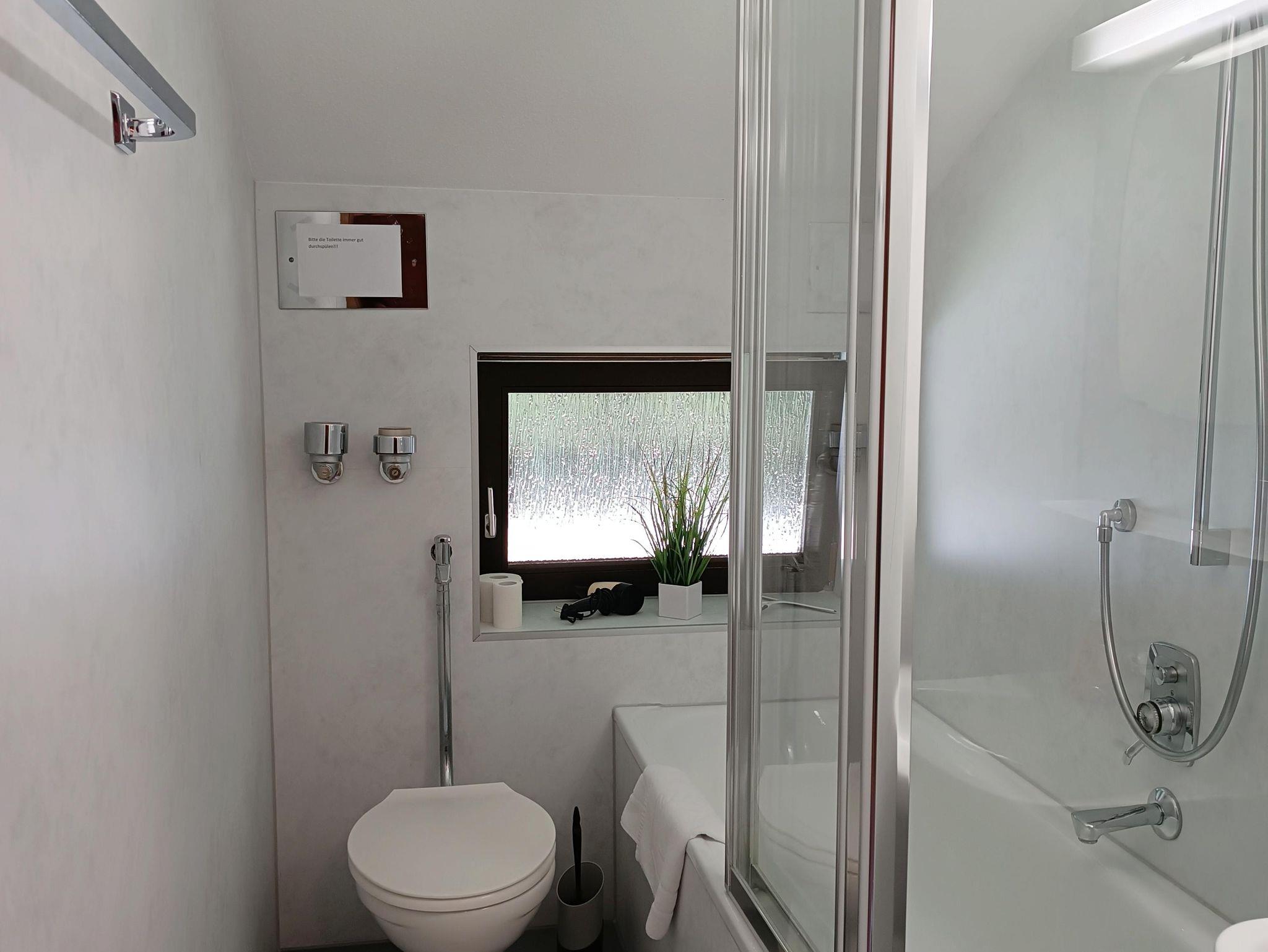 Das Bad ist mi Wanne/Dusche und WC ausgestattet.