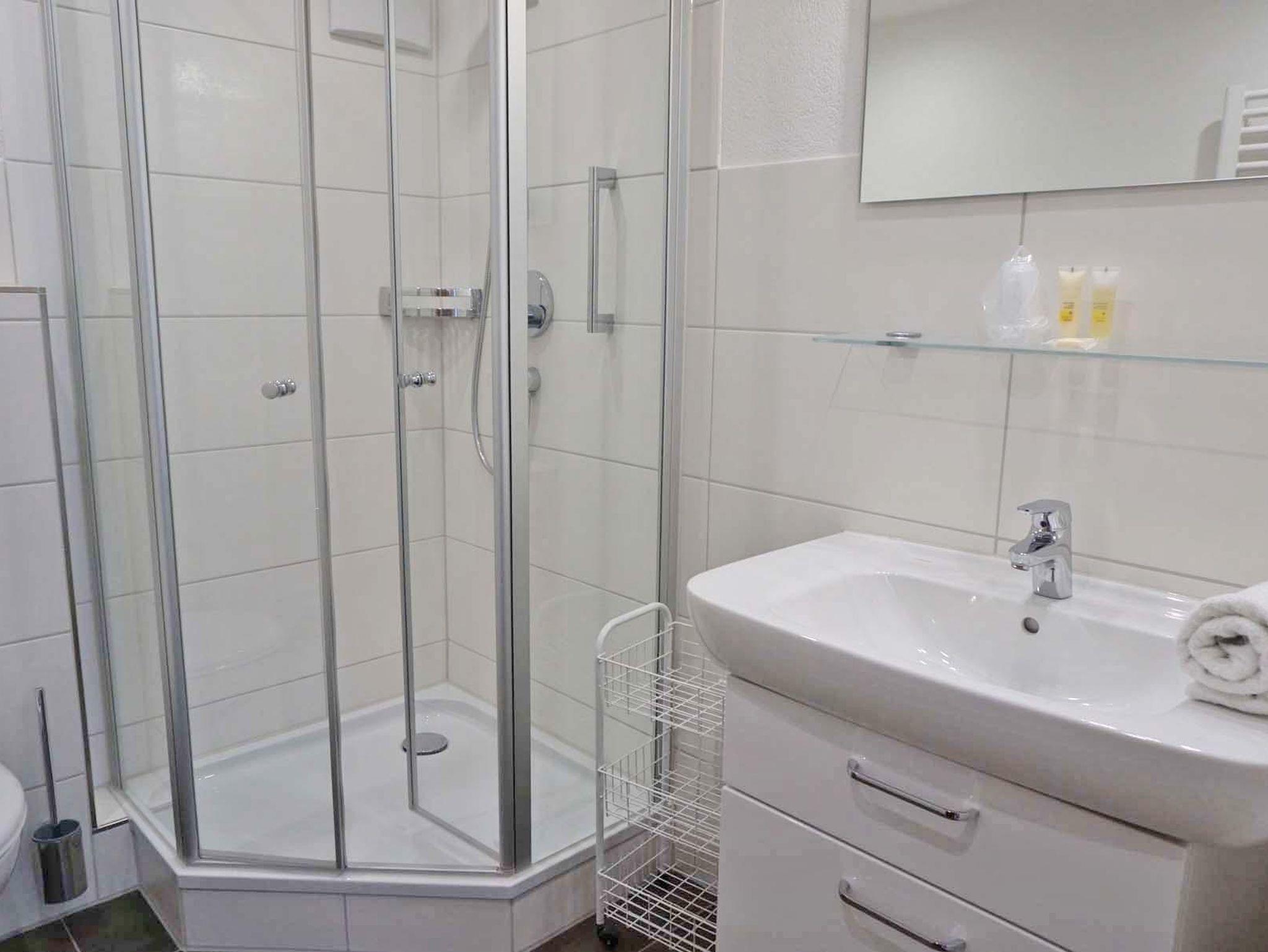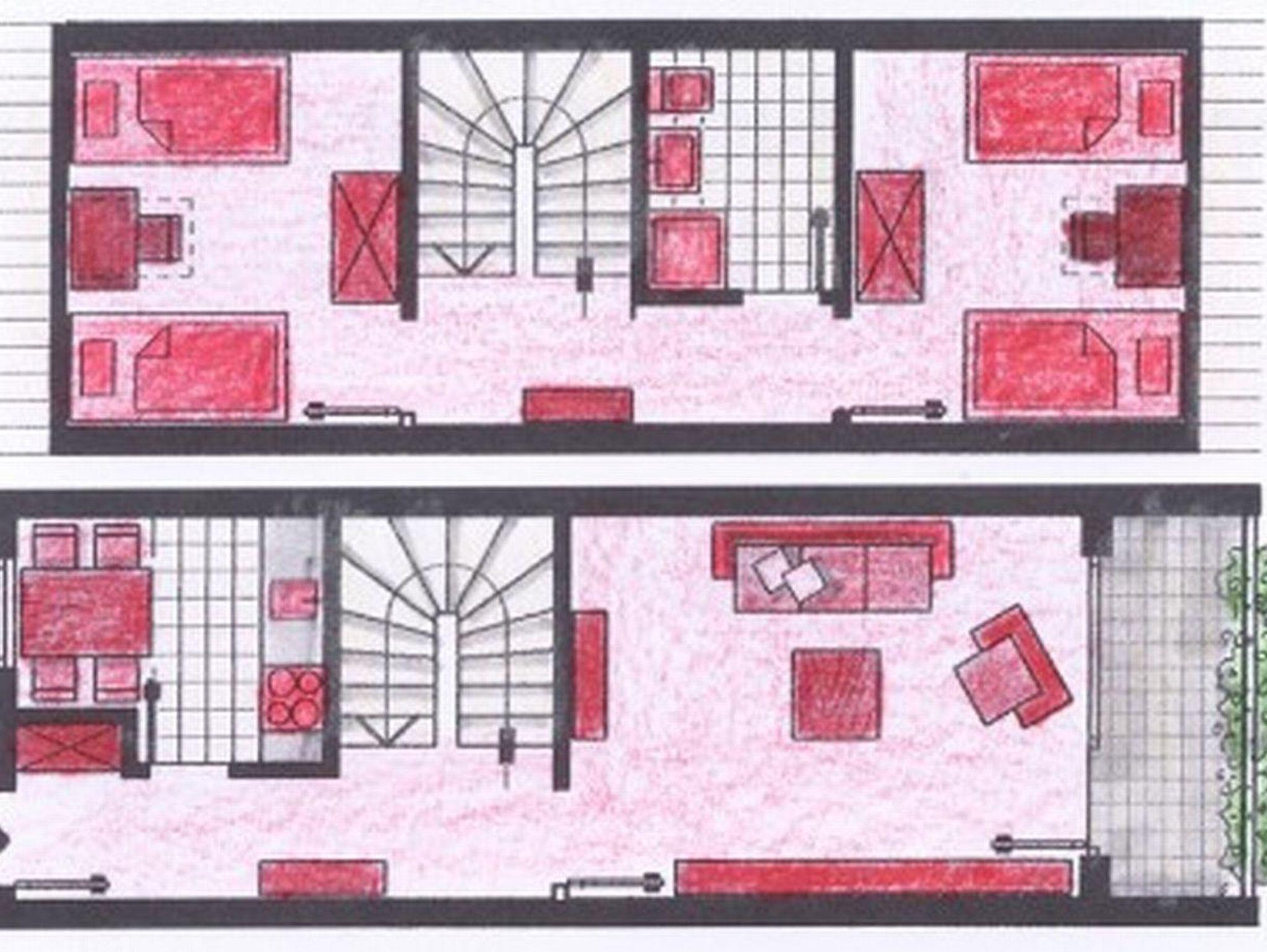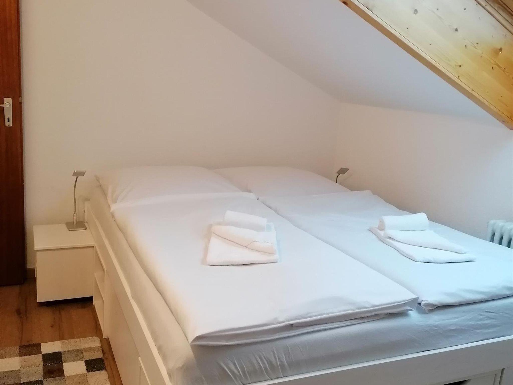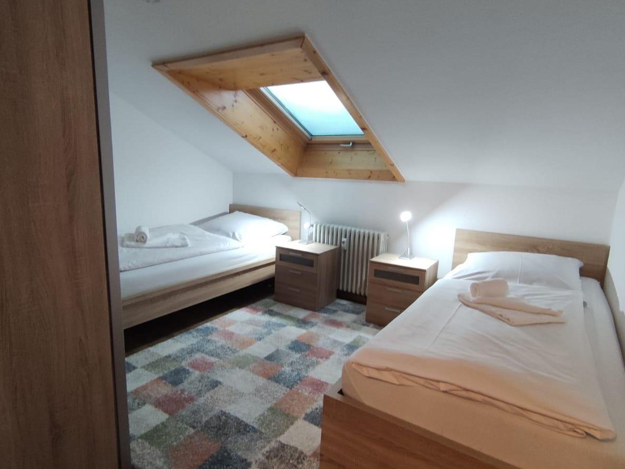 Im oberen Bereich finden Sie ein Schlafzimmer mit Doppelbett, das an der Wand steht (siehe Foto!), sowie ein weiteres Schlafzimmer mit 2 Einzelbetten.