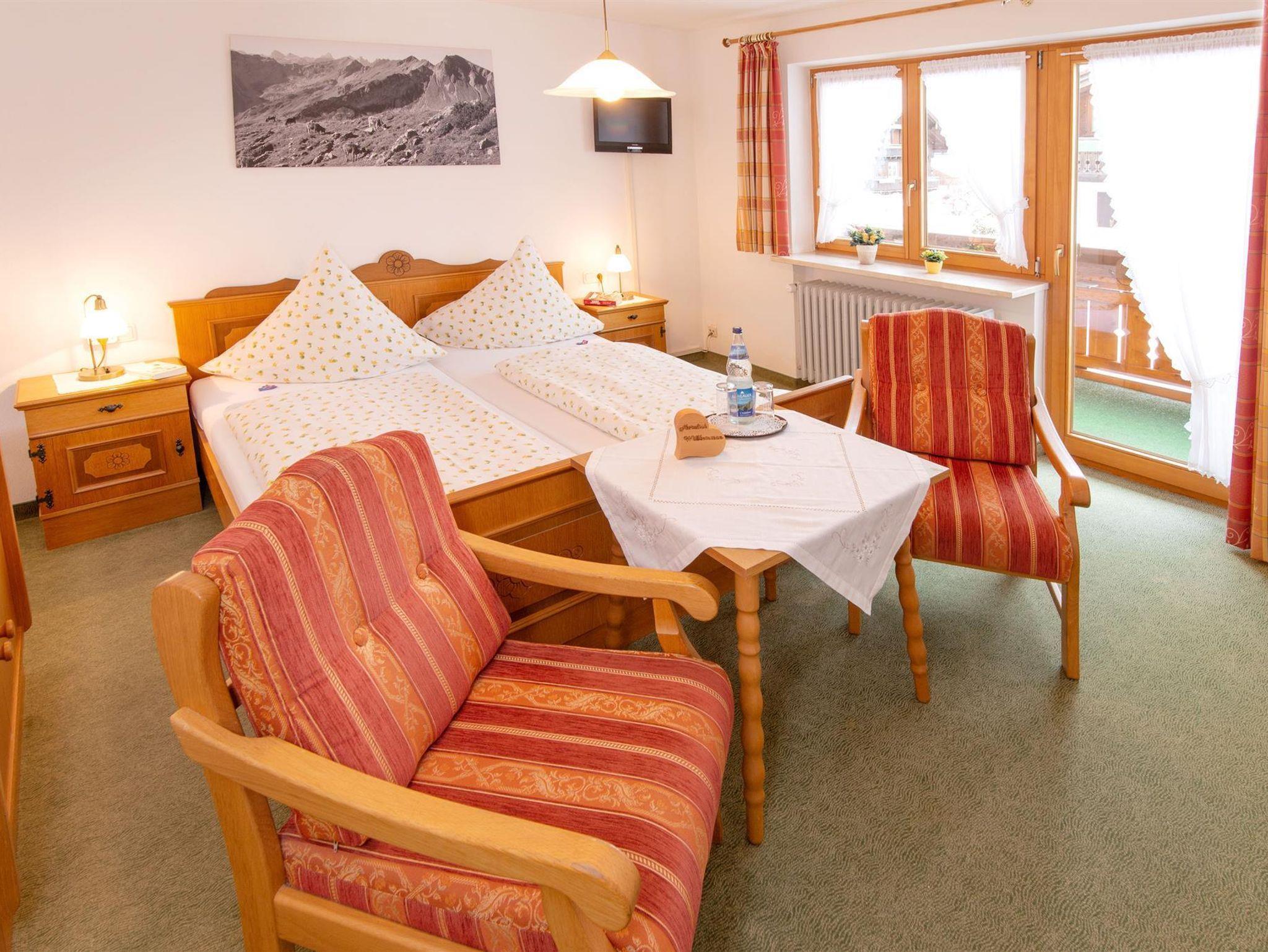 Behagliches Zimmer mit schönem Bergblick zum Nebelhorn, Rubihorn und Entschenkopf. Ostbalkon (Morgensonne).