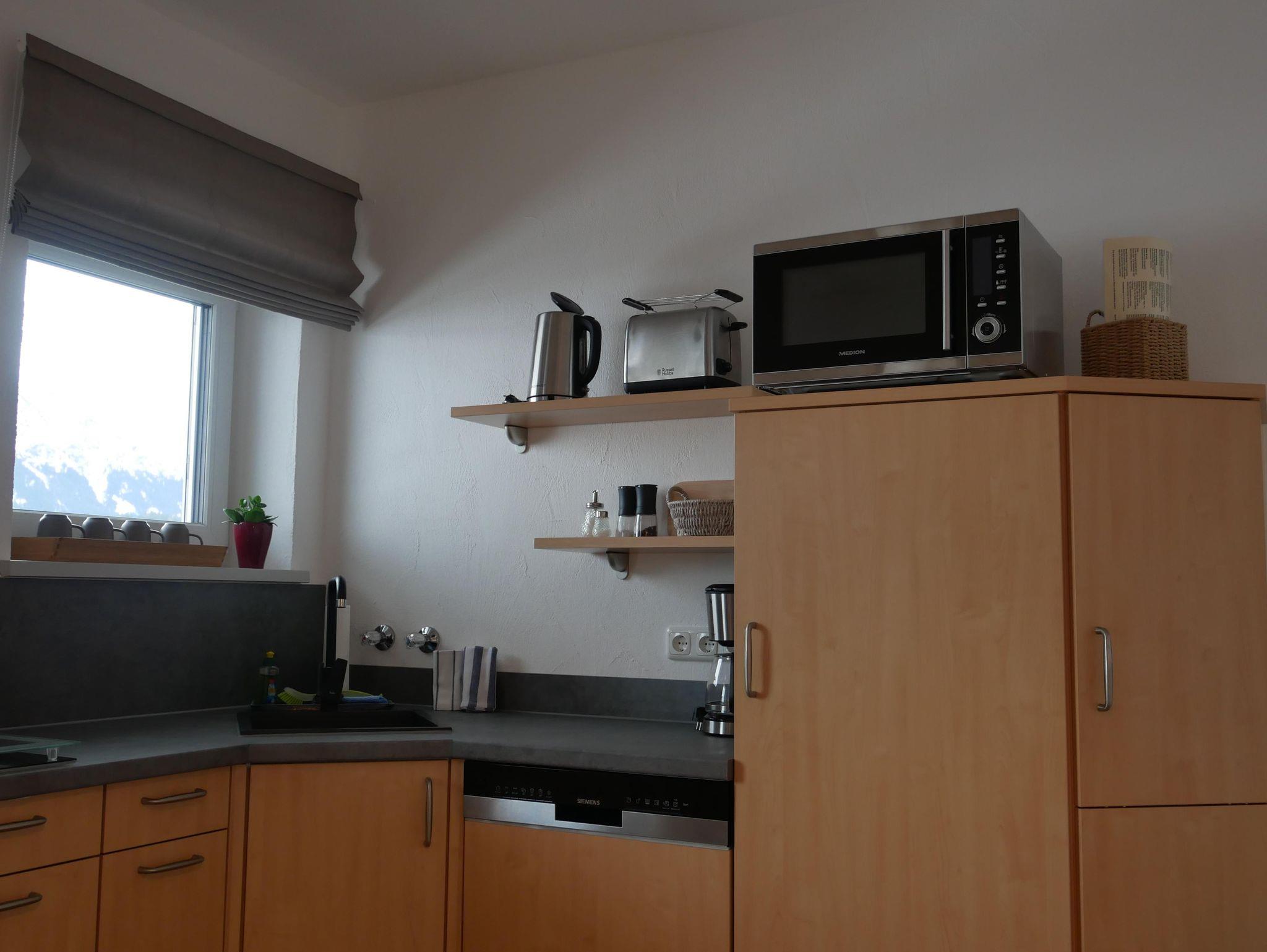 Eingangsbereich, Wohnzimmer mit hochwertiger Polstergarnitur offen zur Küche mit Essbereich. Induktionskochfeld / 2Zonen, Kühlschrank mit Gefrierfach, Mikrowelle integrierte Heißluft, Spülmaschine, Kaffeemaschine, Senseo-Kaffeepadmaschine, Wasserkocher, Toaster, komplettes Speise-Kochgeschirr. Separates Schlafzimmer-Komforthöhe-Boxspringbetten, Nachtkonsolen, Leselampen, Kleiderschrank, Radiowecker.