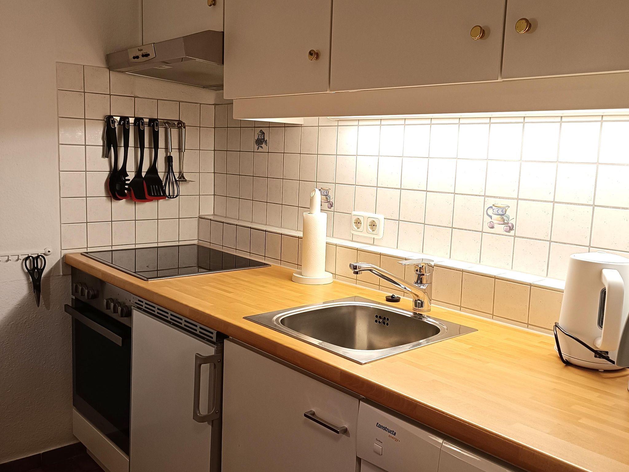 Sehr schöne 2-Zimmer-Maisonette Wohnung. Wohnraum mit Südbalkon , separate Küche mit Essplatz und Spülmaschine, Herd mit Backofen. Im Obergeschoss: 1 Schlafzimmer mit 2 Einzelbetten, die auch zusammengeschoben werden können und Dachfenster, Bad mit Dusche/WC. Zusätzliche Schlafmöglichkeiten auf Anfrage.