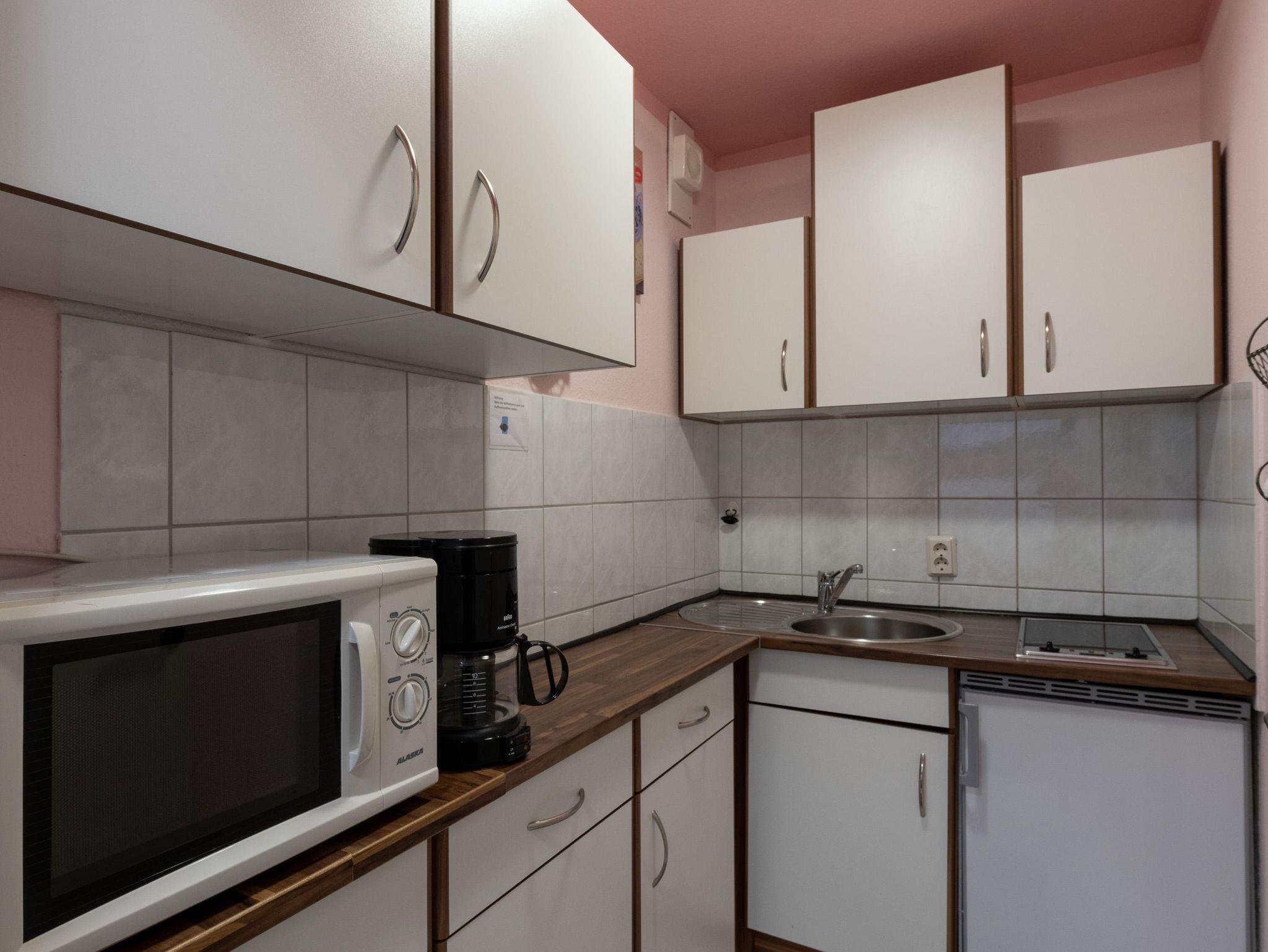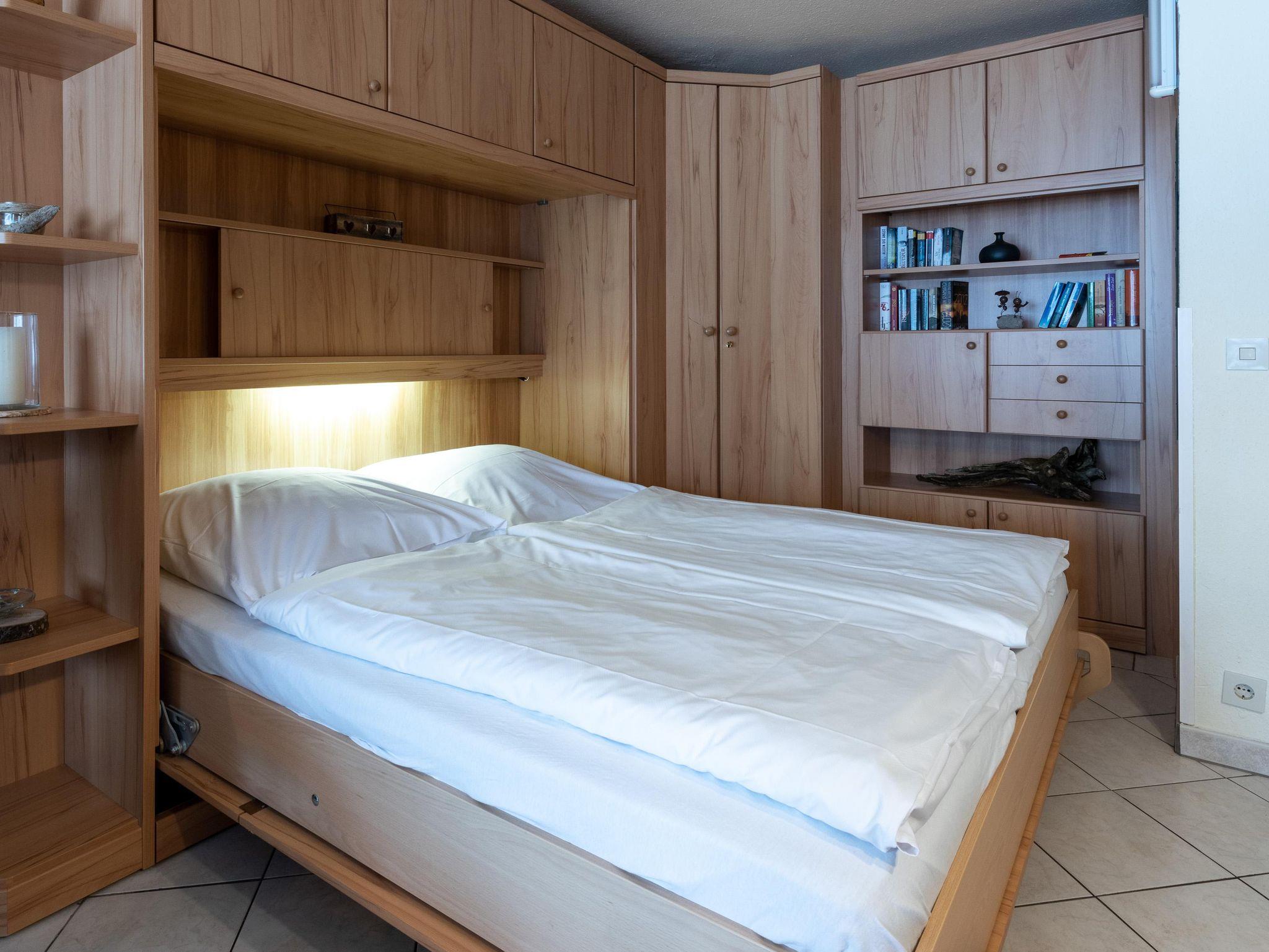 Wohlfühl-Appartment: Diese gemütlich Einzimmerwohnung verfügt über einen geräumigen, kombinierten Wohn/Schlafraum mit Schrankbett und Südterrasse, separater Küche sowie Bad mit Dusche/WC.