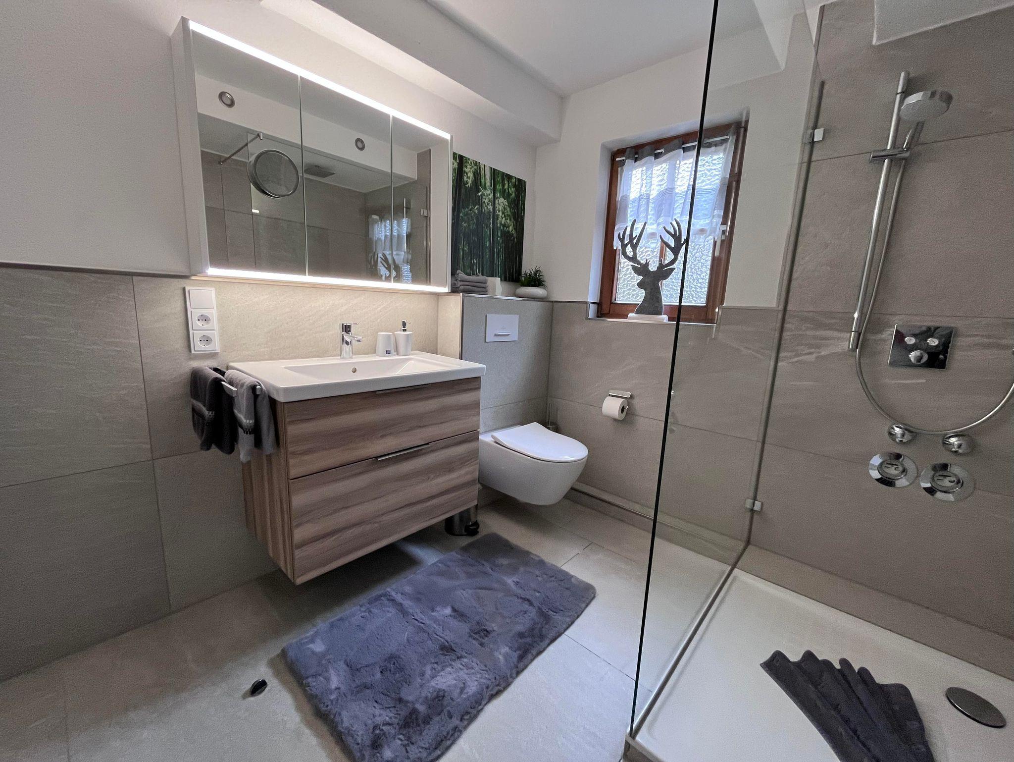 und ein modernes Bad mit großzügiger Rainshower Dusche.