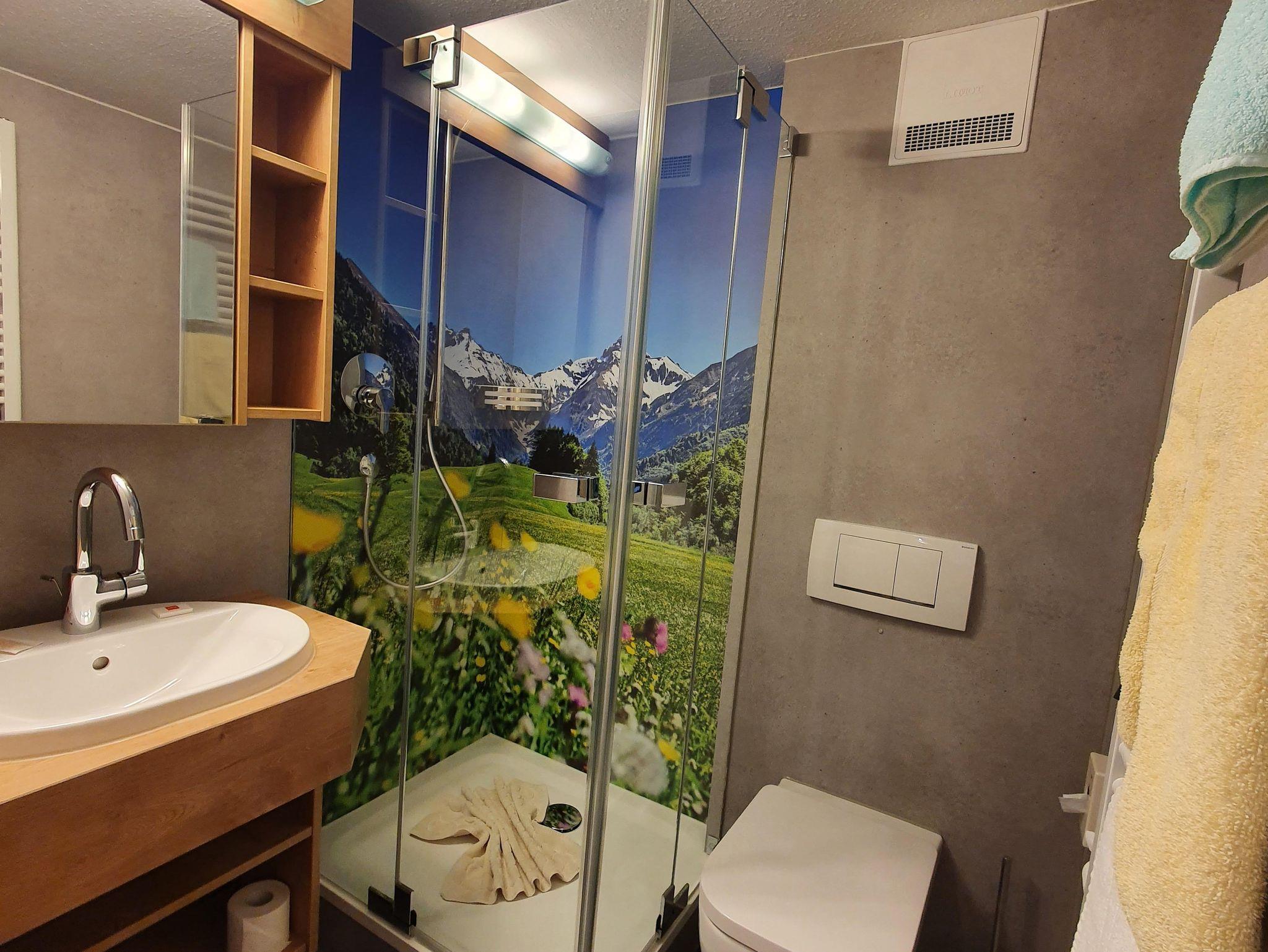 Gemütliche Gästezimmer mit WC, Dusche, Sat-TV, teilweise mit Balkon, von wo aus Sie eine herrliche Aussicht auf die Allgäuer Bergwelt genießen können.