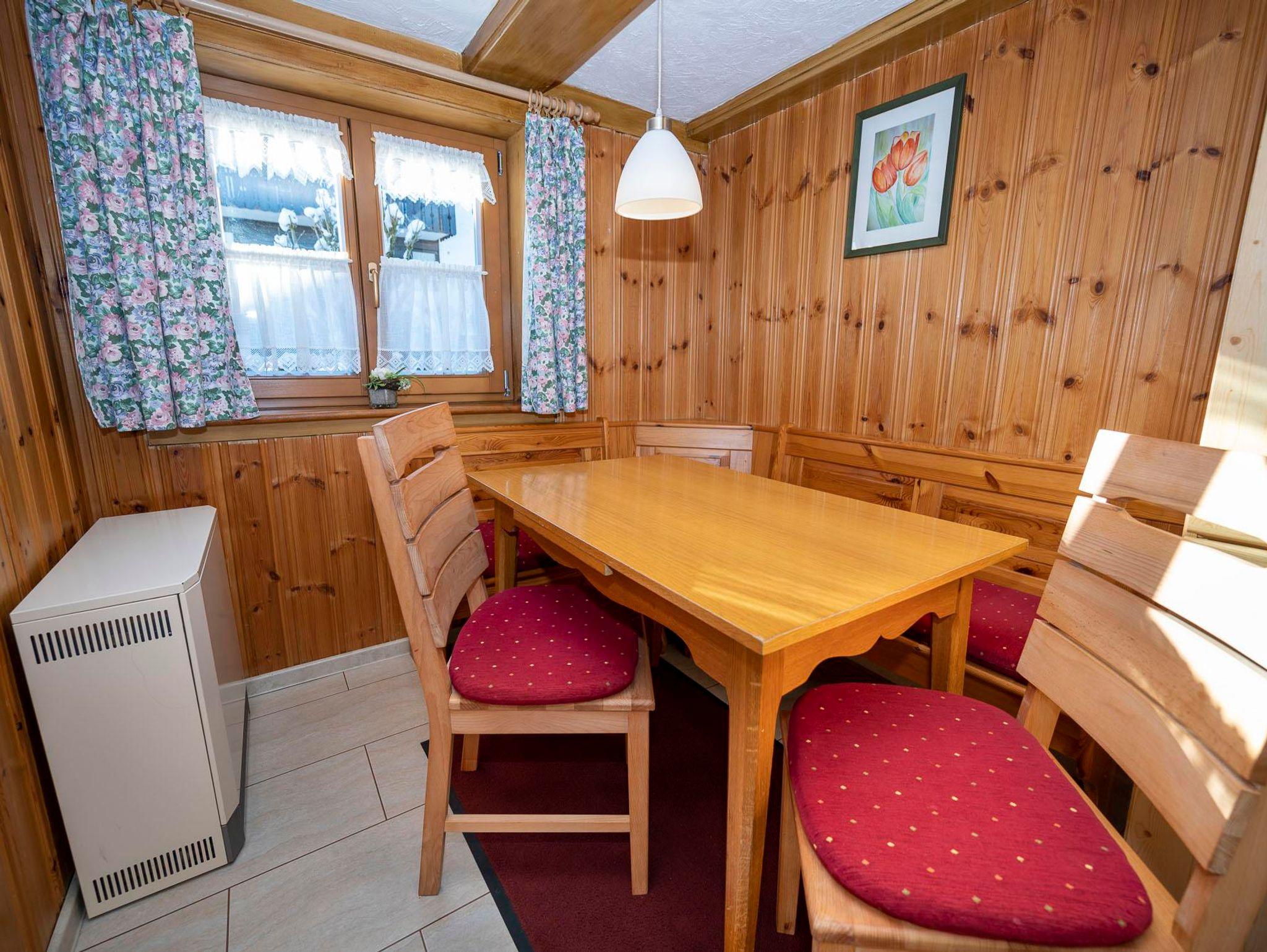Ruhige, sonnige Lage mit Bergblick. Große Liegewiese mit Liegestühlen und Kinderspielecke. Gemütlicher Aufenthaltsraum mit Kachelofen. Parkplatz am Haus. Abstellraum für Fahrräder und Skier. WLAN kostenlos.