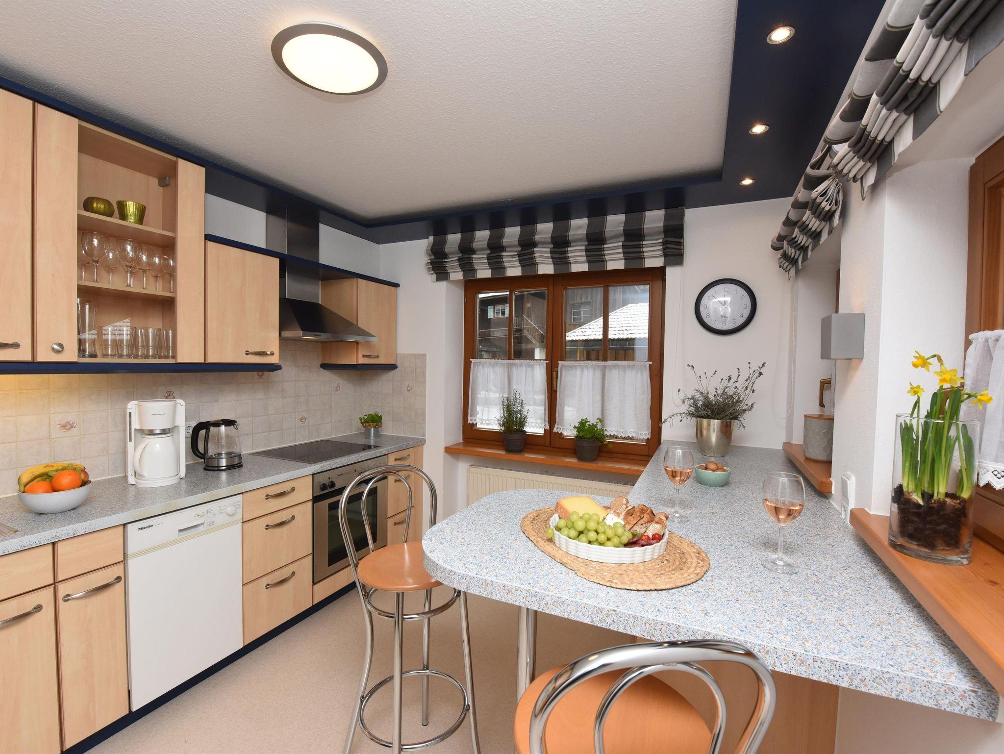 mit zwei Schlafzimmern, Wohnraum mit Essbereich, komplett ausgestattete Küche und großer Hausgang mit Garderobe.