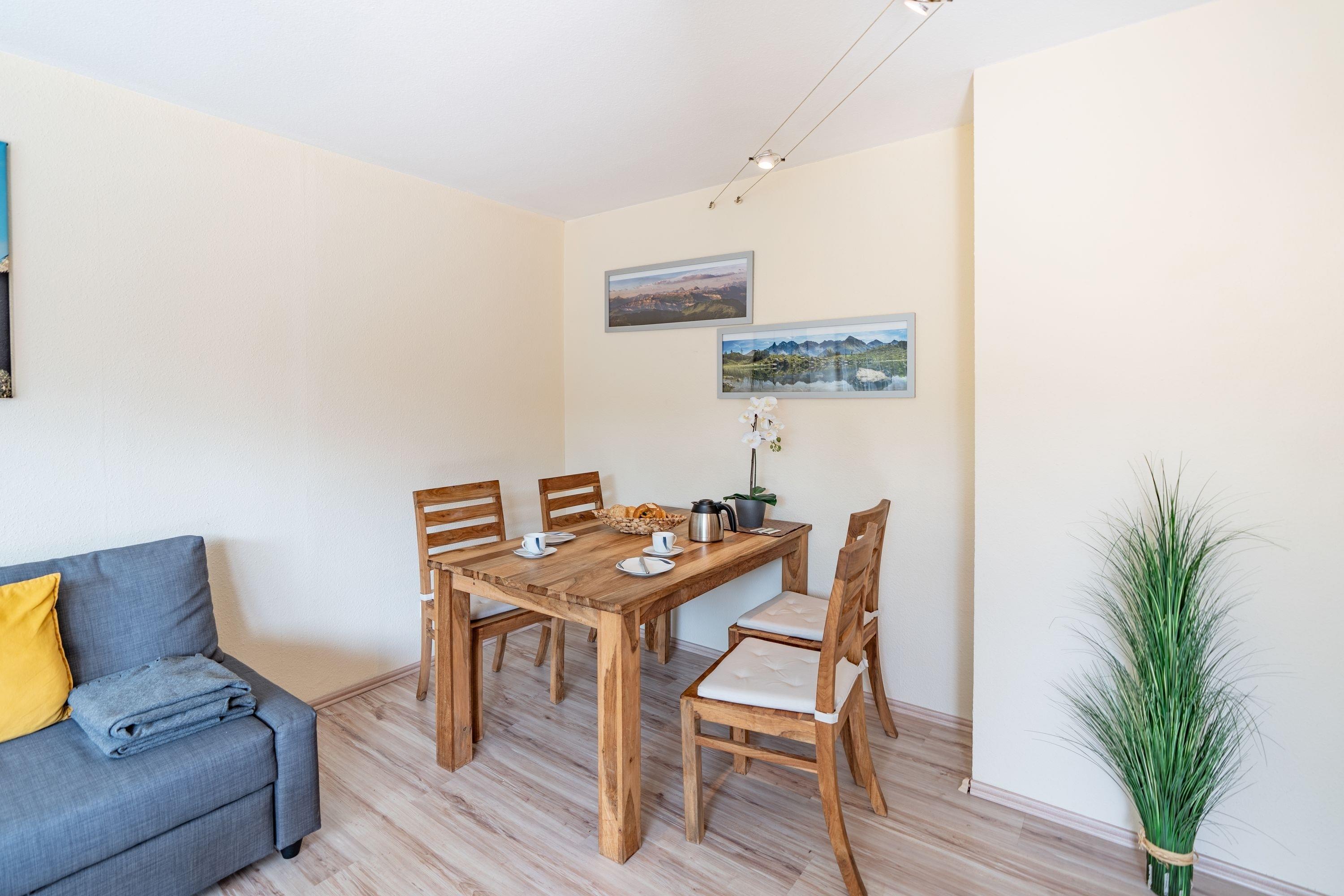 Die Wohnung besteht aus einem gemütlichen Schlafzimmer, einem modernen Badezimmer mit begehbarer Dusche, einer voll ausgestatteten Küche inklusive Geschirrspülmaschine und einem großzügigen Wohnzimmer mit Essecke. Im Wohnzimmer erwartet Sie ein komfortables ausziehbares Schlafsofa (1,60 x 2,00 Meter), das zusätzlichen Raum für zwei weitere Gäste bietet. Für Ihre Unterhaltung stehen ein SAT-TV, DVD-Player und eine Stereoanlage zur Verfügung, und Sie können selbstverständlich einen kostenlosen WLAN-Internetzugang nutzen. Der geräumige Südbalkon lädt Sie dazu ein, die Sonne zu genießen und am Abend ruhige Stunden zu verbringen.