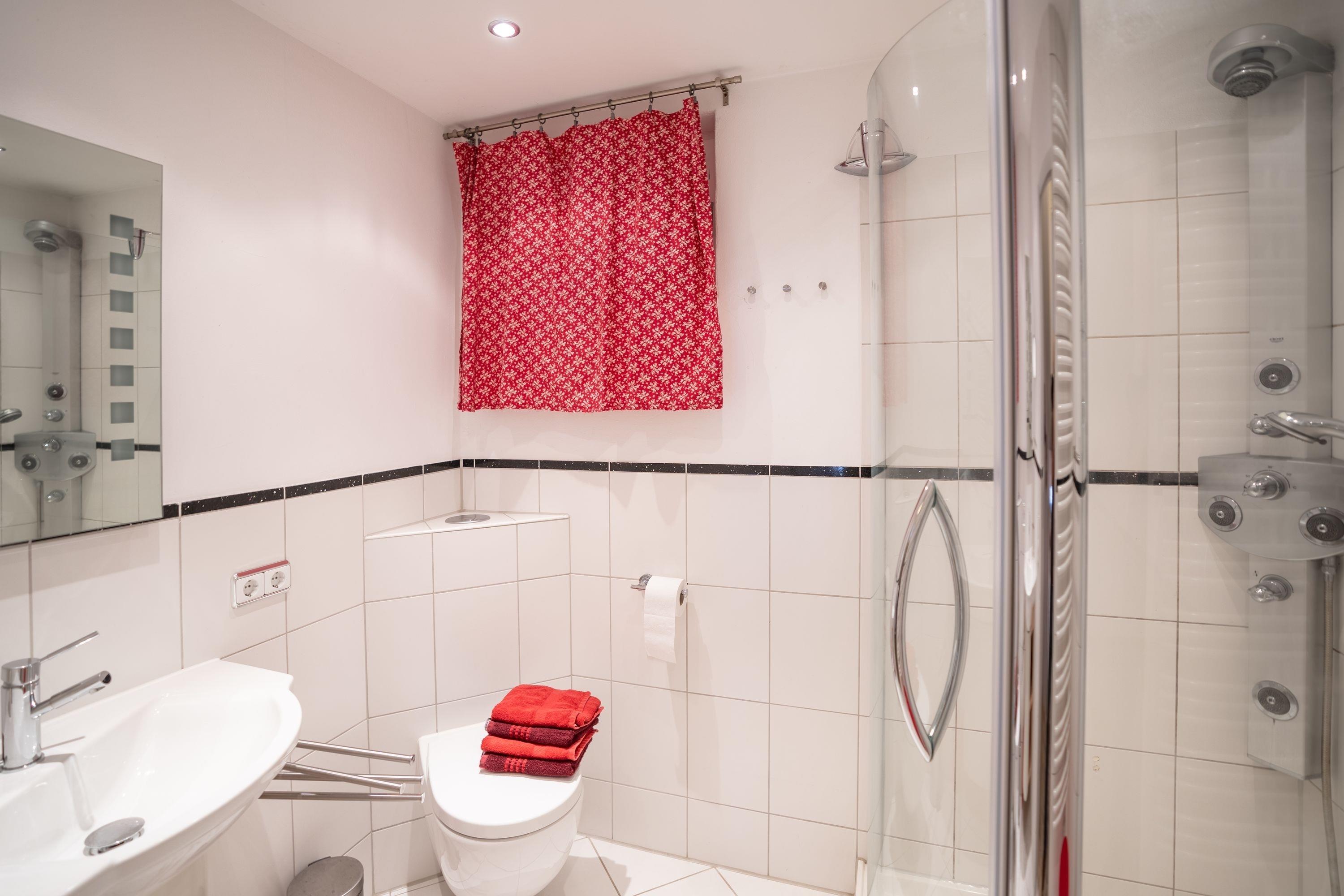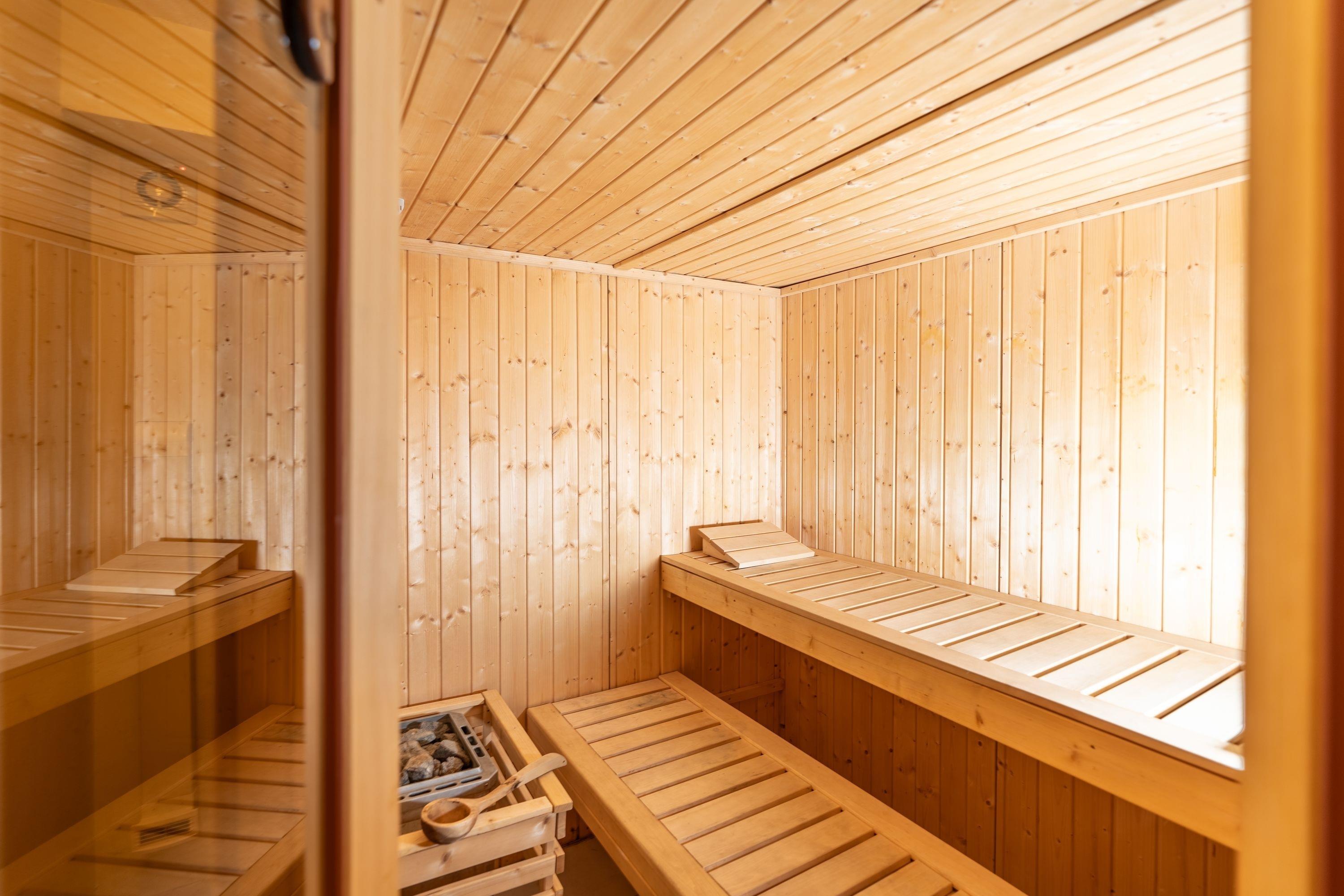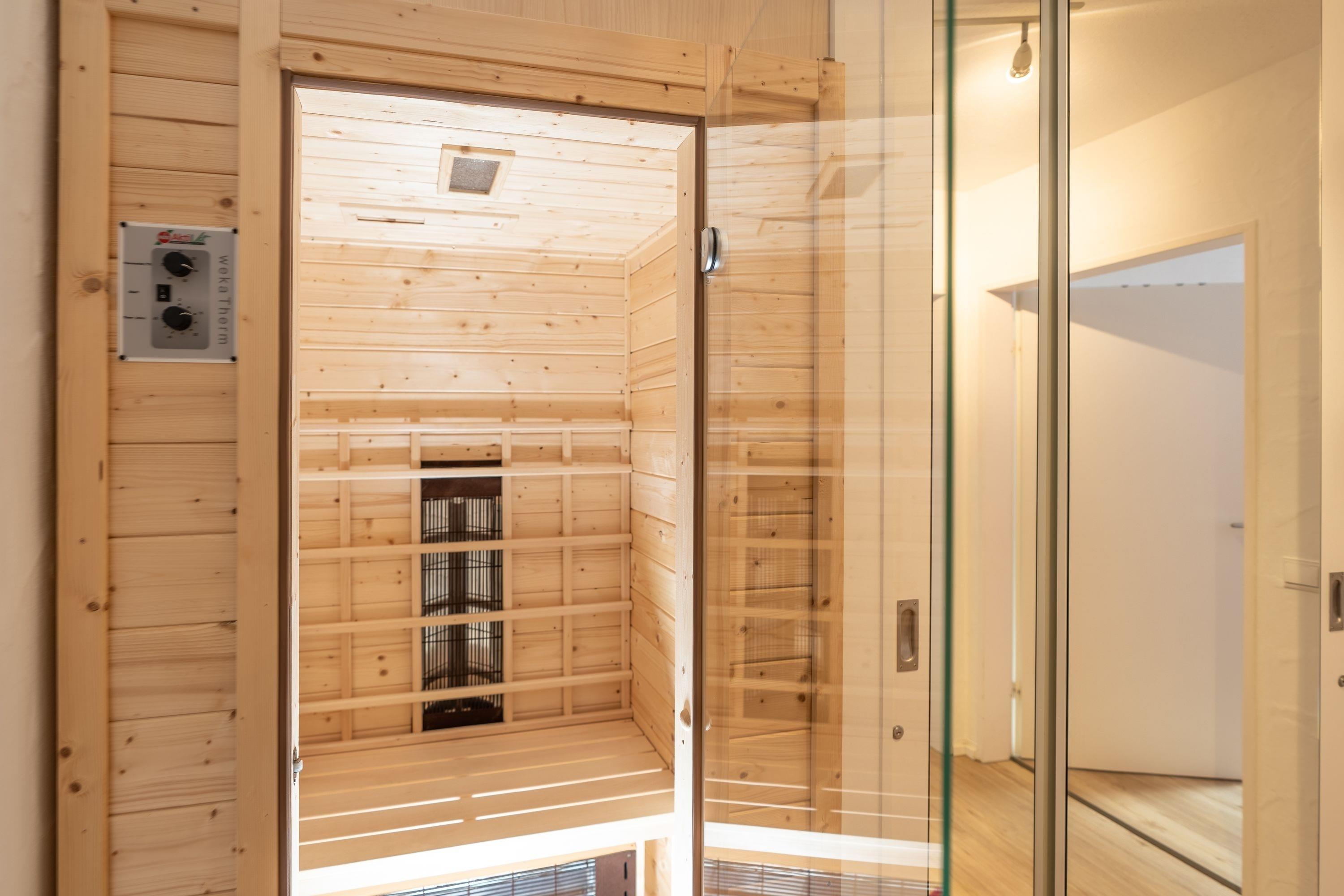 Das Badezimmer ist mit einem WC und einer Erlebnisdusche ausgestattet, die verschiedene Funktionen für ein erfrischendes Duscherlebnis bietet. Ein besonderes Highlight ist die Sauna und die Infrarotkabine. Hier haben Sie die Möglichkeit, sich nach einem ereignisreichen Tag richtig zu entspannen.