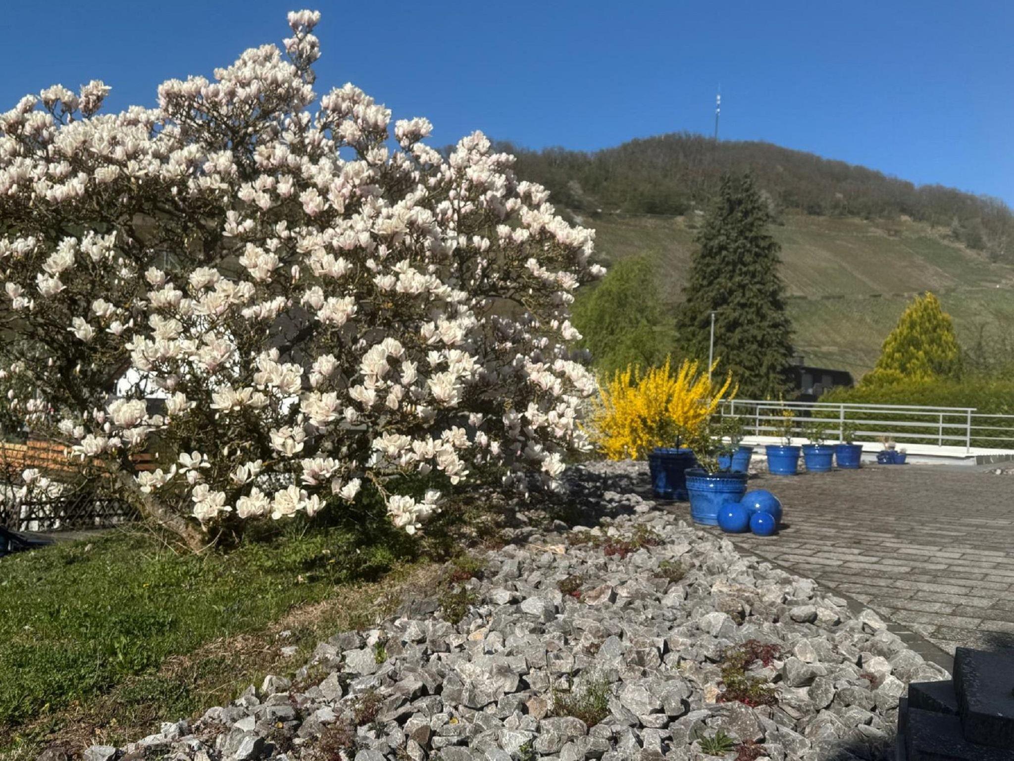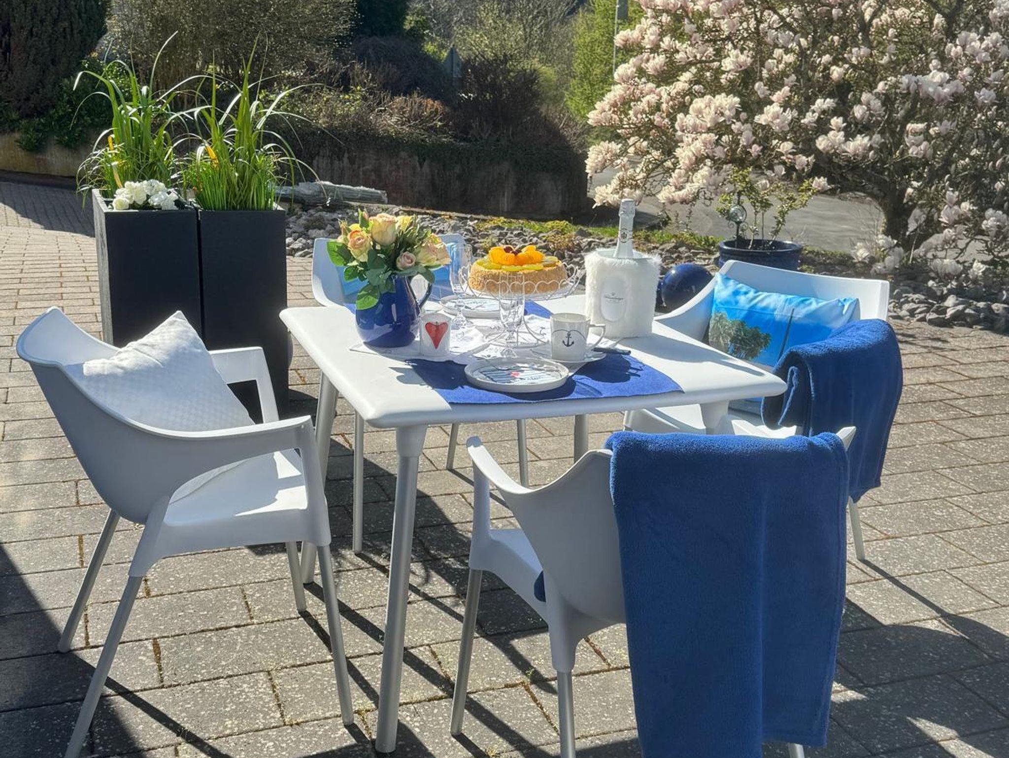 Der direkte Zugang zu einer großen Sonnenterrasse bietet Ihnen einen herrlichen Blick auf das Panorama der Obernhofer Weinberge.