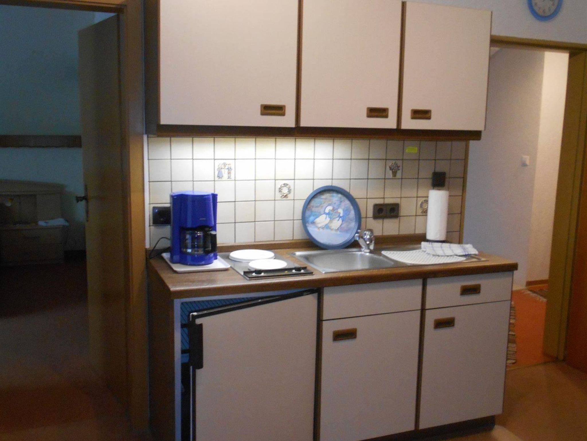 Unsere großzügige Ferienwohnung „Sinfonie“ befindet sich im Dachgeschoss. Sie verfügt über ein Schlafzimmer, ein Wohnzimmer, Bad mit Dusche sowie eine Küchenzeile. Das Wohnzimmer ist mit einem gemütlichen Sofa und TV/Radio ausgestattet. WLAN steht Ihnen kostenfrei zur Verfügung.
