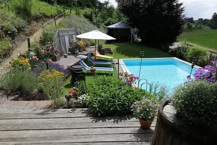 Stueetage: (Køkken(kakkelovn, kogeplade, ovn, køleskab), Stue/soveværelse(dobbeltsovesofa, Fjernsyn), soveværelse(tremmeseng), badeværelse(bruser, håndvask, toilet, Håndklæder inkl.)) have, havemøbler, solstole, swimmingpool, Haveskur