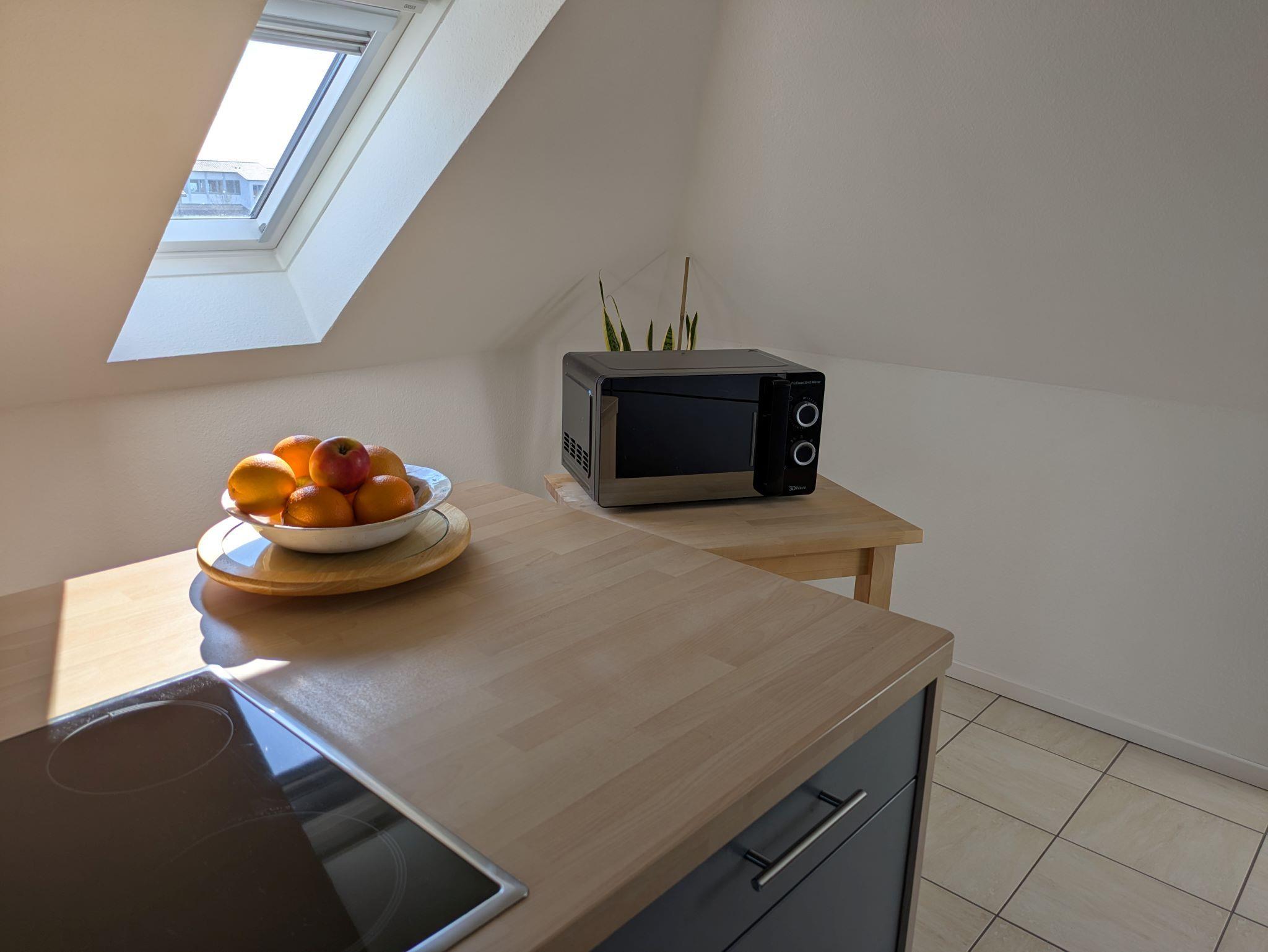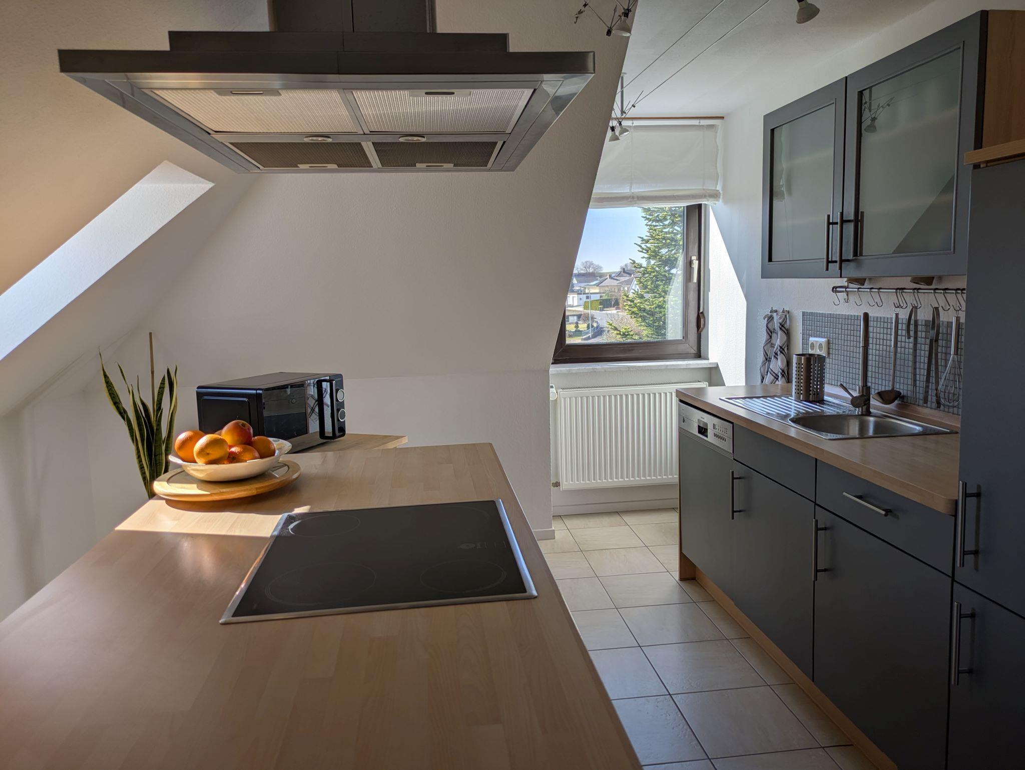 Komfortable Ausstattung für einen erholsamen Aufenthalt in unserer geräumigen 80 m² großen Dachgeschosswohnung im ersten Stock. Wohlfühl-Ambiente im Innen- und Außenbereich.