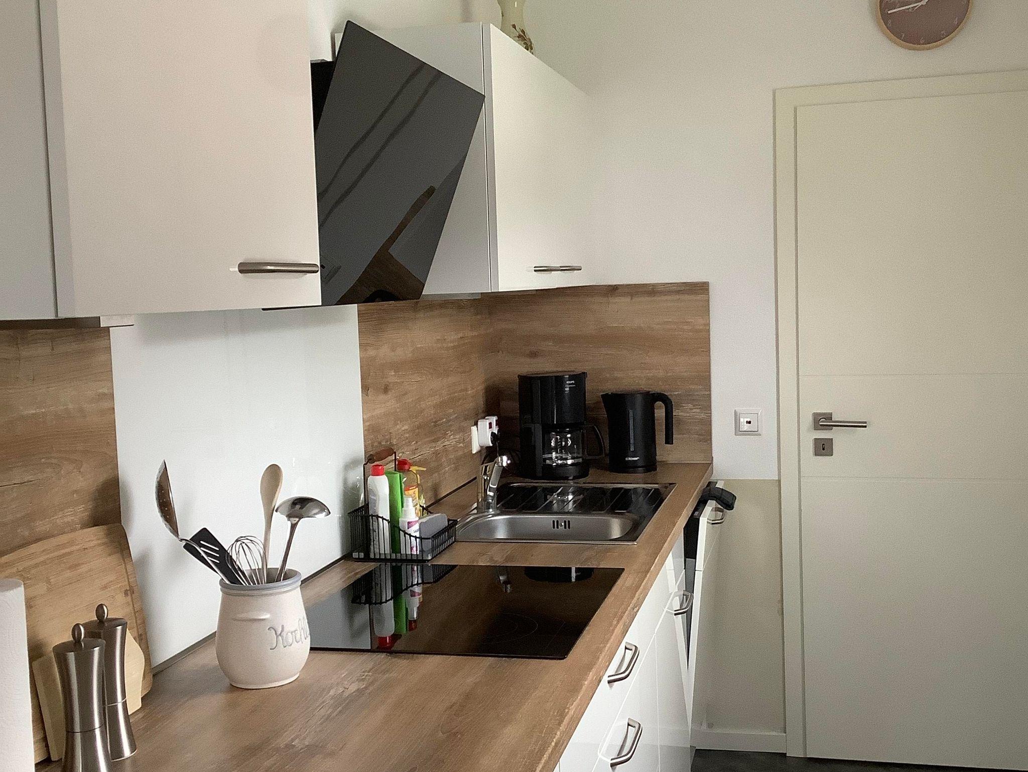 Schönes Wohnzimmer mit Flachbild-TV, Stereoanlage, gemütliche Sitzecke, Schlafzimmer, Doppelbett, großer Schrank und vielen Staumöglichkeiten, neue Einbauküche mit Cerankochfeld und ausreichendem Geschirr, Hochbackofen, Spülmaschine, große Kühl/Gefrierkombination, Esstisch mit vier Stühlen, separater Abstellraum, Badezimmer mit ebenerdiger Dusche, große Terrasse mit Markise, kostenloses W-LAN in der gesamten Wohnung. Im Wohnbereich stehen Ihnen Spiele zur Verfügung.