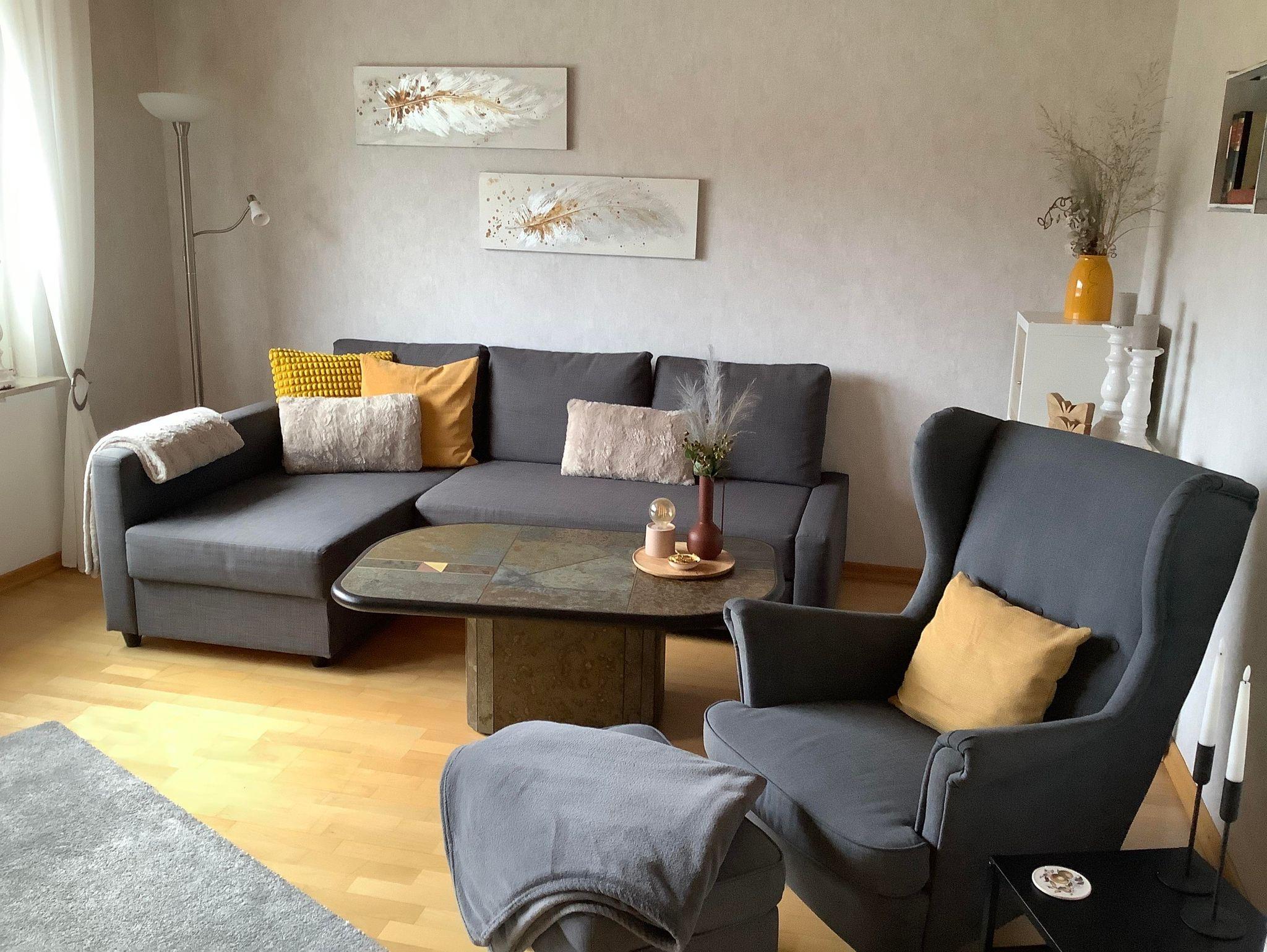 Die Wohnung verfügt über ein schönes Wohnzimmer mit Flachbild-TV, Stereoanlage und einer gemütlichen Sitzecke / Schlafcouch. Im Schlafzimmer steht ein Doppelbett, sowie ein großer Schrank mit vielen Staumöglichkeiten. Die neue Einbauküche verfügt über ein Cerankochfeld, Hochbackofen, Spülmaschine, große Kühl-Gefrierkombination, ein Esstisch mit vier Stühlen und im anschließenden, separten Spind steht eine Mikrowelle. Das Badezimmer ist mit einer ebenerdigen Dusche ausgestattet. Bettwäsche, Handtücher und Küchentücher sind im Preis enthalten.