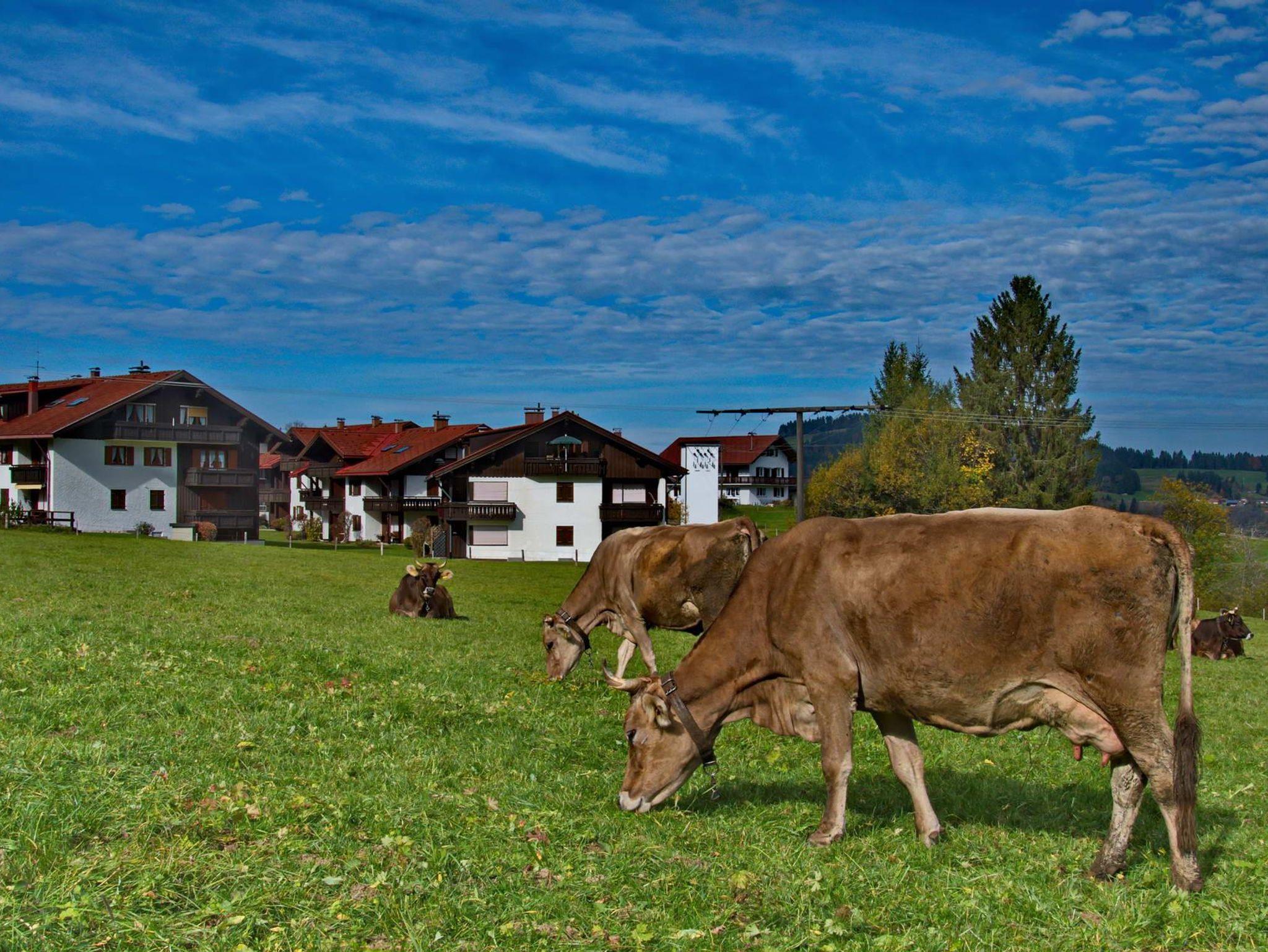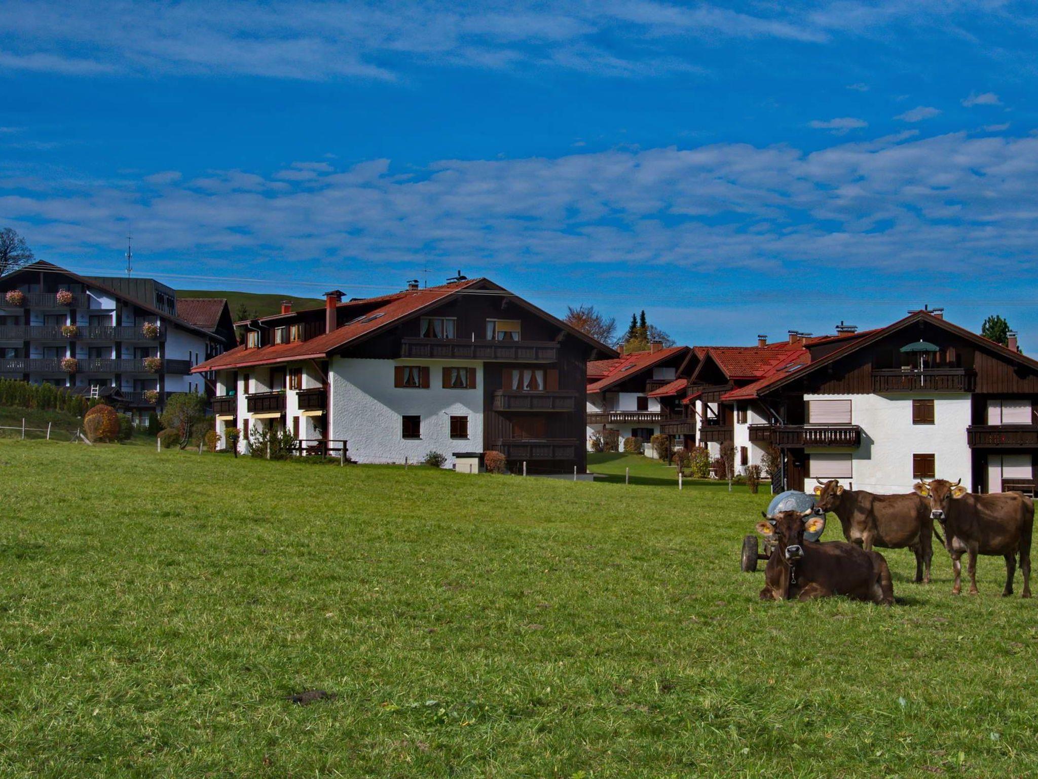 Inmitten des Ortsteiles Steibis am Ende einer Privatstraße liegt das Haus Silberdistel. Hier befindet sich auch unsere gemütliche Ferienwohnung, die sich durch liebevoll und stilgerechte Ausstattung auf hohem Niveau auszeichnet. Wir bieten Ihnen ein separates Schlafzimmer mit TV, Wohn-und Esszimmer mit TV, Küche, Bad und Flur sowie einen wunderschönen Balkon mit Bergblick. WLAN kostenfrei. Ein Kinderbett und Kinderhochstuhl haben ebenso noch Platz.
