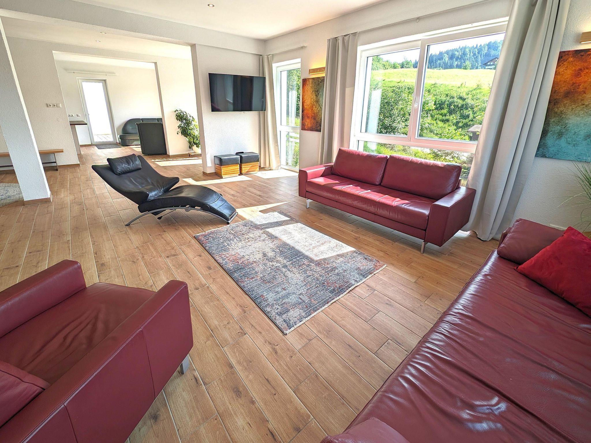 Riesiger Wohn/Essbereich für´s Beisammensein der Großfamilien, fünf separate Schlafzimmer (für 13 Erwachsene + 3 Babybetten), Infrarotsauna für 4 Personen, 2 Bäder, 2 separate WC-Räume, Fußbodenheizung, 55 Zoll Smart TV, eine Kinderspielecke, große Südterrasse zur Alleinnutzung, eigene Auffahrt, separater Eingang, eigener Hang, separater Stellplatz uvm. lassen keine Wünsche offen.