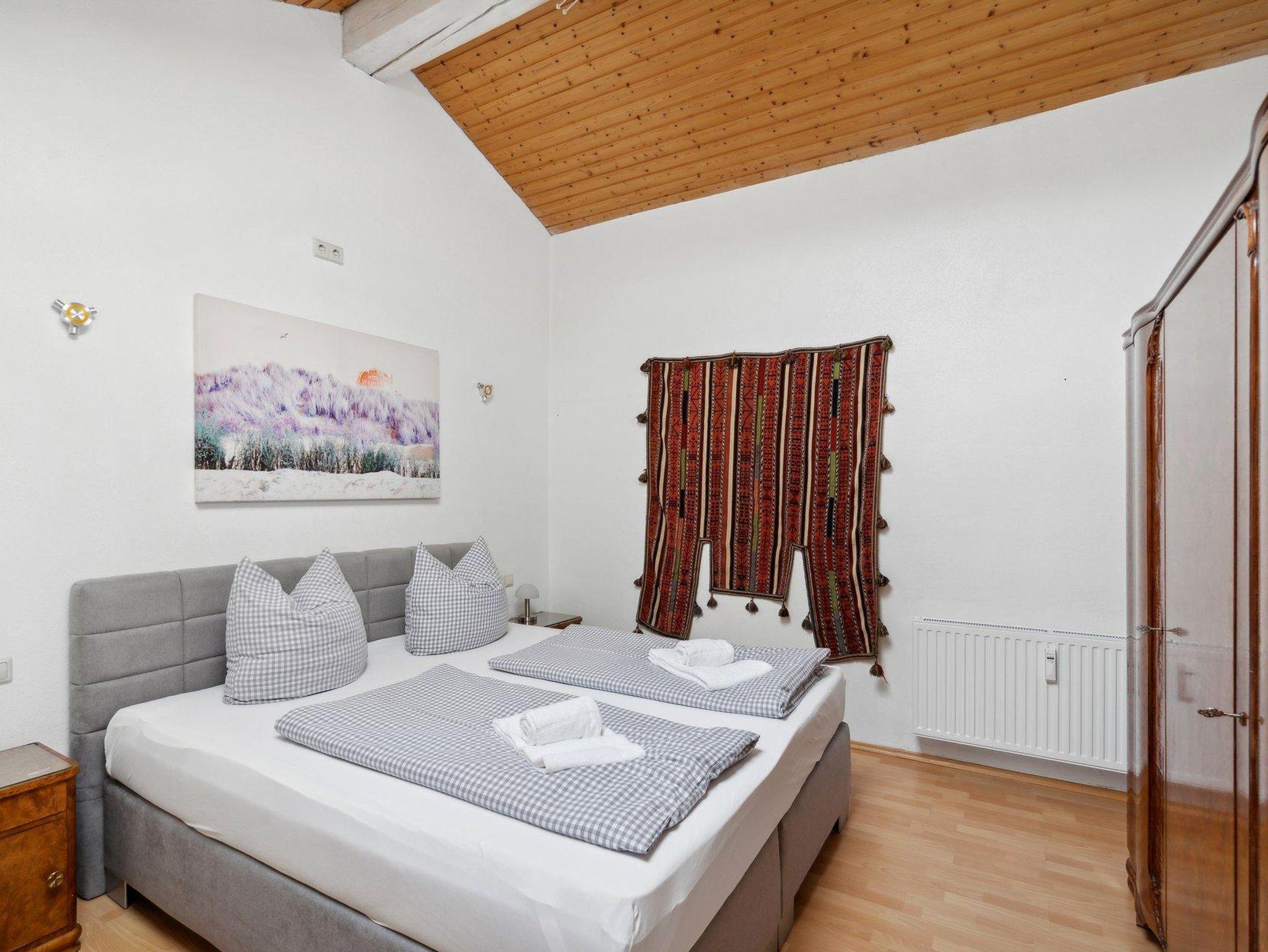 Genießen Sie unsere geräumige Wohnung über zwei Etagen mit ca. 60 qm Wohnfläche. Im oberen Geschoss erwarten Sie ein gemütliches Schlafzimmer mit einem Doppelbett für zwei Personen und ein kleines niedriges (Dachschräge) Zimmer mit zwei Einzelbetten. Das moderne Badezimmer mit Dusche und WC bietet höchsten Komfort.