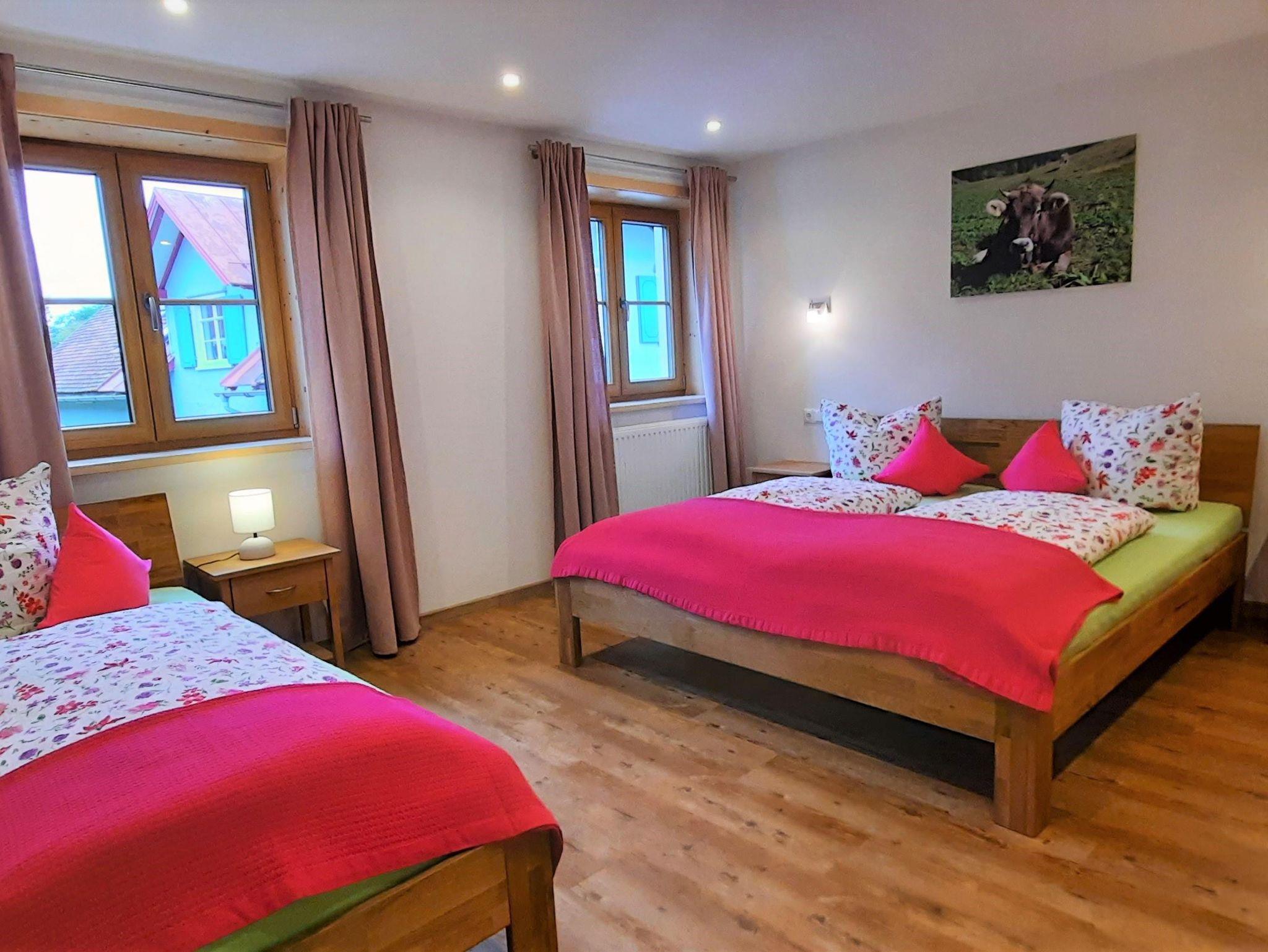 Unser Haus liegt mitten im Ortskern, aber dennoch in ruhiger Lage. Unsere beiden Ferienwohnungen befinden sich im 2 Stock, vom Balkon aus haben Sie eine schöne Aussicht, auf die Berge vor Ort. Sie können direkt von unserem Haus aus los gehen, zu einer schönen Wanderung, ob in die Berge oder auch nur zu einem Spaziergang im Thal. Der Skilift oder auch die Langlaufloipen sind in 5 Minuten zu Fuß zu erreichen. Im Ort gibt es zahlreiche Möglichkeiten, um einfach mal gemütlich einzukehren und sich kulinarisch verwöhnen zu lassen. Außerdem gibt es mit dem 4km enfernten Alpsee eine tolle Natursee Bademöglichkeit. Bei schlechtem Wetter bietet das Aquaria in Oberstaufen viel Spaß für groß und klein. Im Ort gibt es 2 Häuser weiter einen kleinen Dorfladen, in dem Sie jeden Tag frische Semmel, Brot, Wurst, Käse und alles für Ihr leckeres Frühstück bekommen.