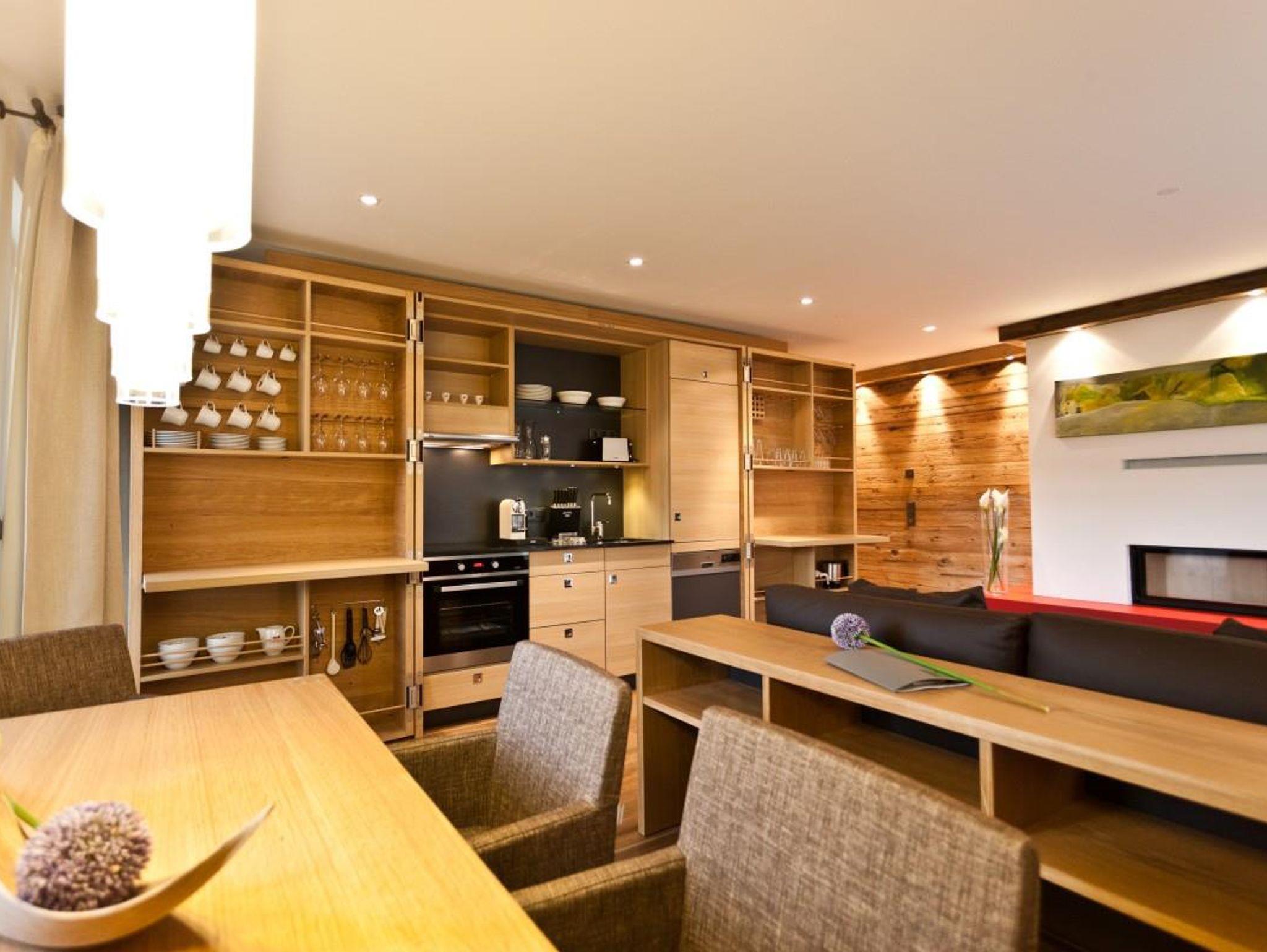 Das luxuriös eingerichtete Chalet bietet Dir auf über 85 m² sämtliche Annehmlichkeiten, die Du Dir nur wünschen kannst. Angefangen mit Deiner eigenen Finnischen Sauna, einer großen Dachterrasse und sichtbarem Kamin bis zum Design-Bad mit Regendusche, Badewanne sowie separatem WC. Das zweite Schlafzimmer ist für eine vier Personen Belegung selbstverständlich. Die klappbare Küche ist praktisch und besonders zugleich. Außerdem kannst du unser kostenloses WLAN und das Telefon für Telefonate ins deutsche Festnetz jederzeit nutzen. Ob Sommer oder Winter, der Tiefgaragenstellplatz ist für dich im Chalet Bergkristall natürlich gratis mit dabei.