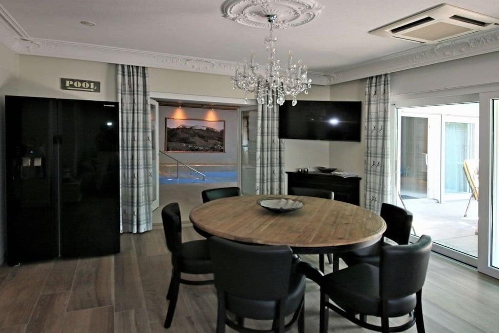 Stueetage: (åbent køkken(, , tekøkken, kogeplade, elkedel, brødrister, kaffemaskine, ovn, mikrobølgeovn, opvaskemaskine , køleskab, fryser, klimaanlæg), stue / spisestue(, , Fjernsyn, spisebord, radio, CD-afspiller, stereoanlæg, varme, klimaanlæg), badeværelse(, toilet, bruser, håndvask, varme), guest toilet(, toilet, håndvask, varme), loungerum(Subtropisk badeland, havemøbler, solstole, swimmingpool, baldakin), pulterkammer(, tørretumbler, vaskemaskine, tørreskab)) , , , , soveværelse(, , dobbeltseng, køjeseng), soveværelse(, , , dobbeltseng, Fjernsyn, insektnet), Internetadgang, Internetadgang, tørretumbler, vaskemaskine, varme, terrasse(havemøbler, solstole, baldakin), parkering, tørreskab, Ladestation til el-biler