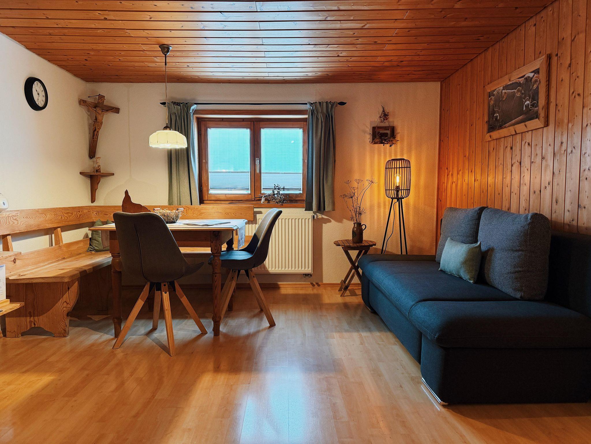 Traumhaft freie Aussicht auf die Berge, ruhig gelegen, ca. 2,5 km von Oberstaufen entfernt, komfortable, geschmackvoll im ländlichen Stil eingerichtete Wohnungen.