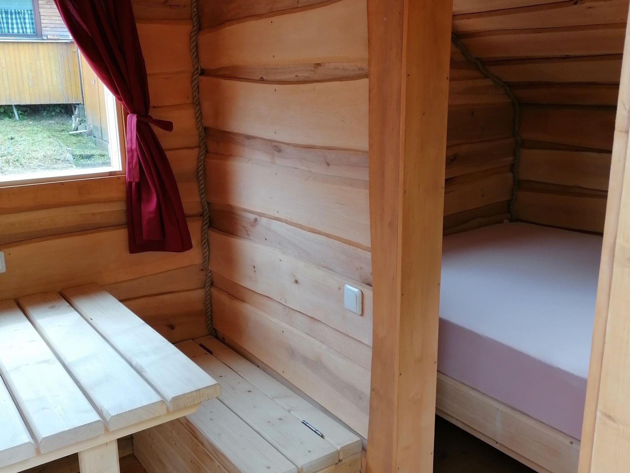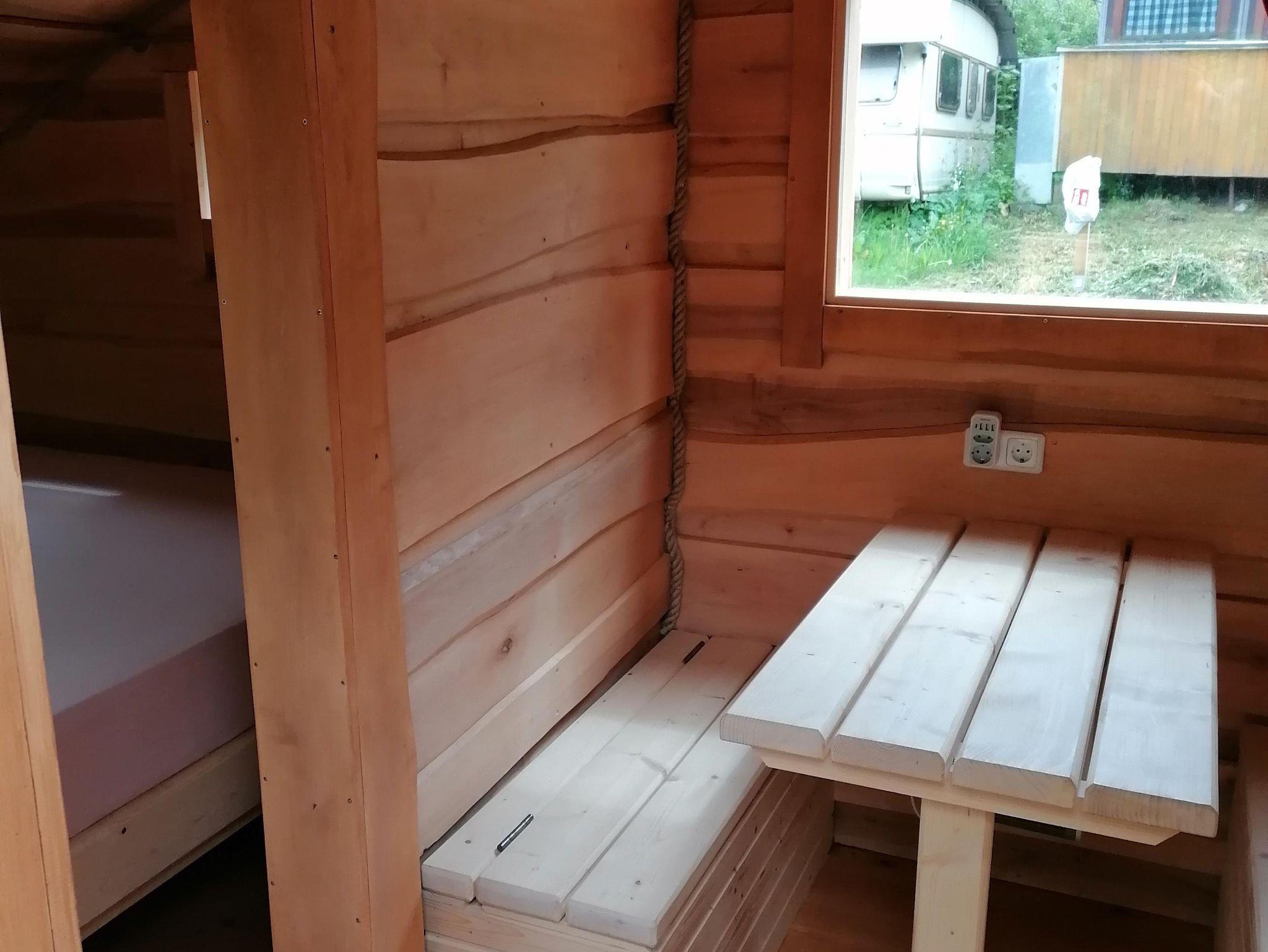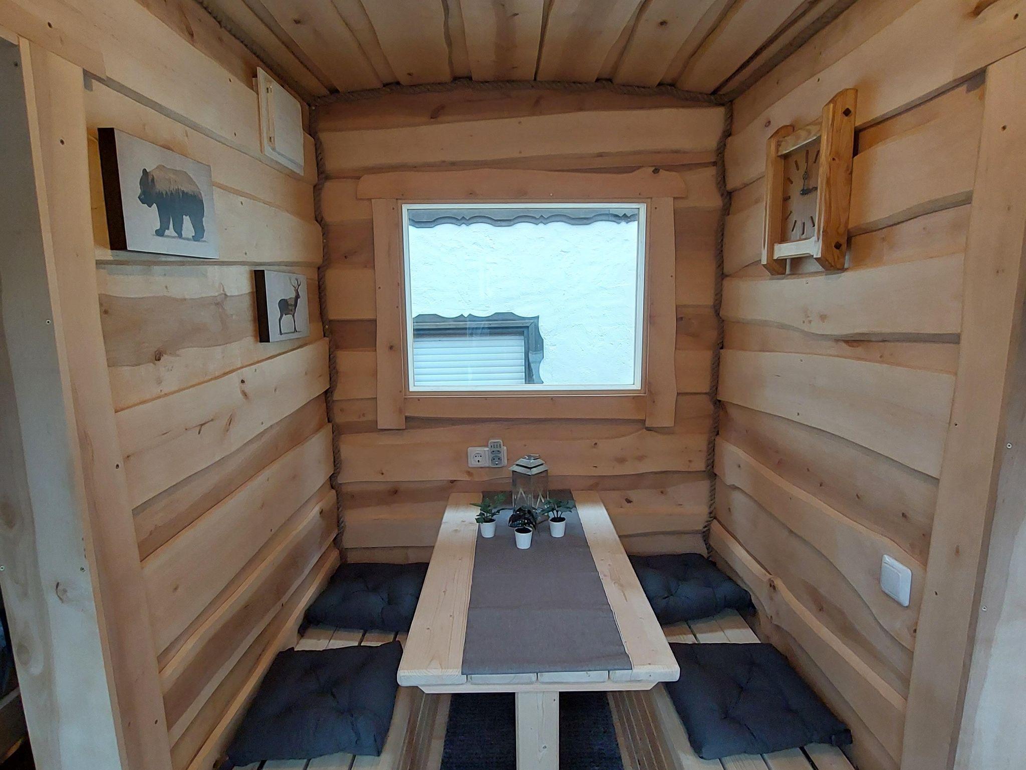 Unsere Schlafhöhle Heini bietet bequem Platz für bis zu 4 Personen - perfekt für Familien - sogar mit zwei Schlafbereichen und einem separaten Essbereich.