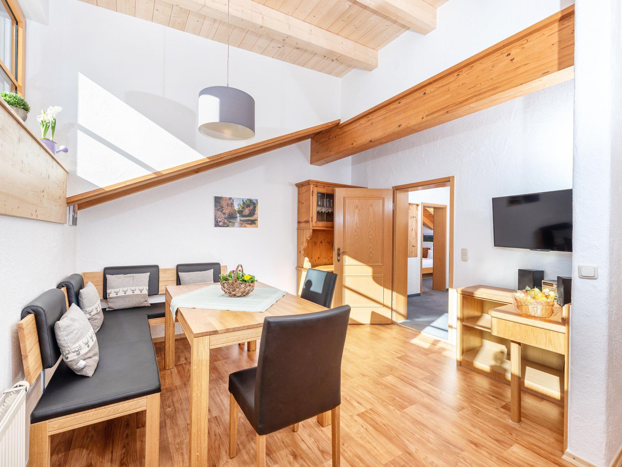 • Wohnstube mit gemütlicher Essecke, Fernseher und vollausgestatter Küche