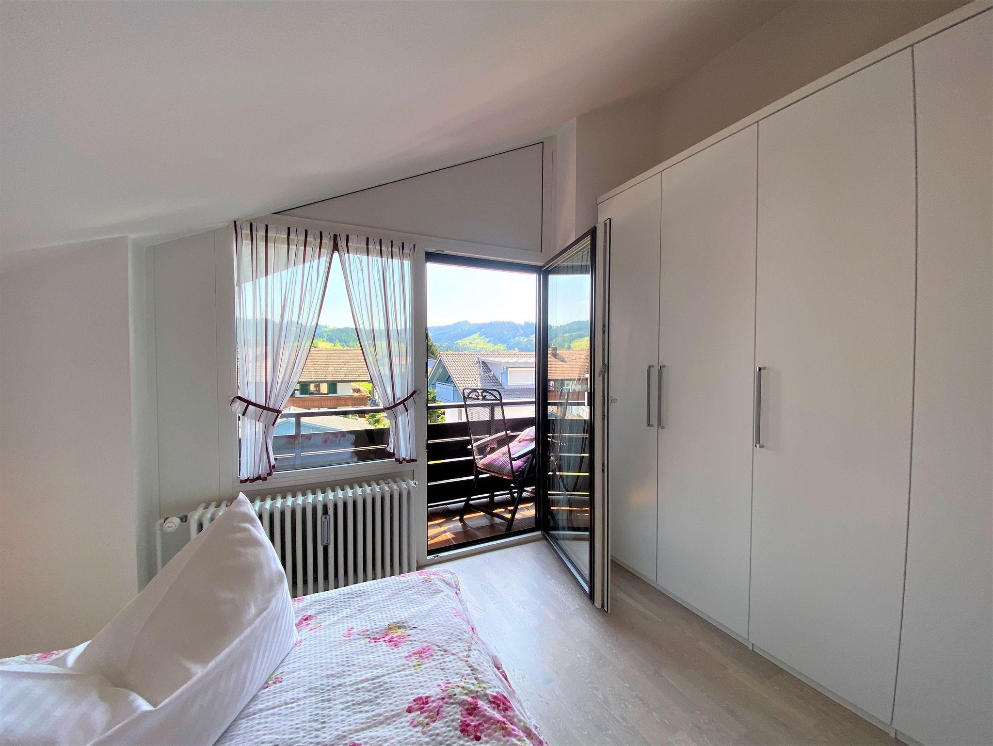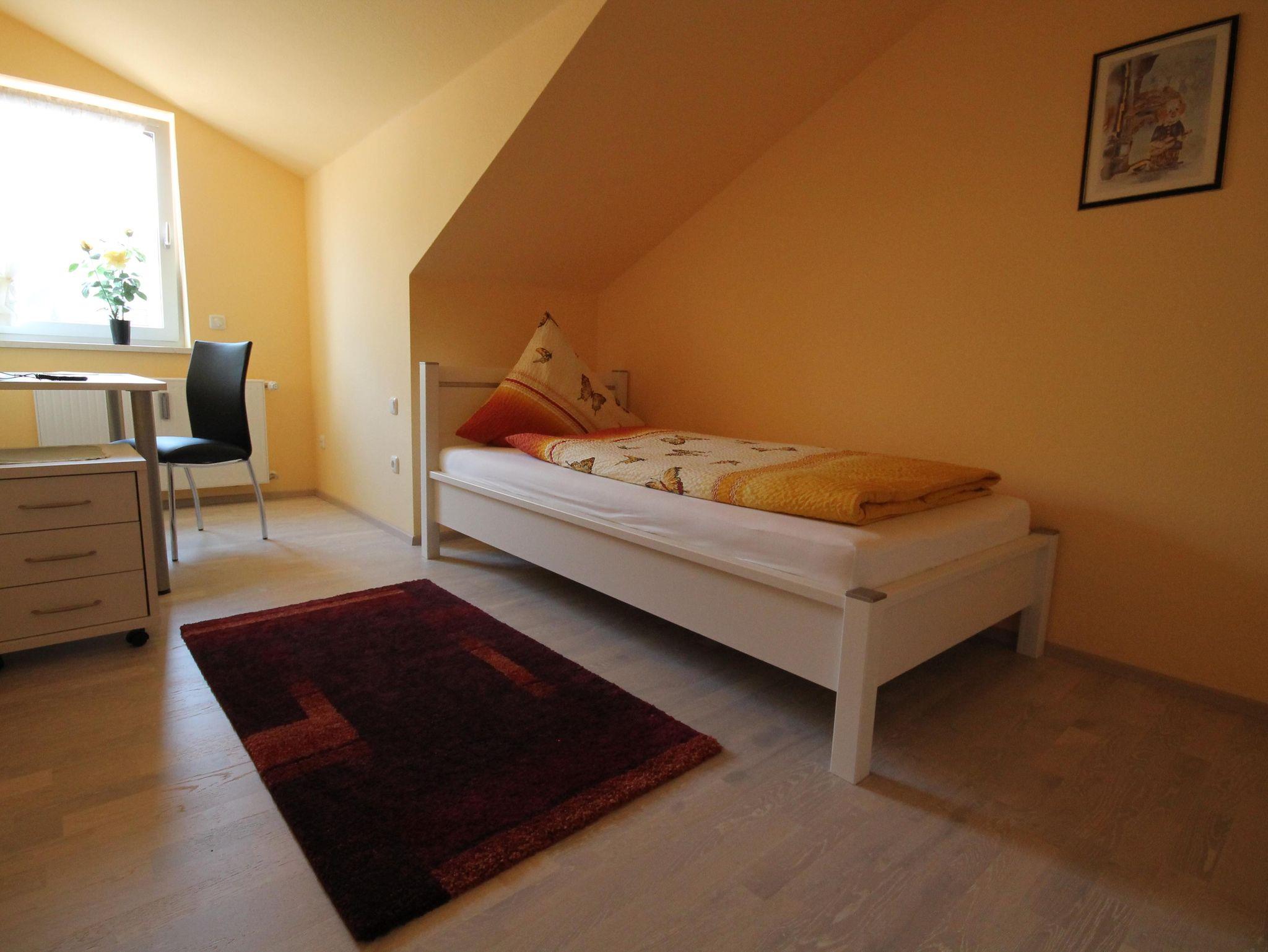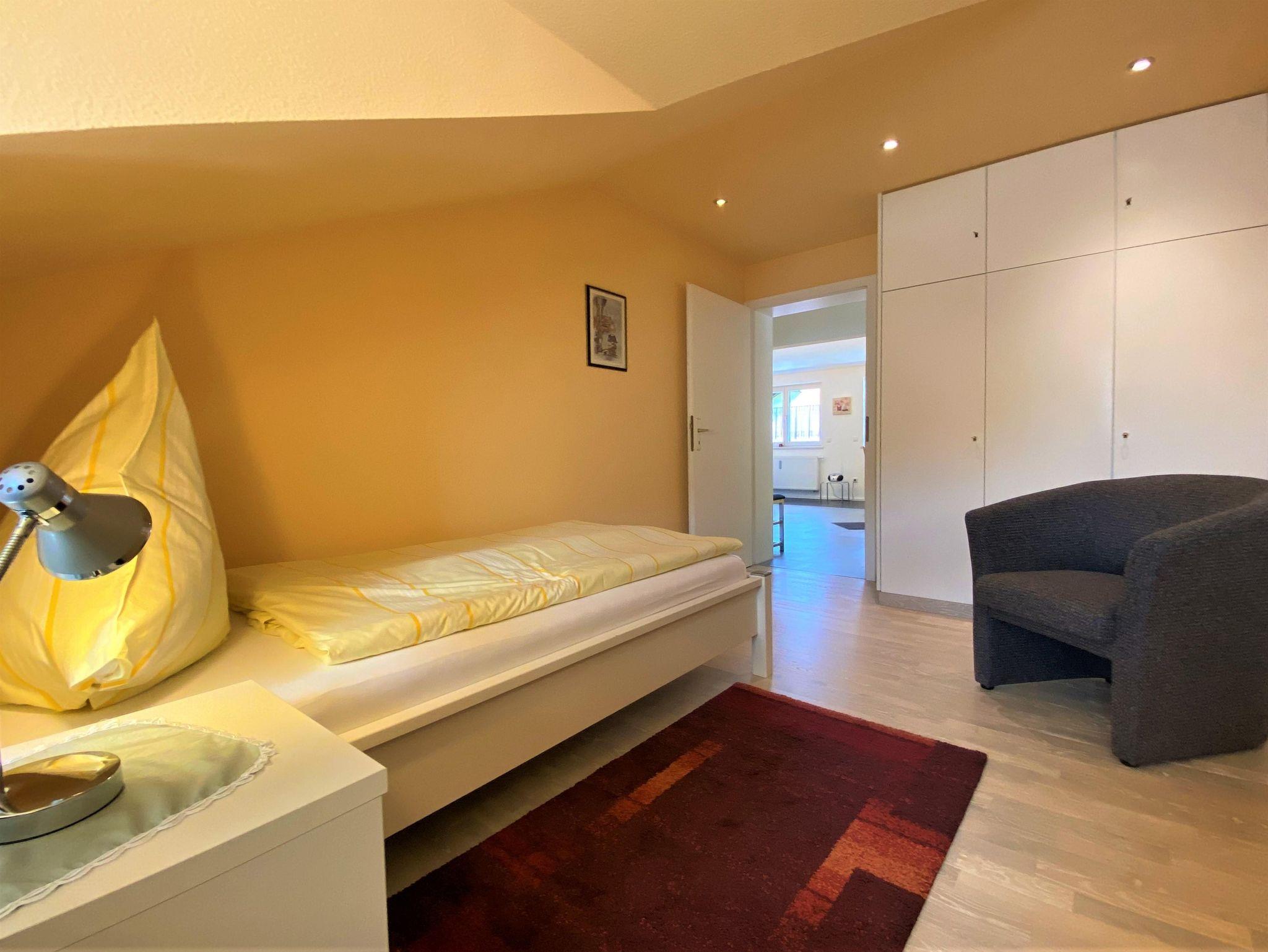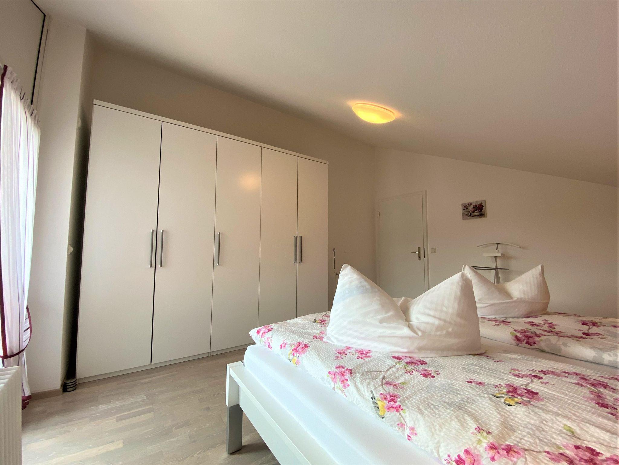 Schlafzimmer mit Parkettboden, Doppelbett 2x2 m und großem Kleiderschrank. Weiteres Zimmer mit Parkettboden, Schreibtisch, Einzelbett 2x1m und Kleiderschrank. Kabel-TV-Anschluß, Durchwahltelefon und LAN u.WLAN-Internetzugang.