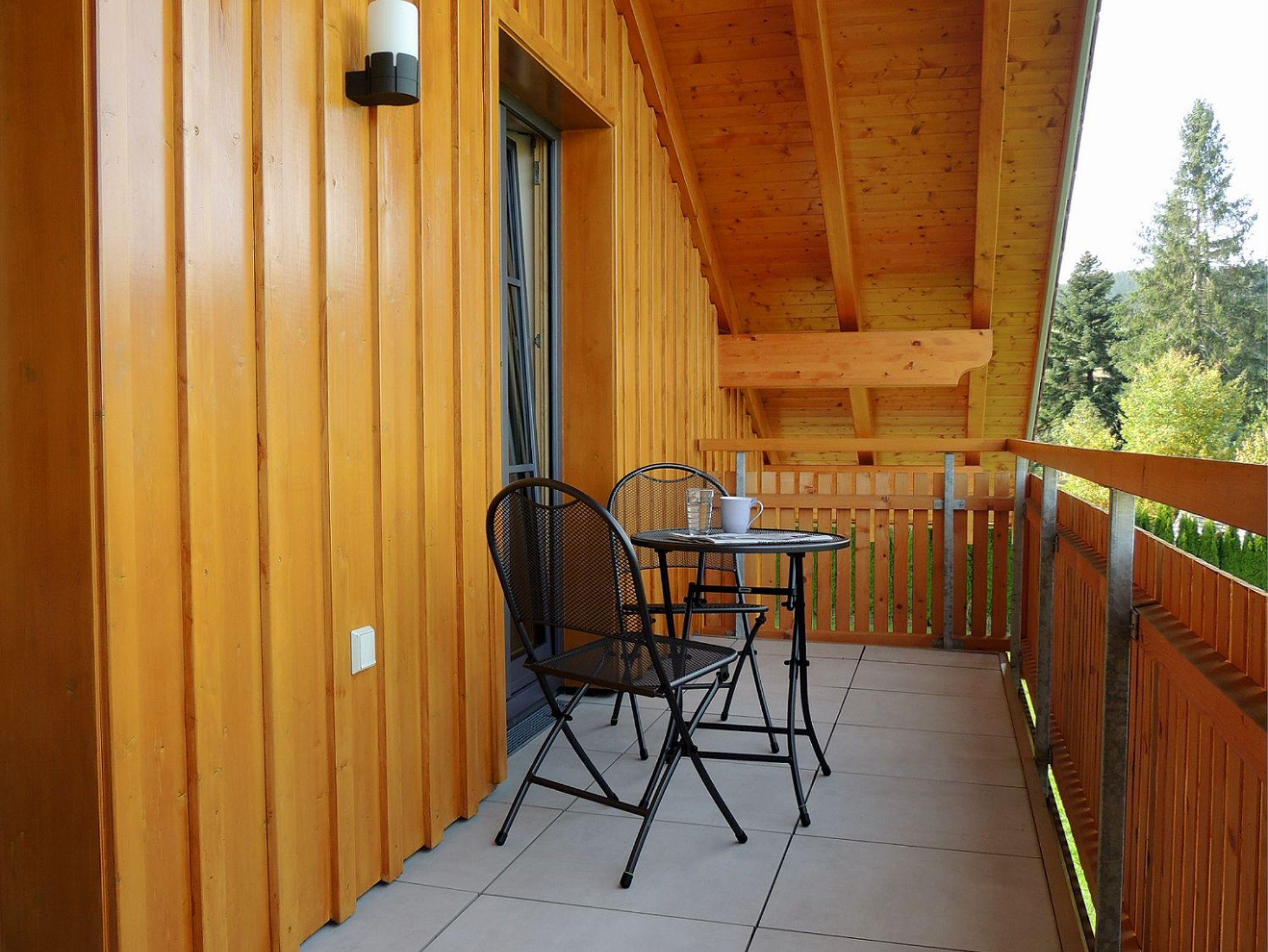 Sie verfügt über einen West- und einen Nordbalkon. Vom nach Norden ausgerichteten Balkon haben Sie einen wunderbaren Blick Richtung Genhofen mit seiner gotischen Stephanskapelle.
